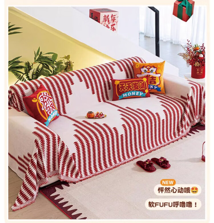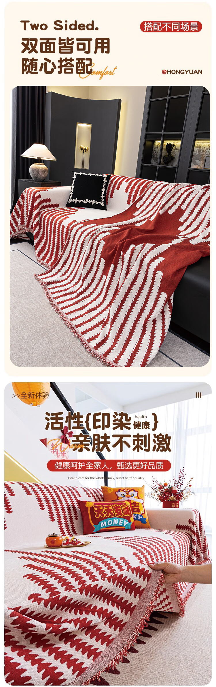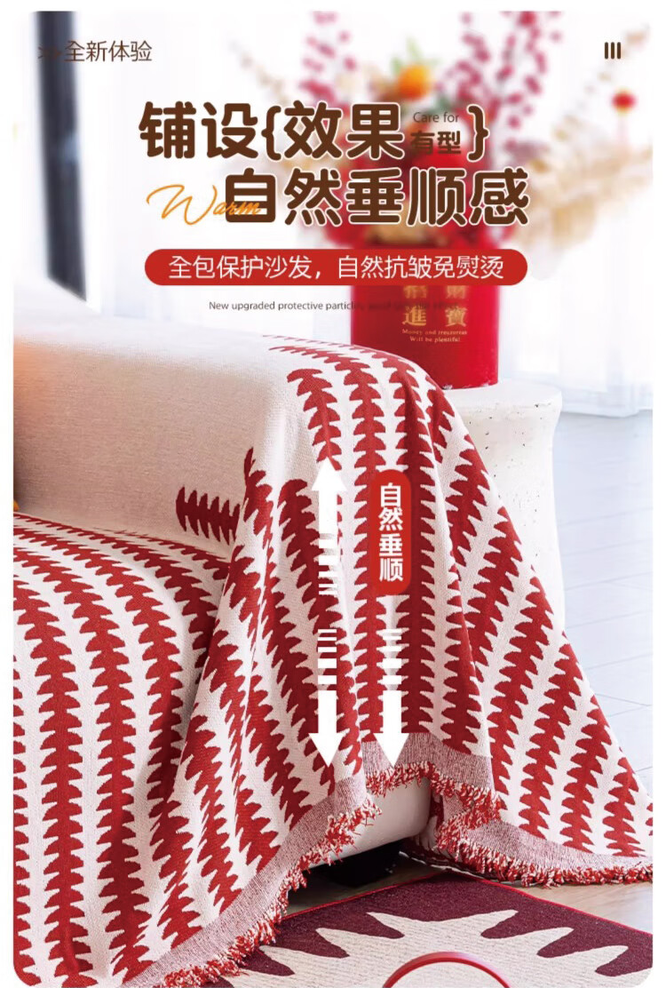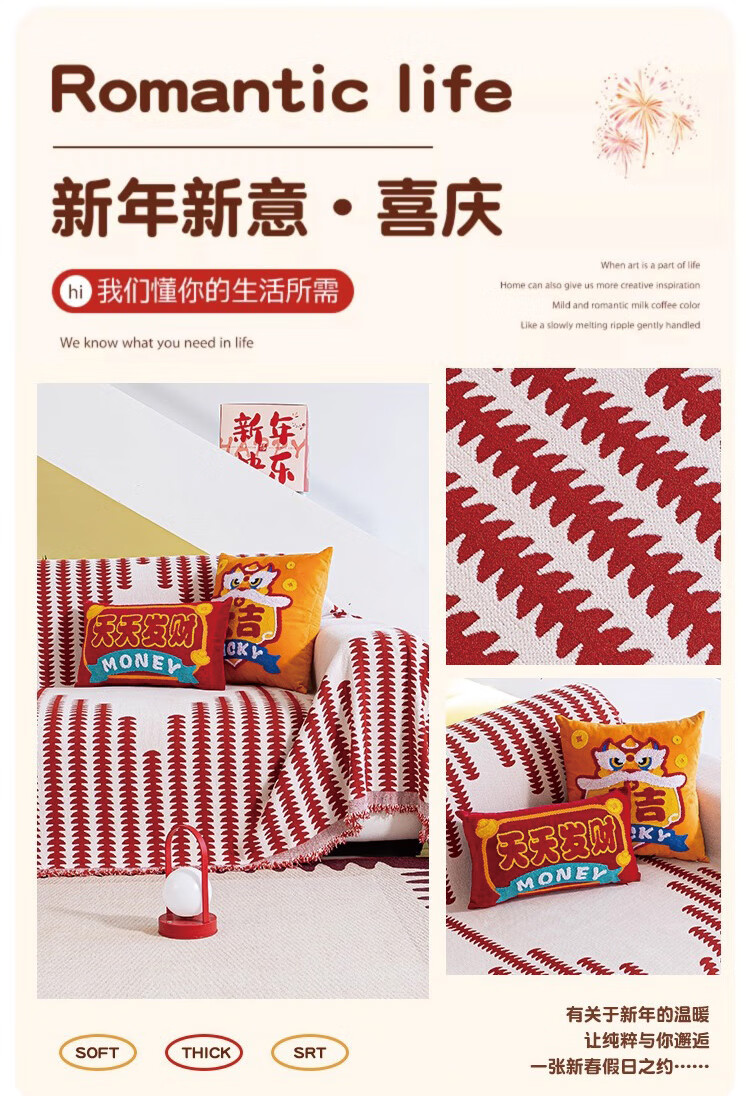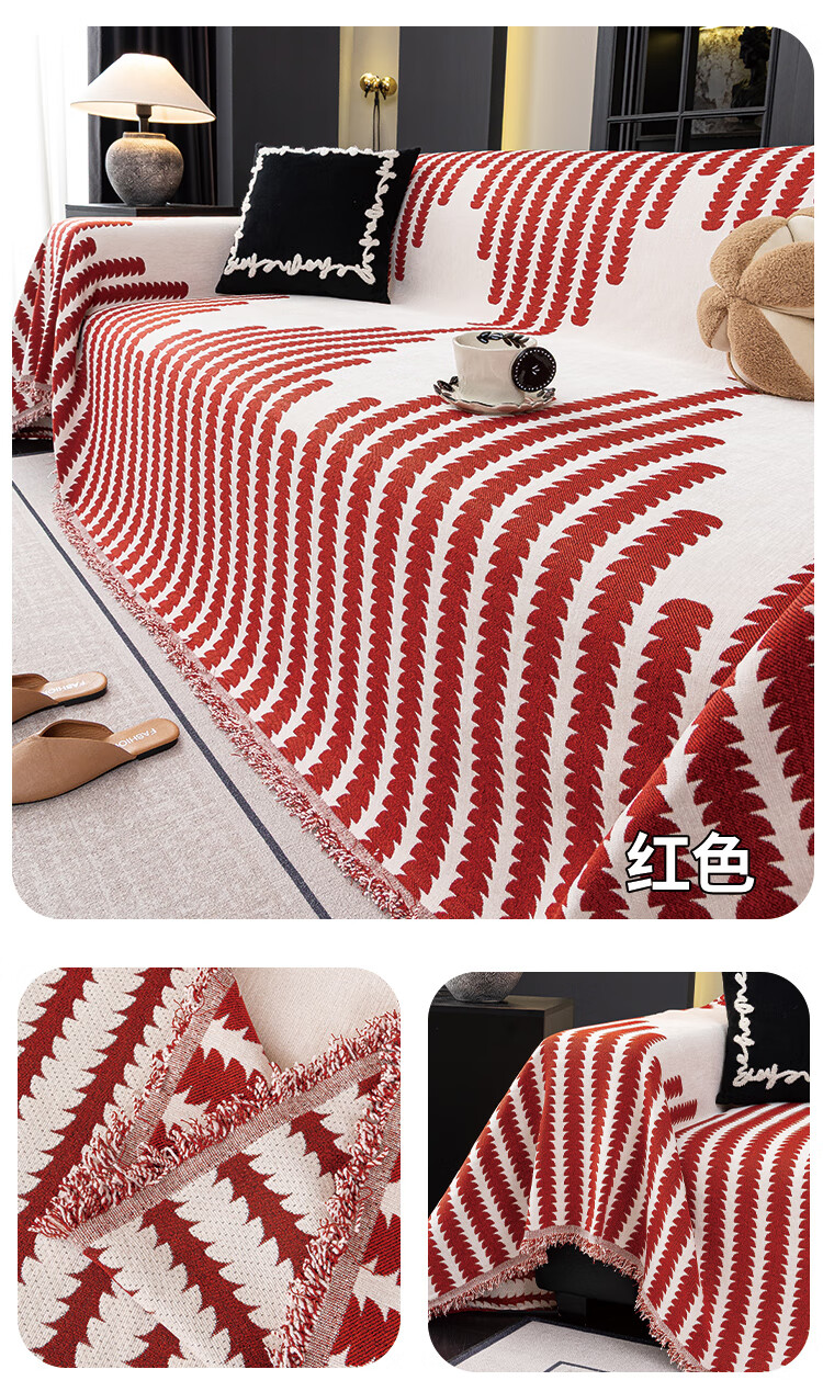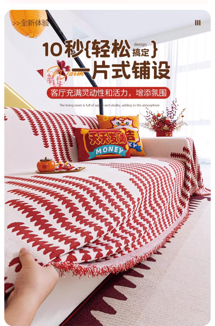 金拾美月四季通用雪尼尔喜庆沙发盖布巾结婚用红色全盖沙发套罩毯2026新款 拾光-红色 180cm*130cm (适用于单人位/脚踏)