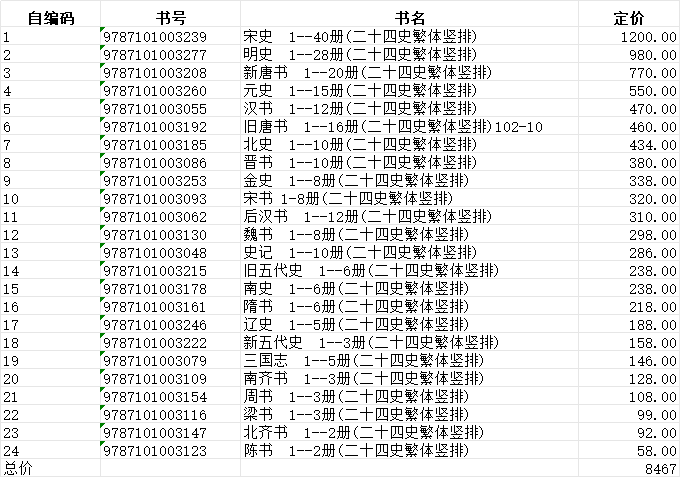 任选 点校本二十四史241册 繁体竖排史记三国志汉书后汉书南齐书新唐书新五代史明史元史魏书金史周书宋书南史中华书局 【24种241册】点校本二十四史
