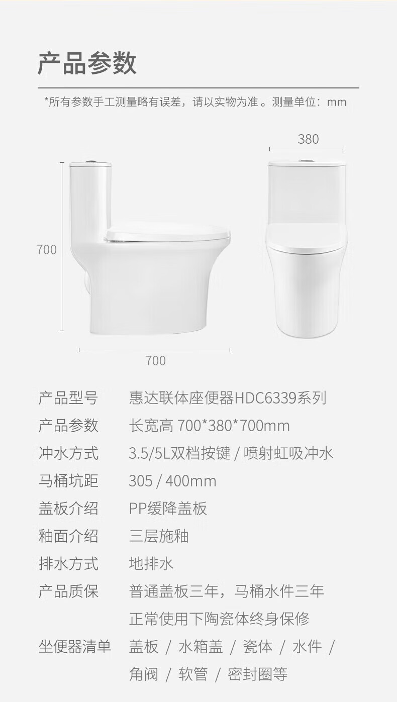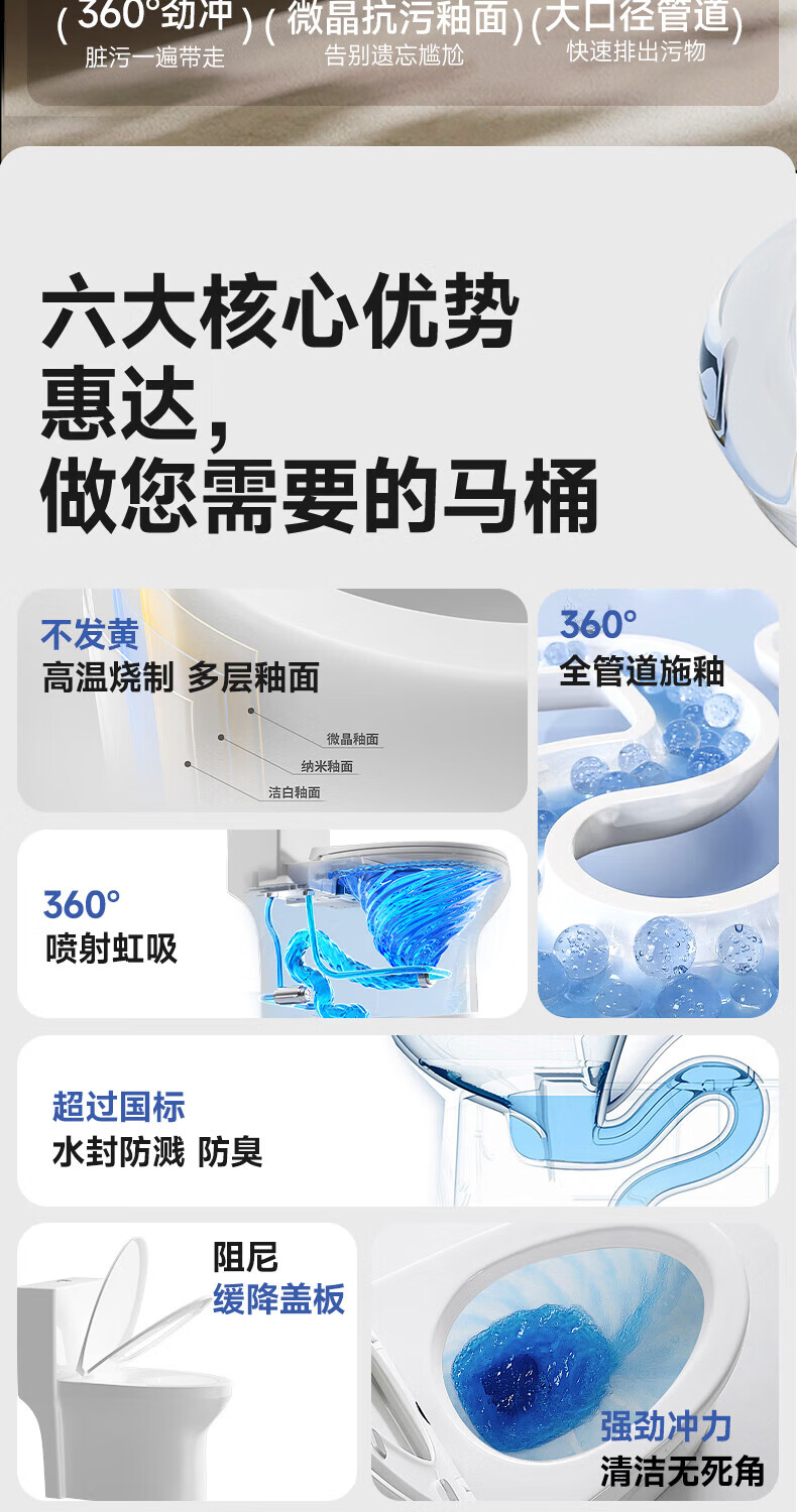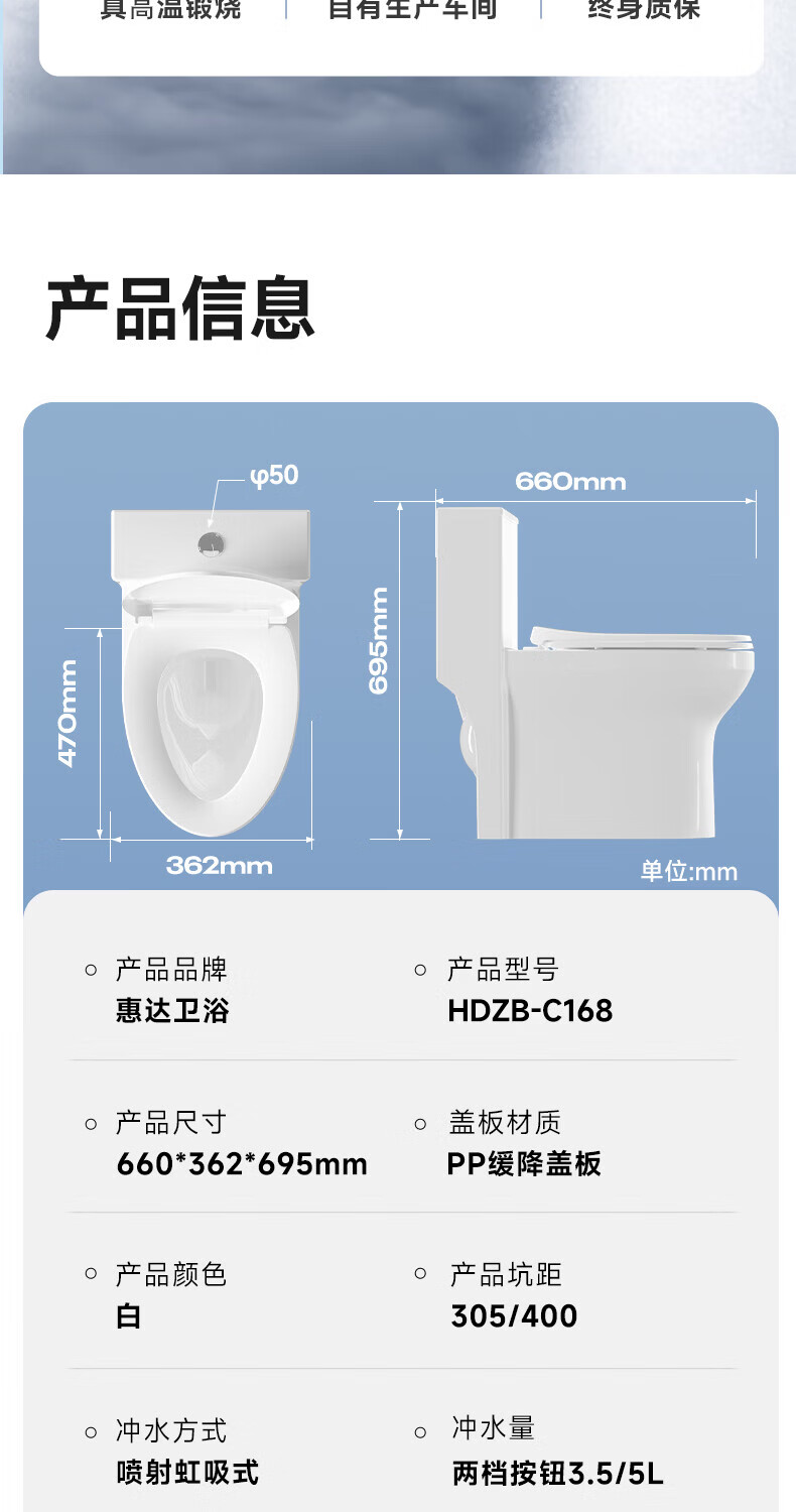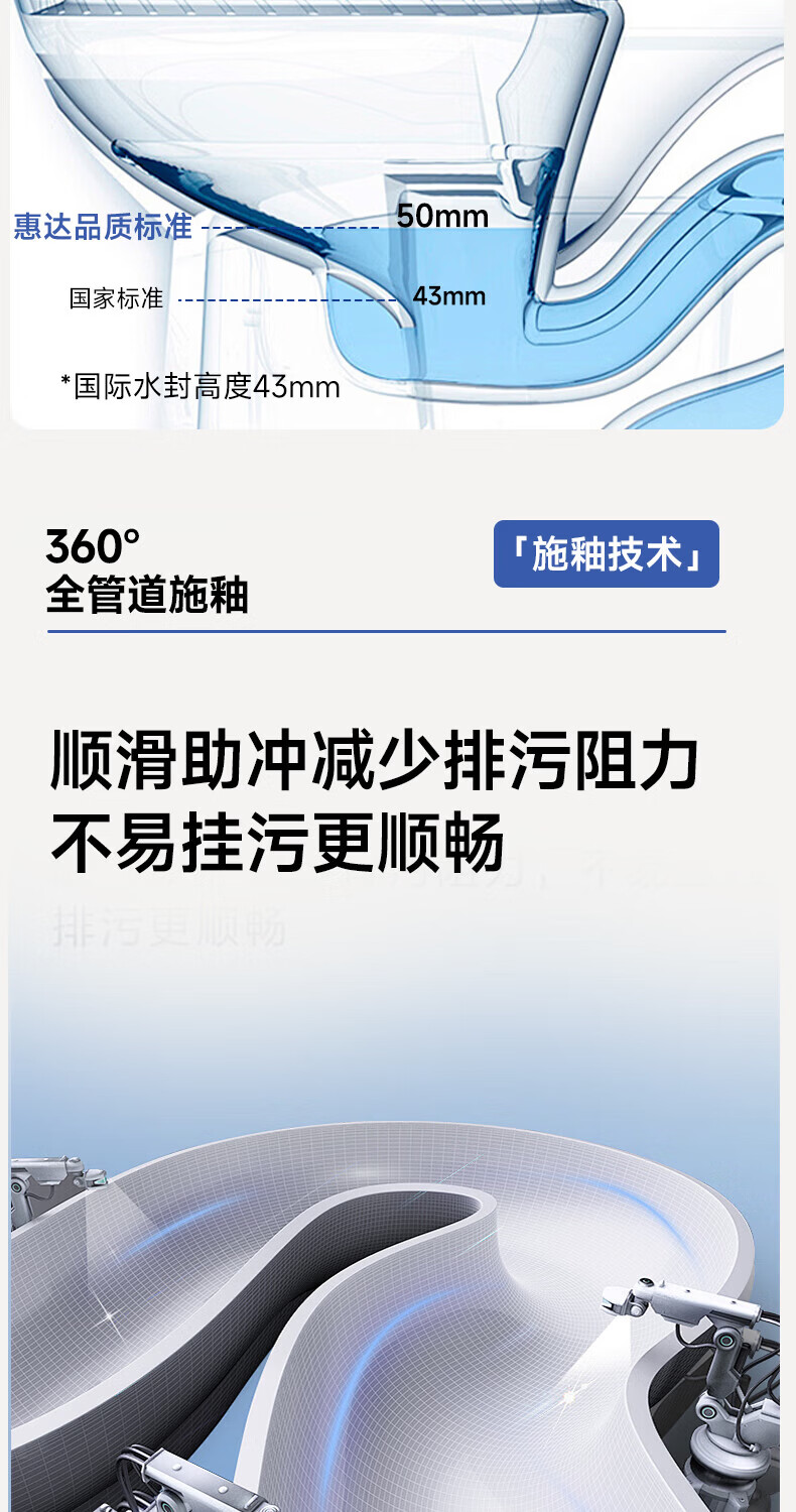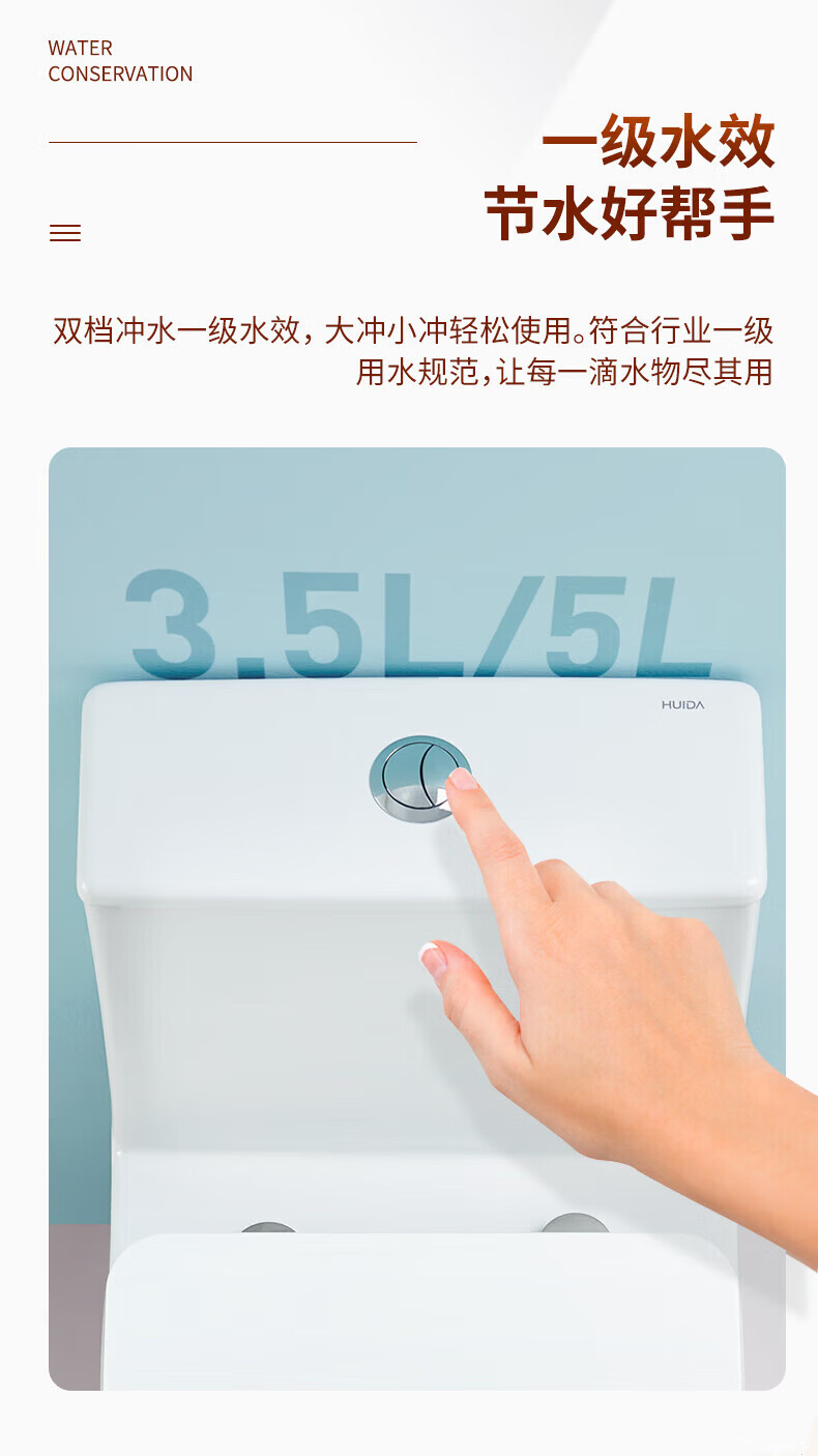 惠达(HUIDA)家用普通马桶虹吸式节水缓降盖板陶瓷马桶大冲力抽水卫生间坐便器 【小户型喷射虹吸】C168 坑距是290-389选 305/300mm