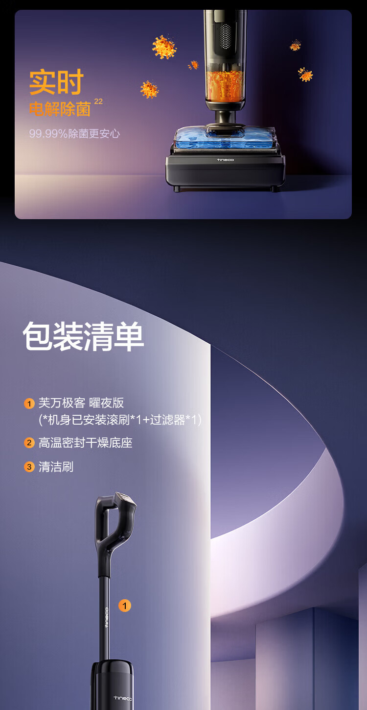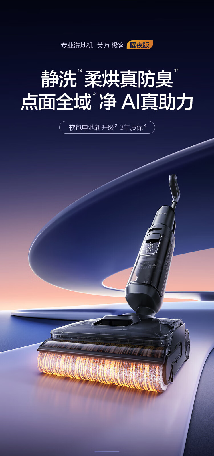 添可(TINECO)洗地机芙万极客曜夜【AI全向助力 25000PA吸力 超薄躺平】自动清洗吸拖一体宠物扫地机器人 芙万极客曜夜