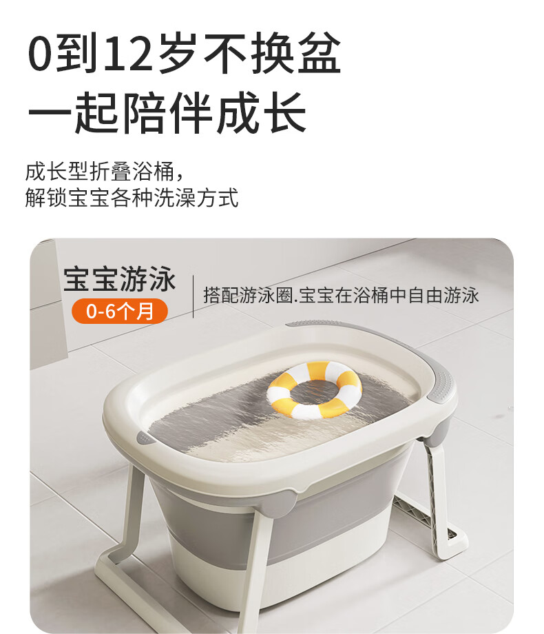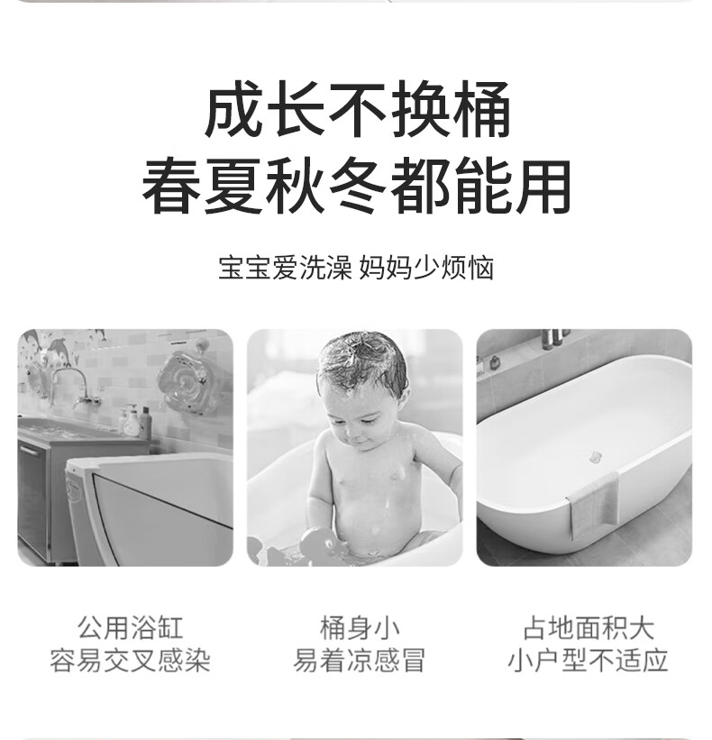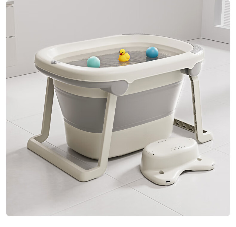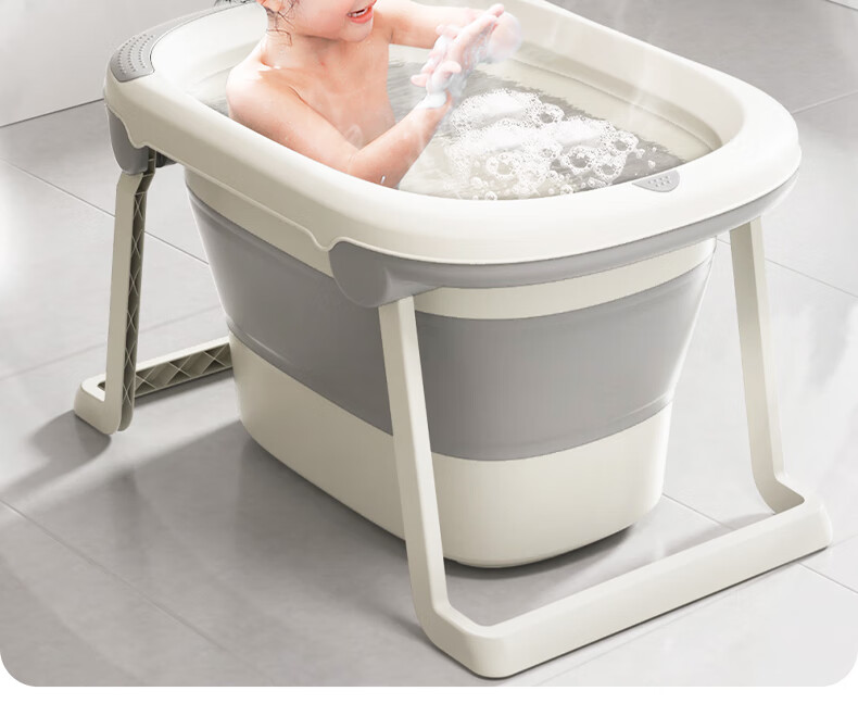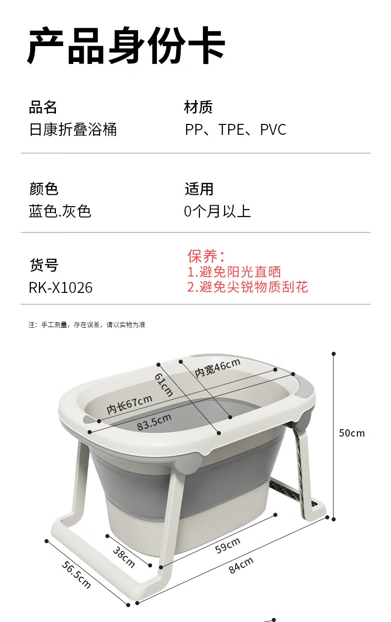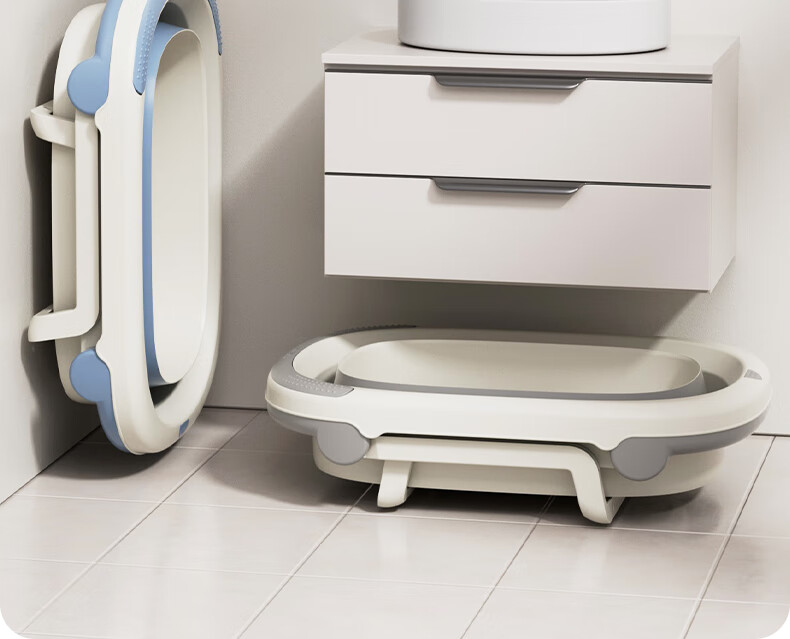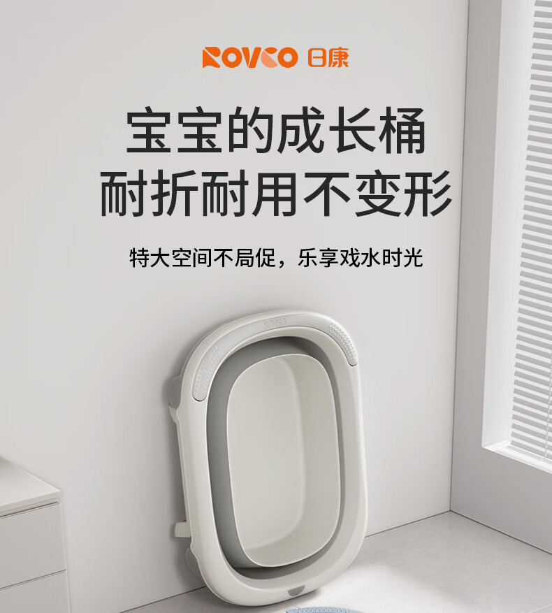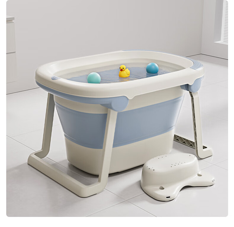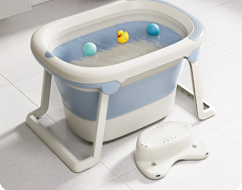 日康(rikang)泡澡桶 儿童折叠浴桶婴儿洗澡盆 宝宝洗澡桶 赠浴凳蓝色X1026-1