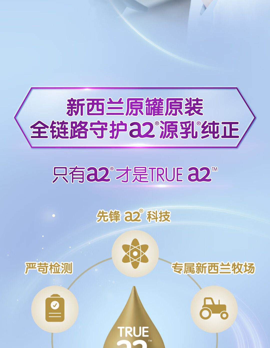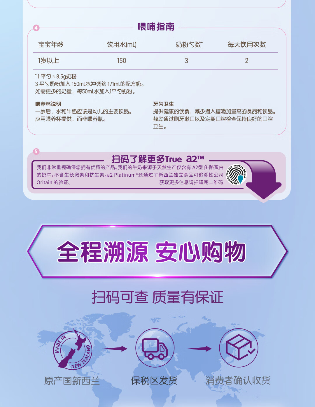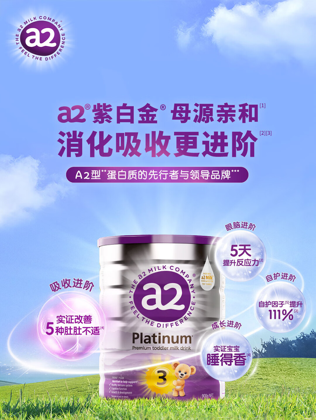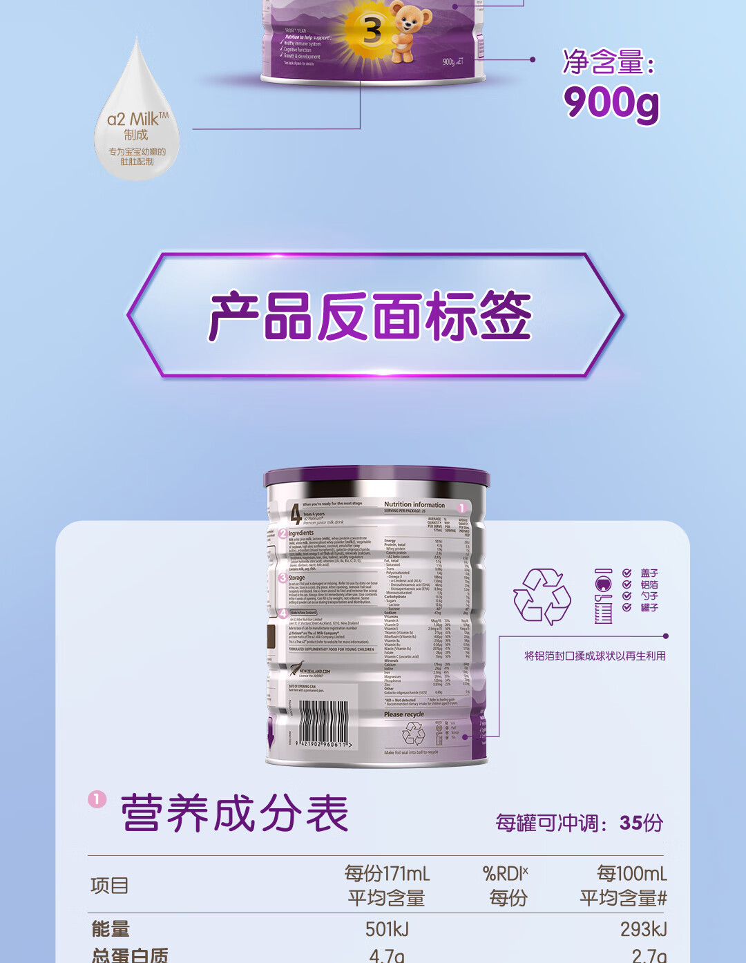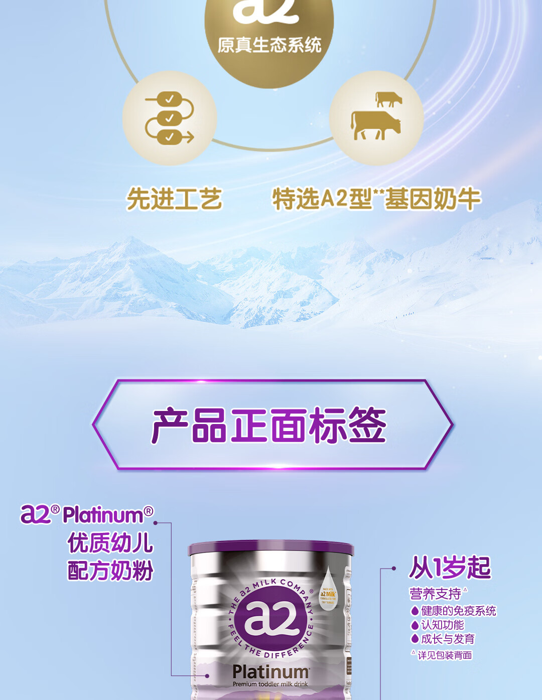 a2奶粉紫白金A2+DHA幼儿配方奶粉3段(1岁+) 900g【新西兰草饲认证】