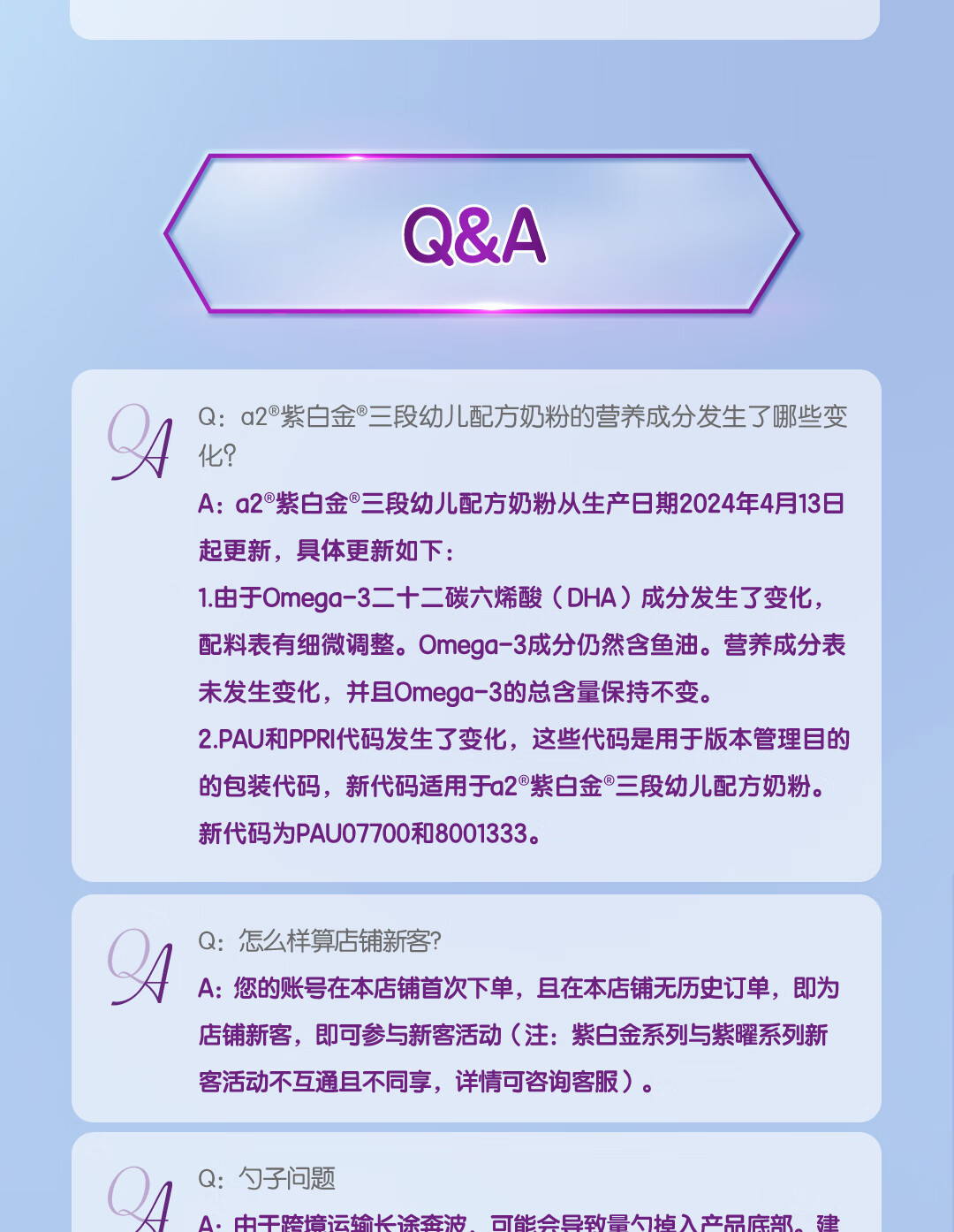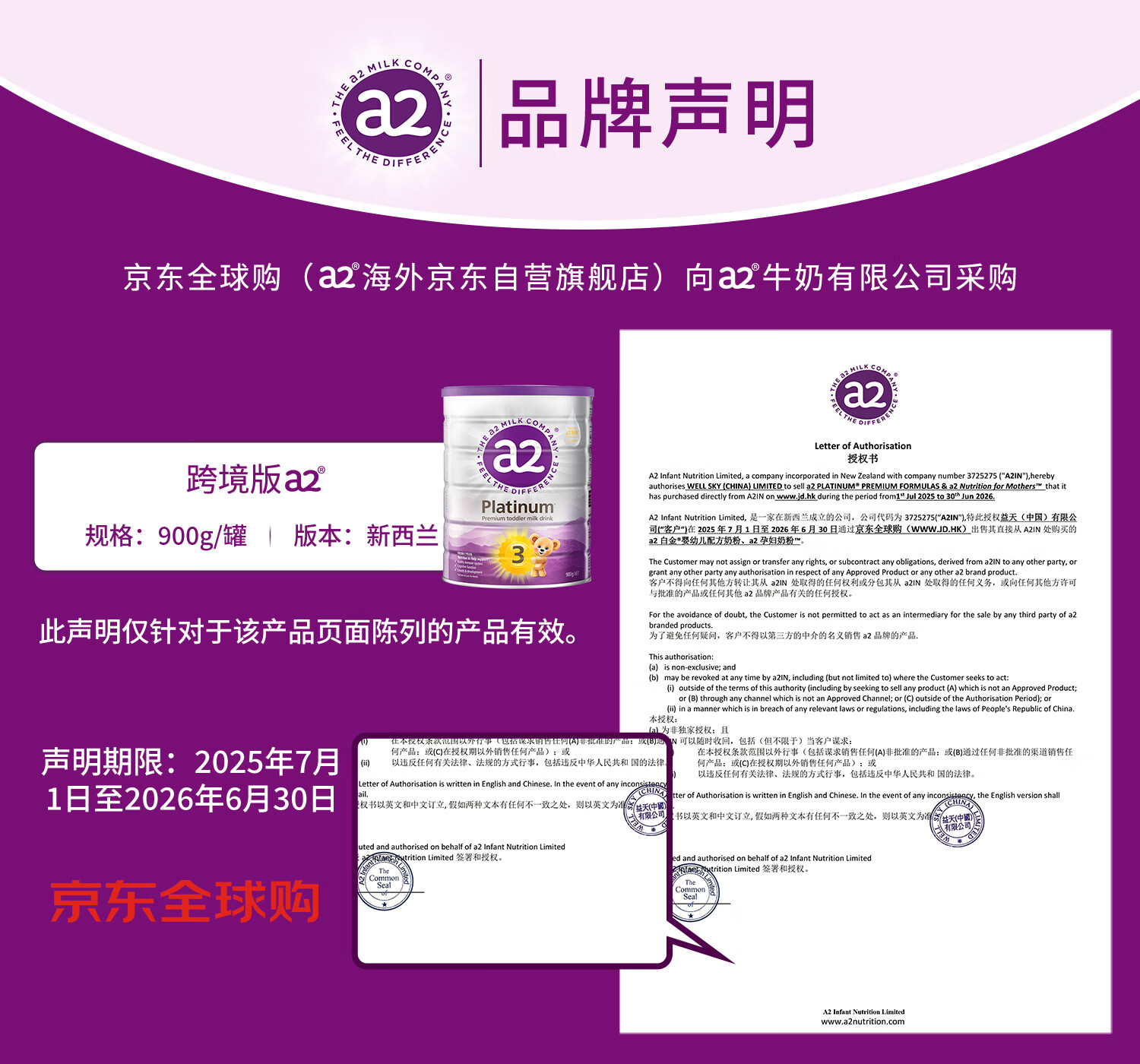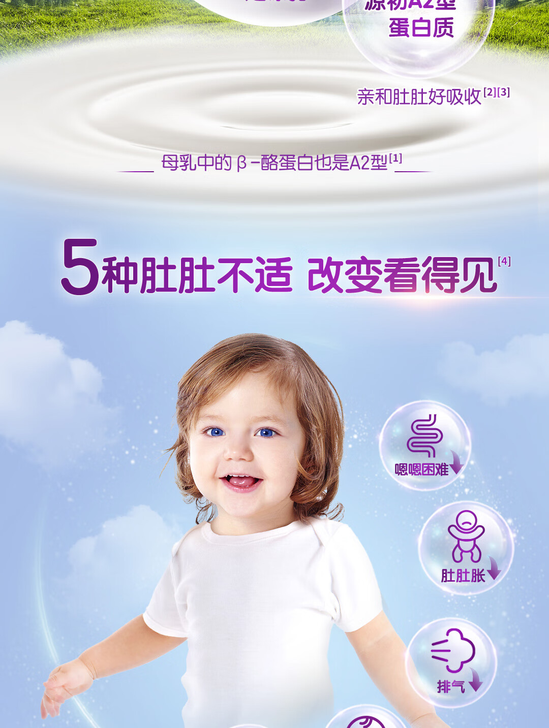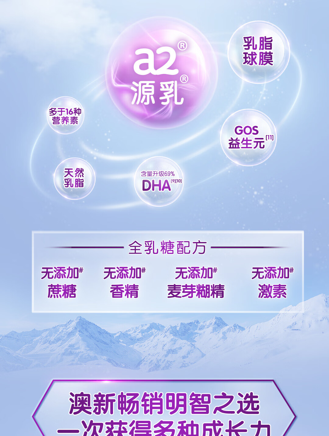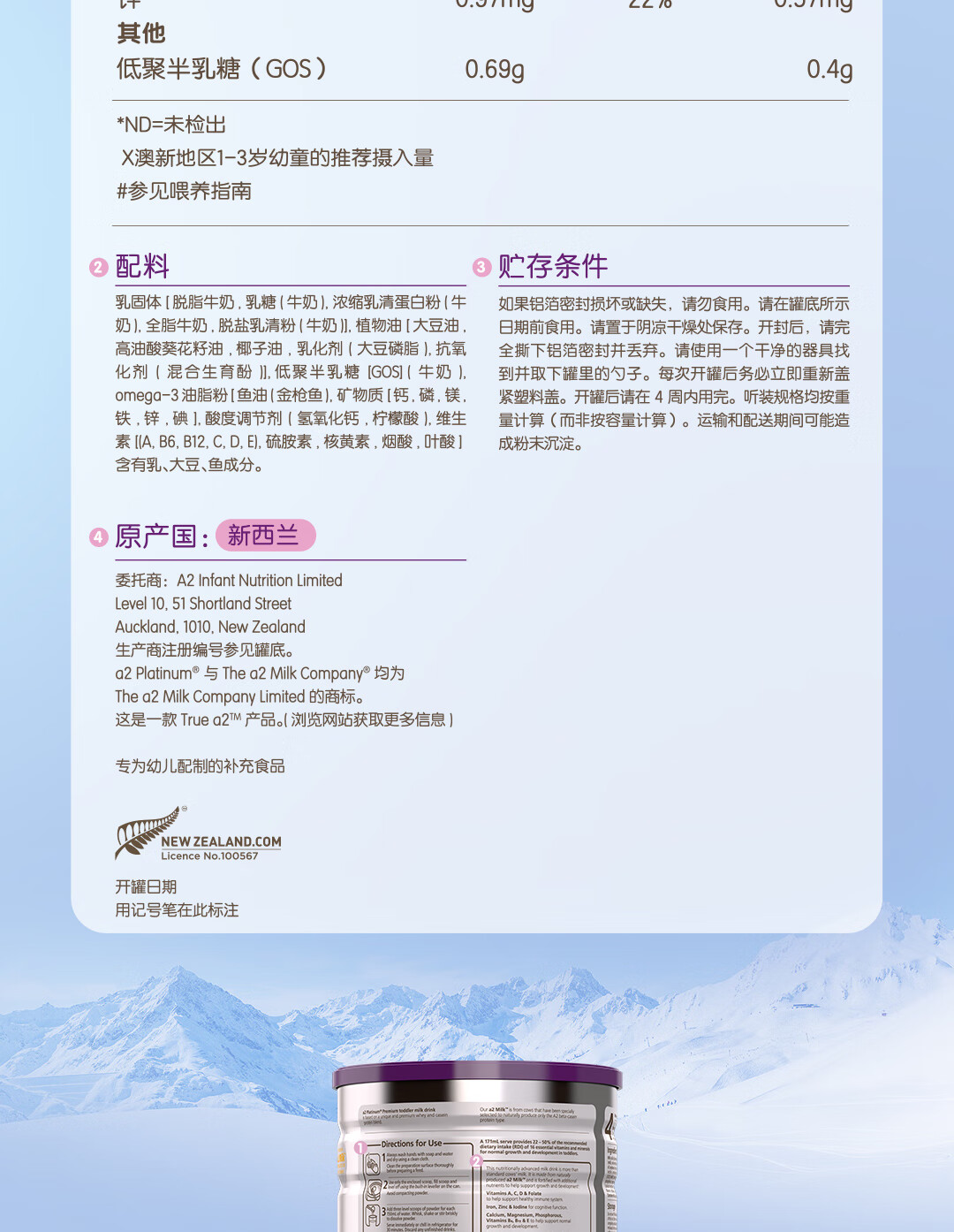a2奶粉紫白金A2+DHA幼儿配方奶粉3段(1岁+) 900g【新西兰草饲认证】