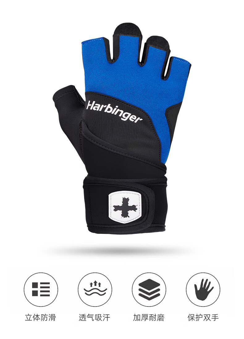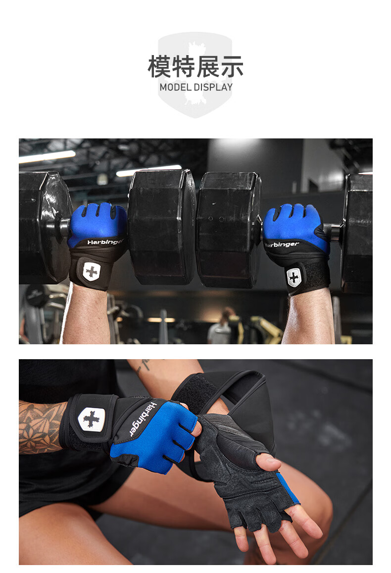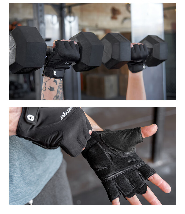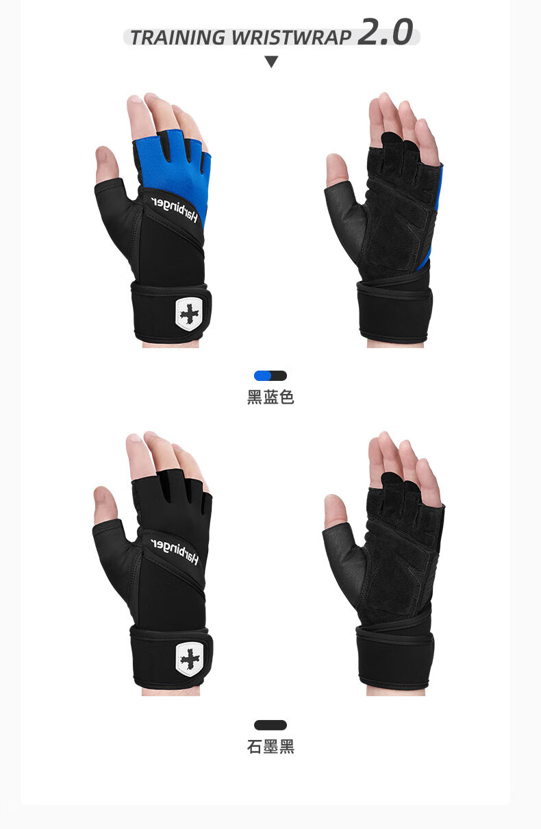 Harbinger哈彬者健身手套男女护腕一体半指骑行专业硬拉撸铁防滑耐磨防起茧 【护腕升级 真皮加垫 】黑色 S(掌围17.8-19cm)