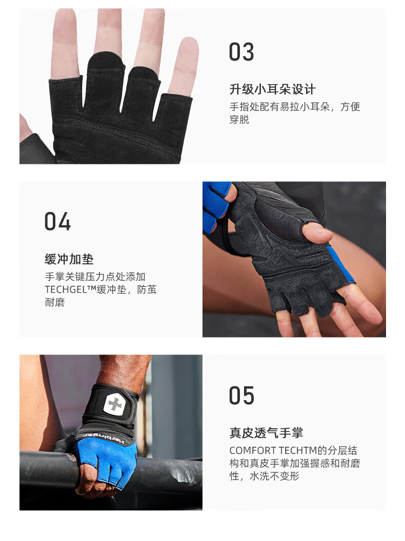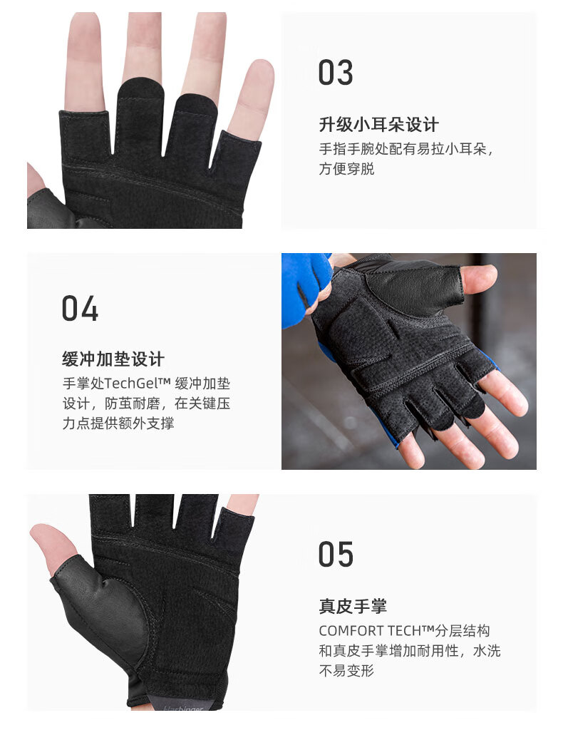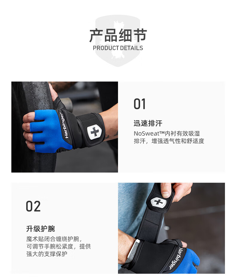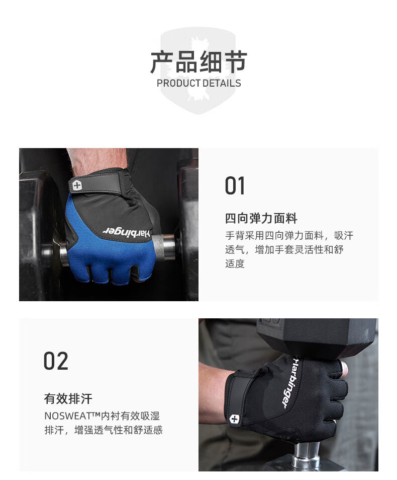 Harbinger哈彬者健身手套男女护腕一体半指骑行专业硬拉撸铁防滑耐磨防起茧 【护腕升级 真皮加垫 】黑色 S(掌围17.8-19cm)