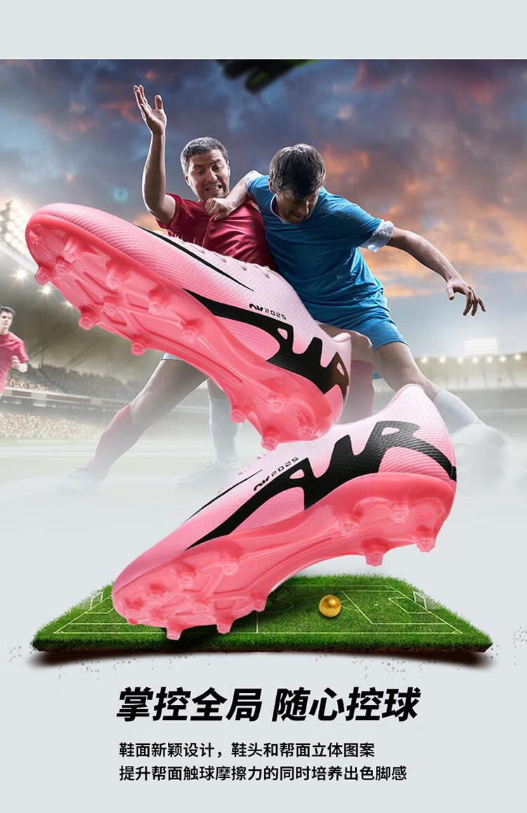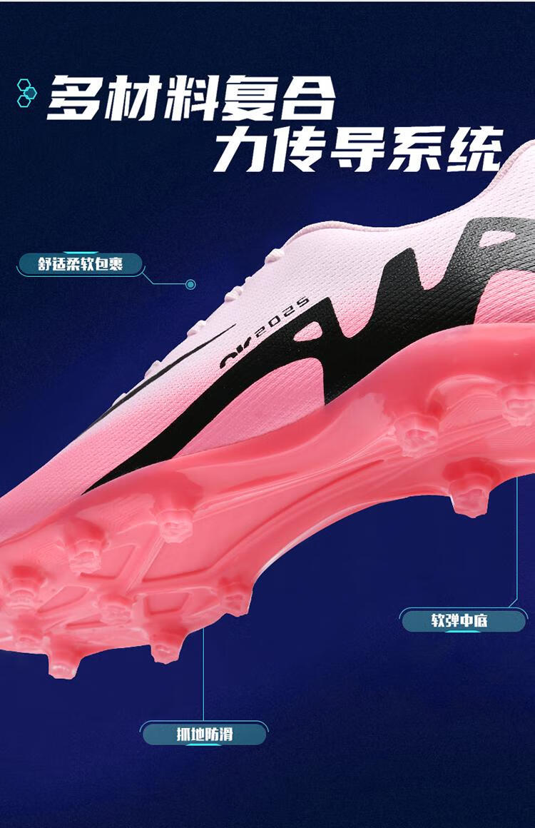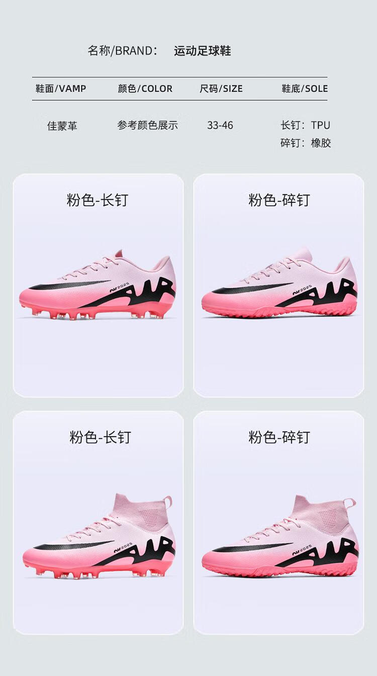 KUNY出口C罗刺客15足球鞋男款女长钉AG碎钉T青年小学生成人草地儿童鞋 W2286粉色长钉 38