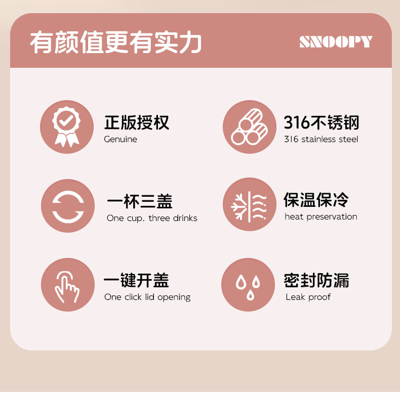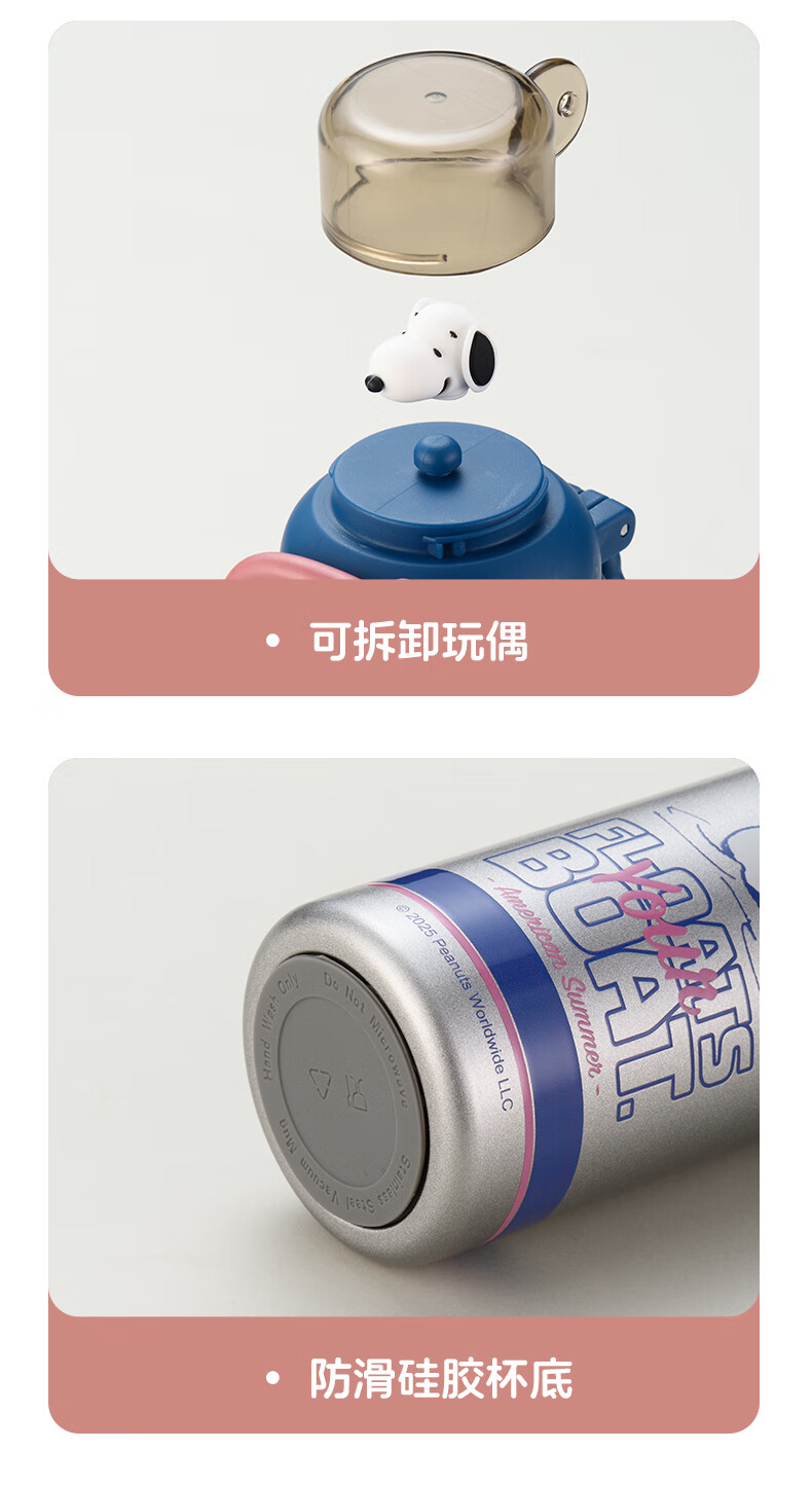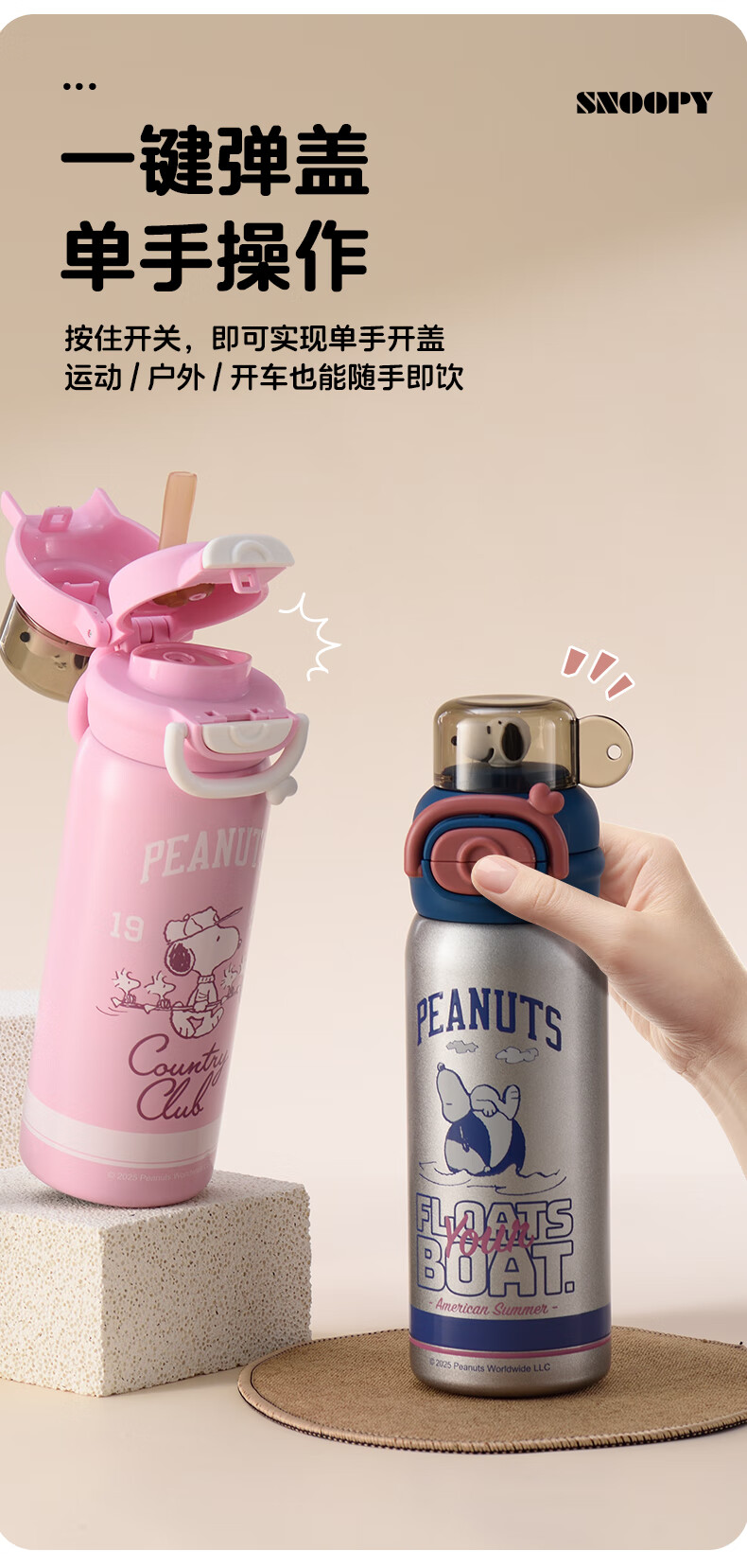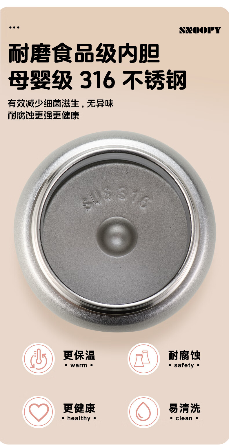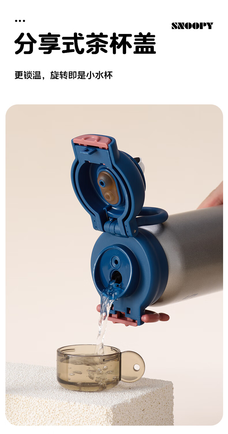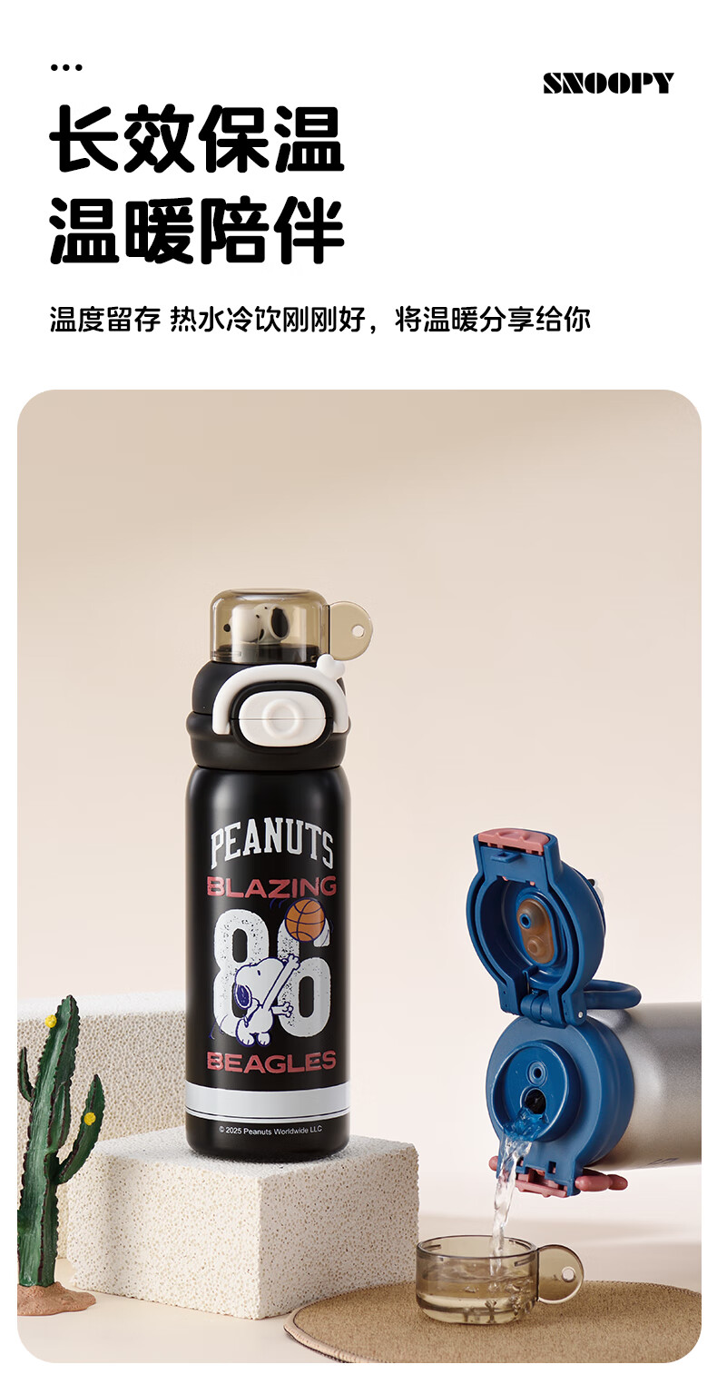 史努比儿童保温杯316不锈钢男女生上学专用水杯大容量便携直饮随行杯子 蓝色-【一杯三饮+316内胆】600ml