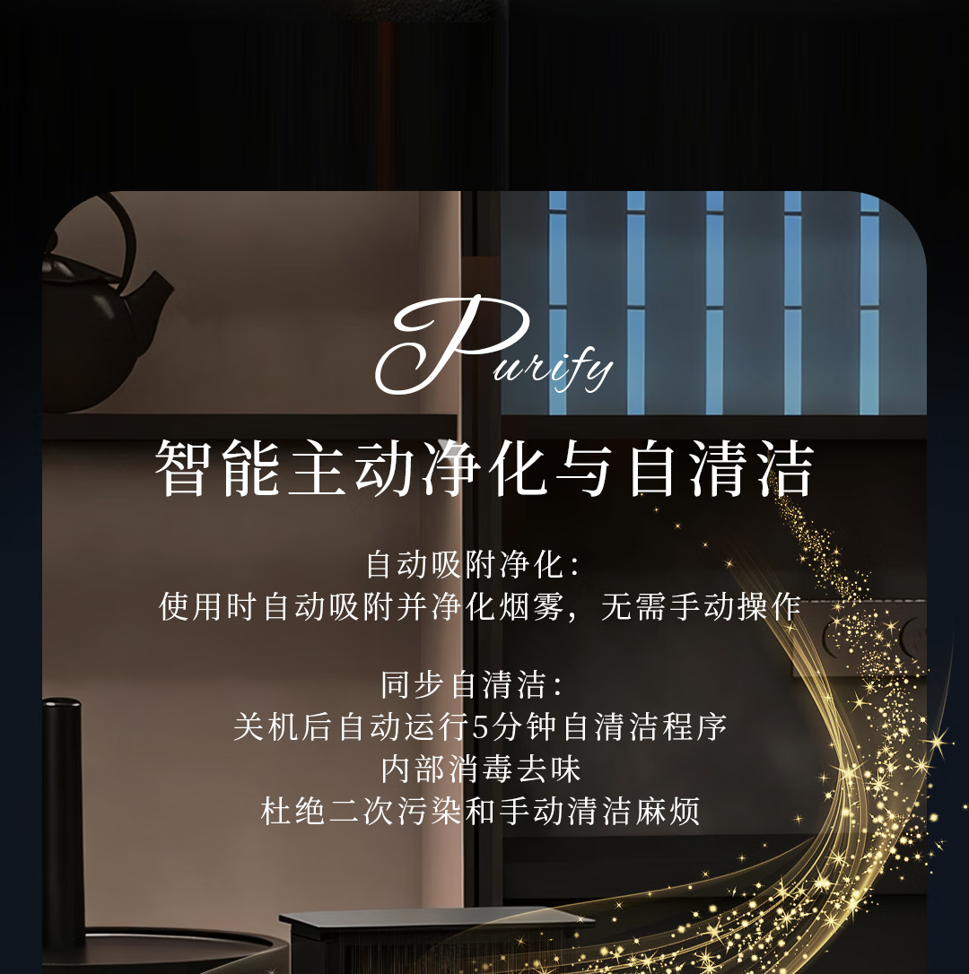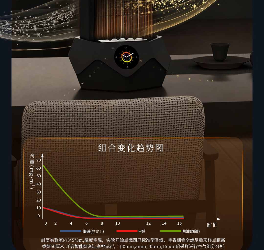 浦尔乐V8智能烟灰缸空气净化器除二手烟五维净化桌面自动升降高端礼品 【黑色】普通包装