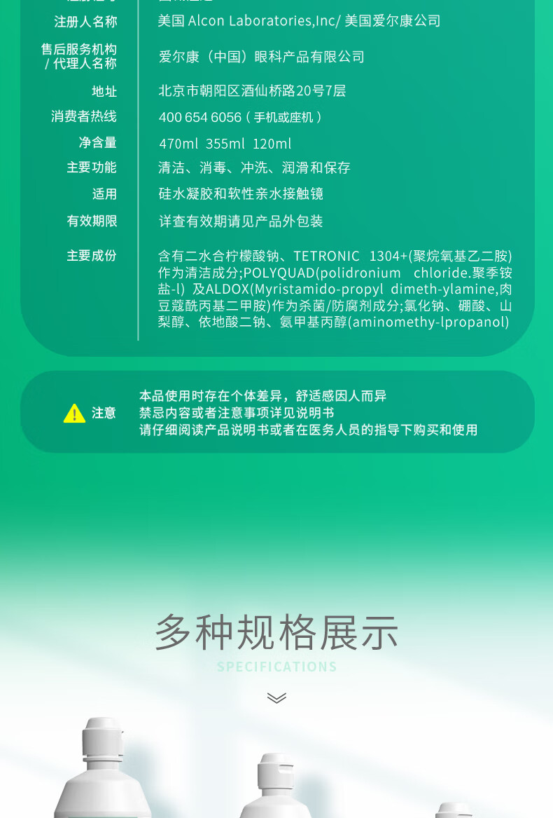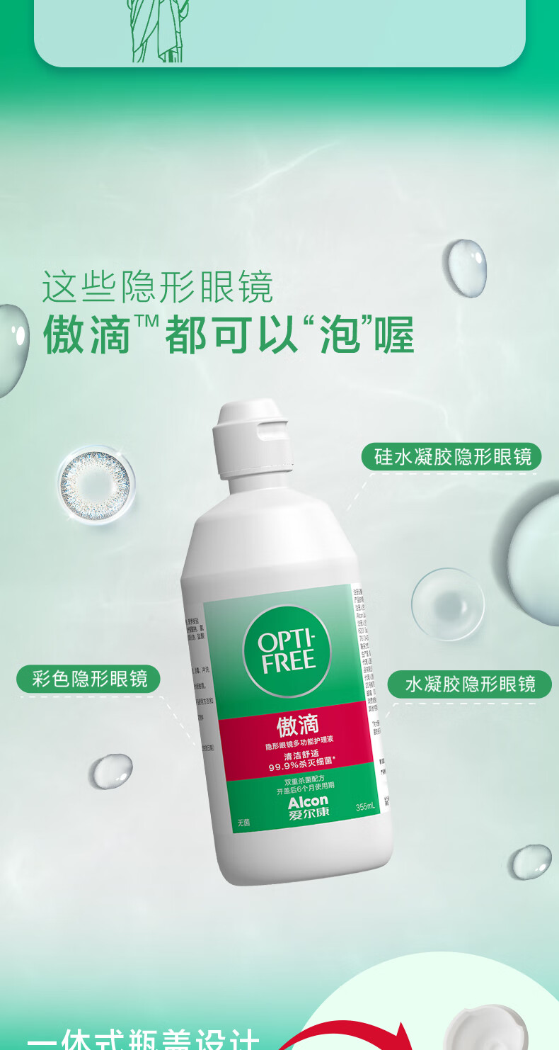 爱尔康 傲滴恒润护理液355ml 120ml 470ml 隐形眼镜美瞳清洗液除蛋白 355ml*2【共710ml 附镜盒】