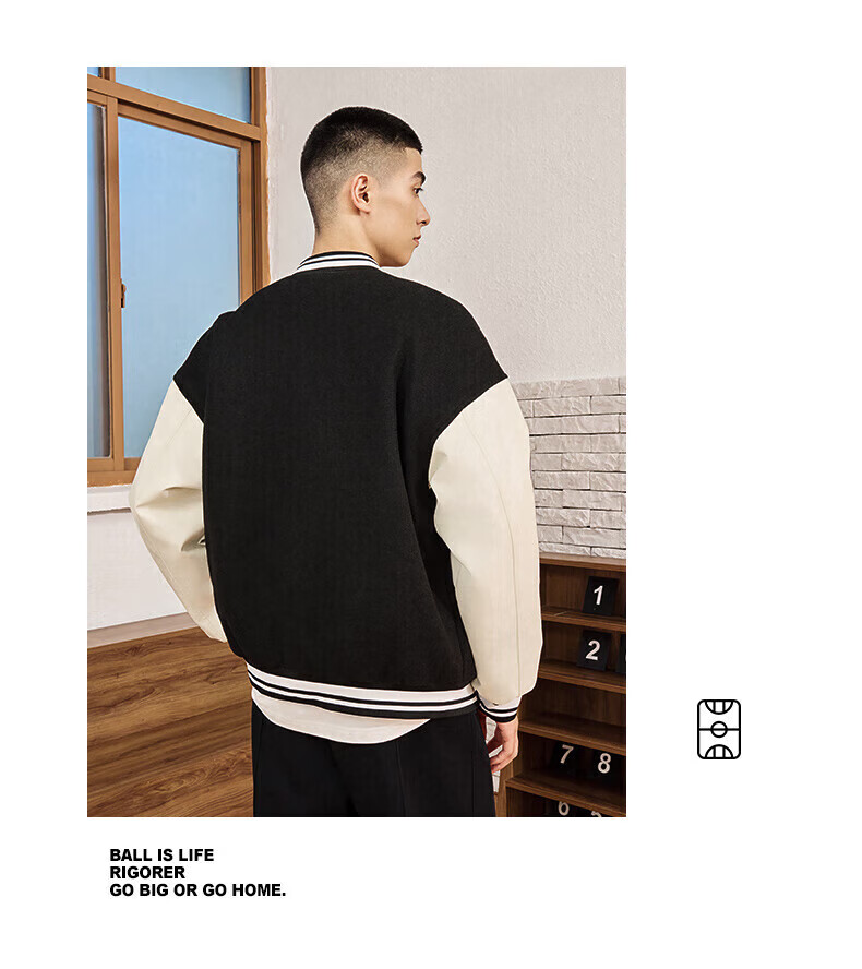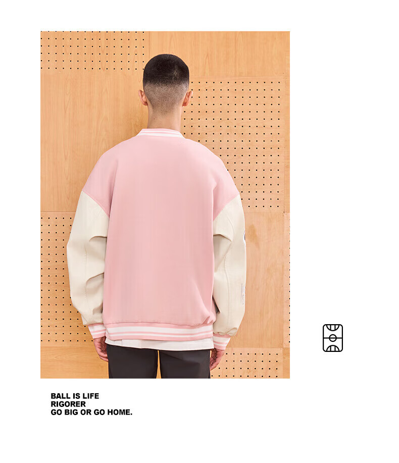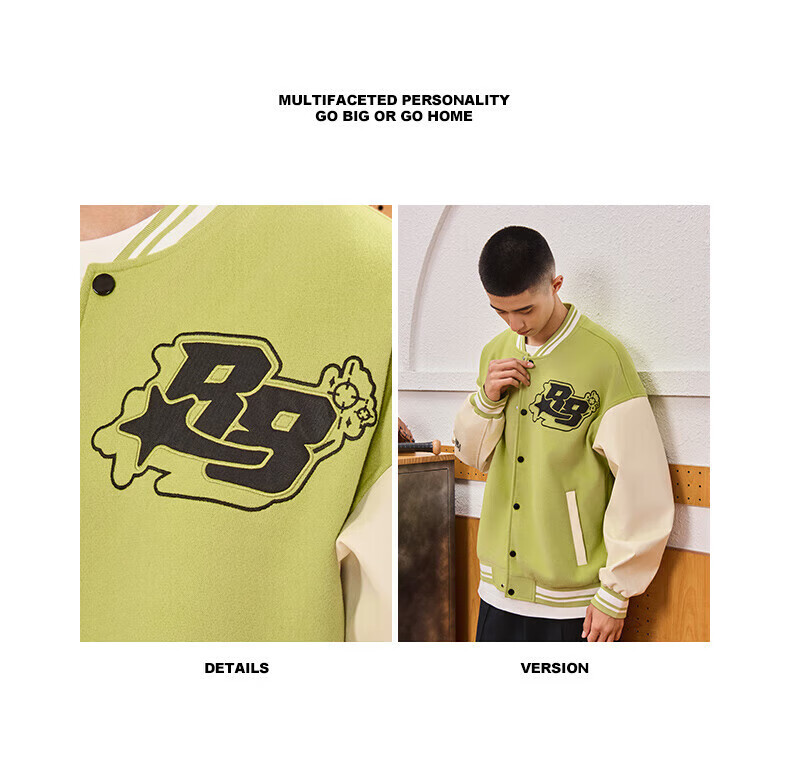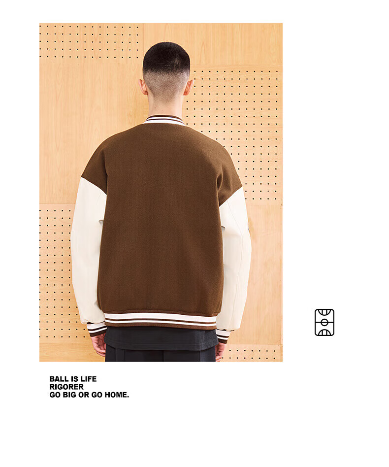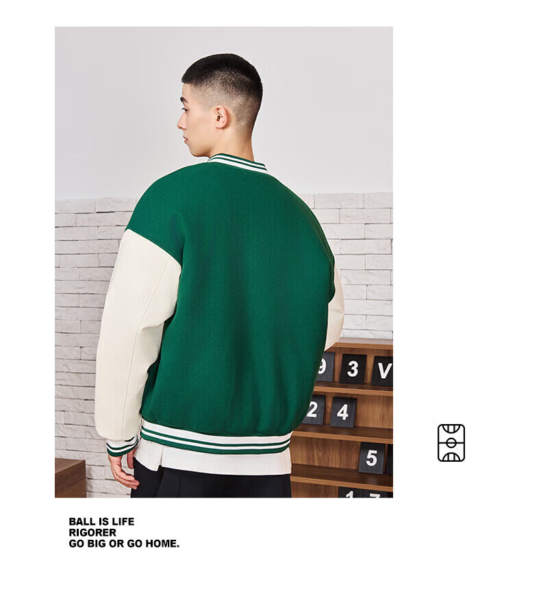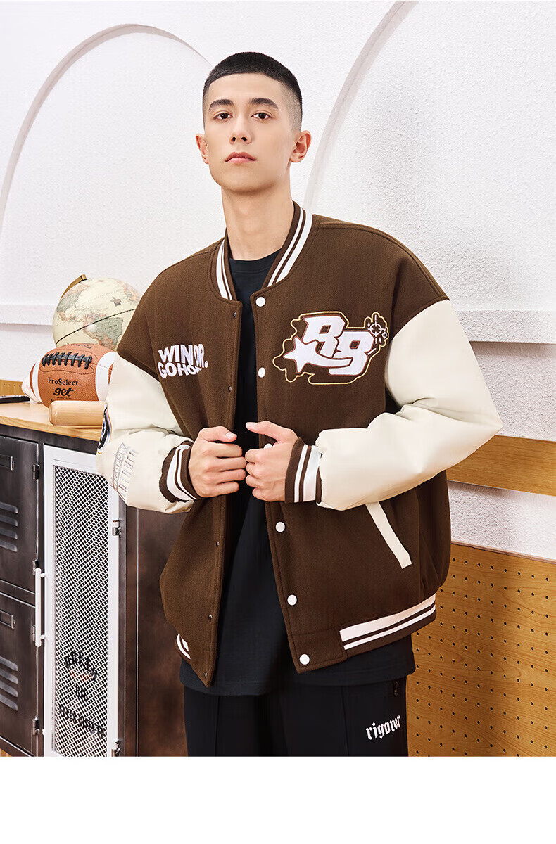 准者(RIGORER)棒球服外套男女春夏加厚新款美式复古刺绣宽松运动夹克 深卡其 XS 160