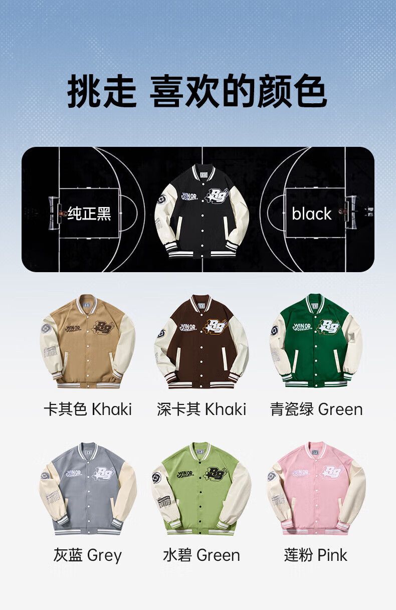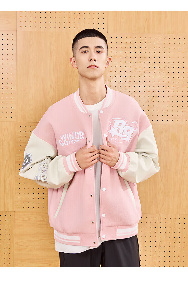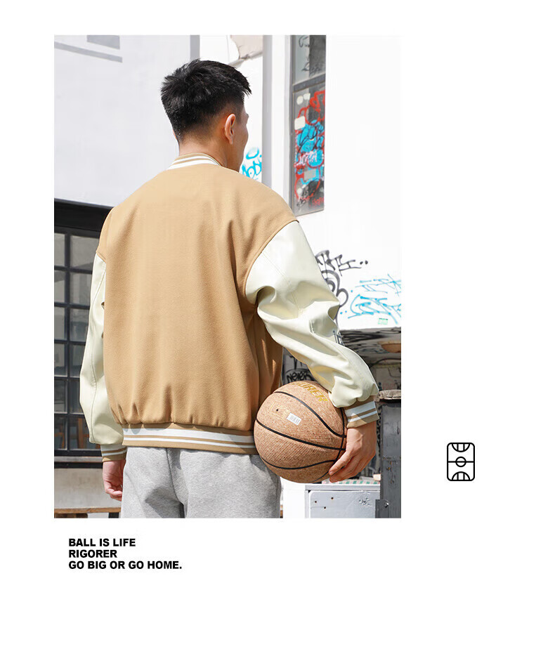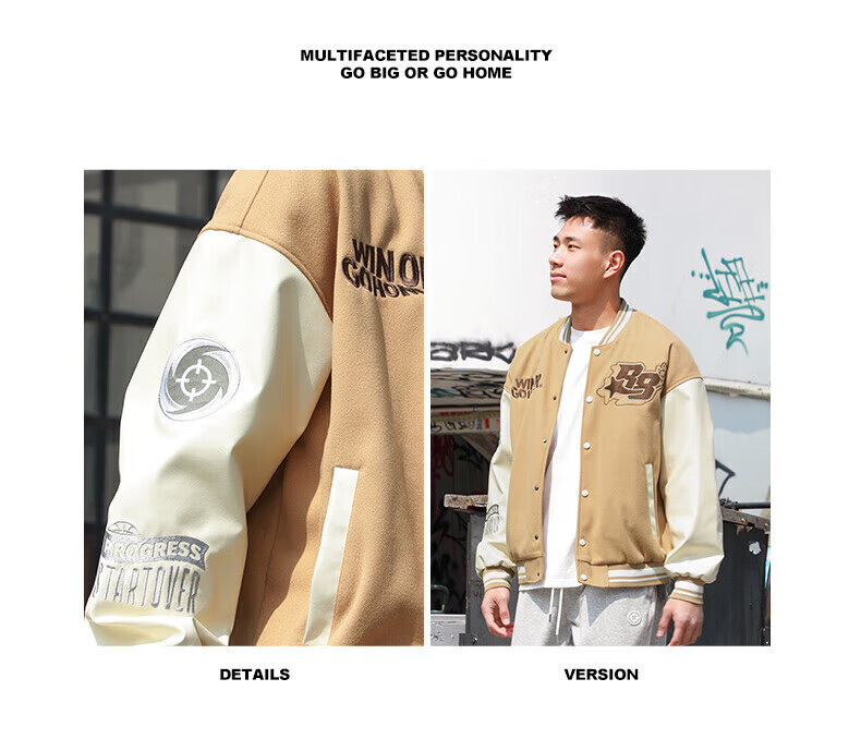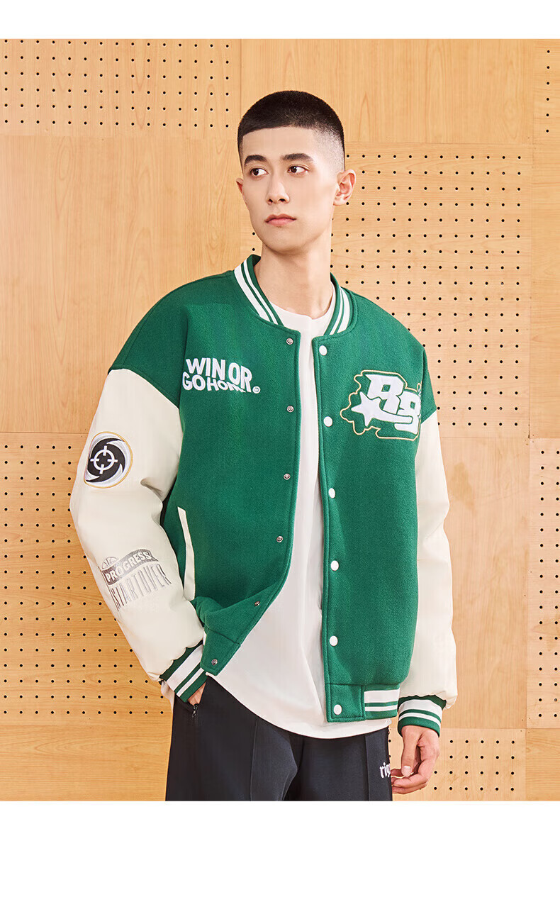 准者(RIGORER)棒球服外套男女春夏加厚新款美式复古刺绣宽松运动夹克 深卡其 XS 160