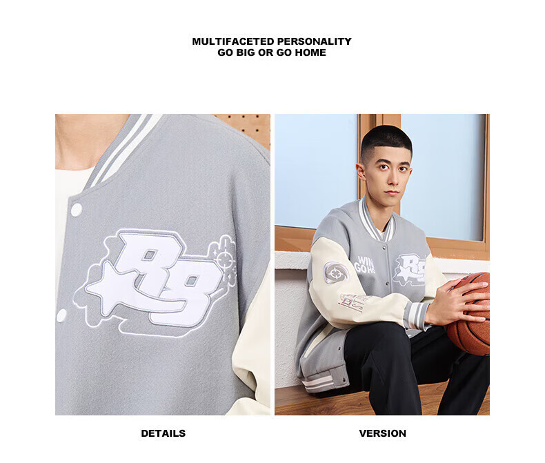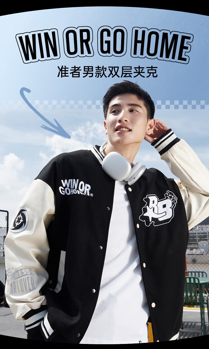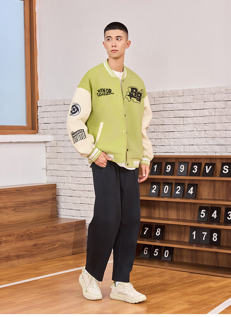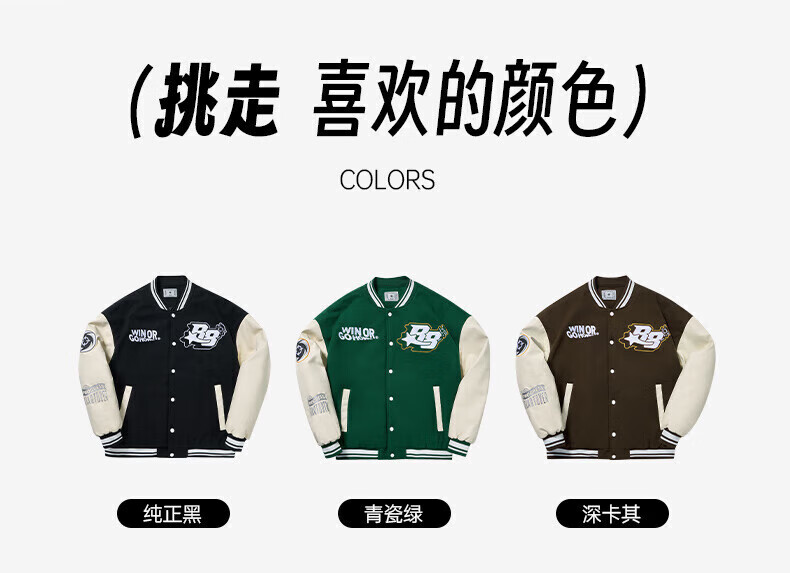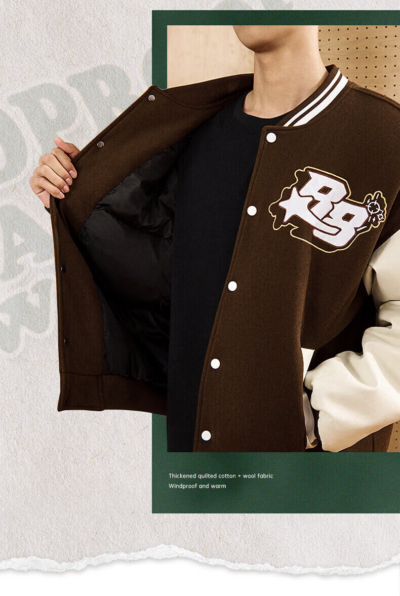 准者(RIGORER)棒球服外套男女春夏加厚新款美式复古刺绣宽松运动夹克 深卡其 XS 160