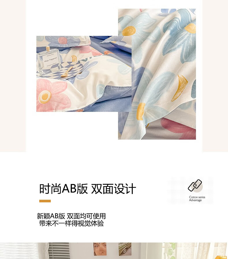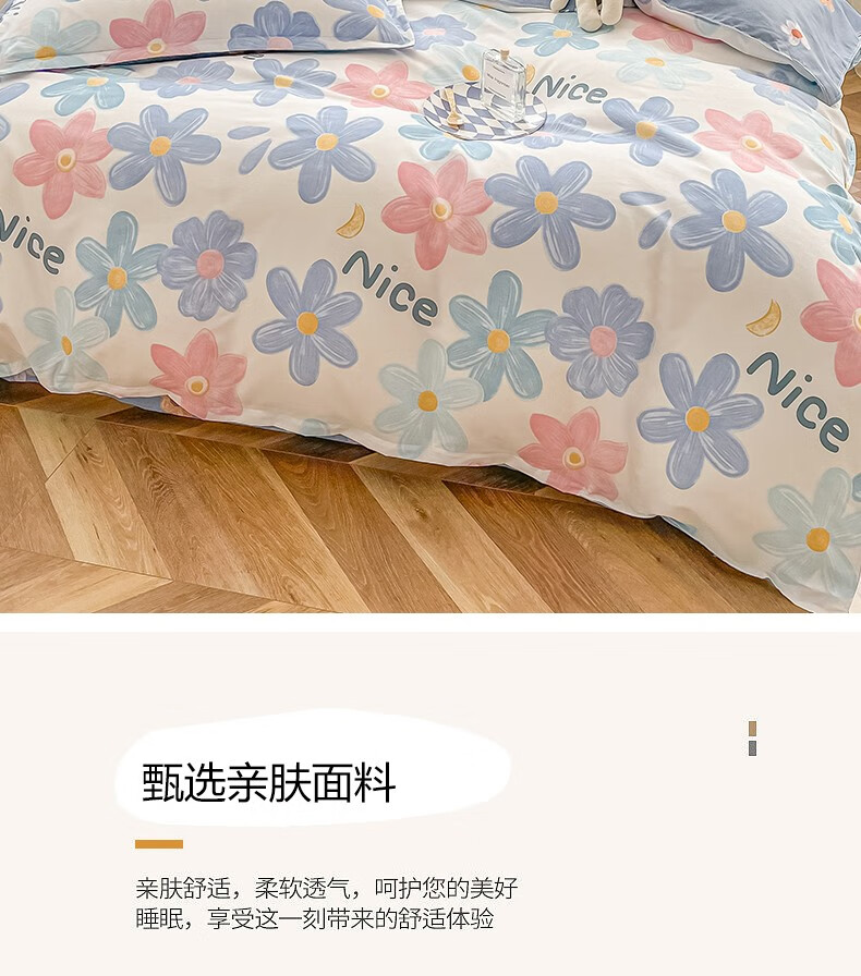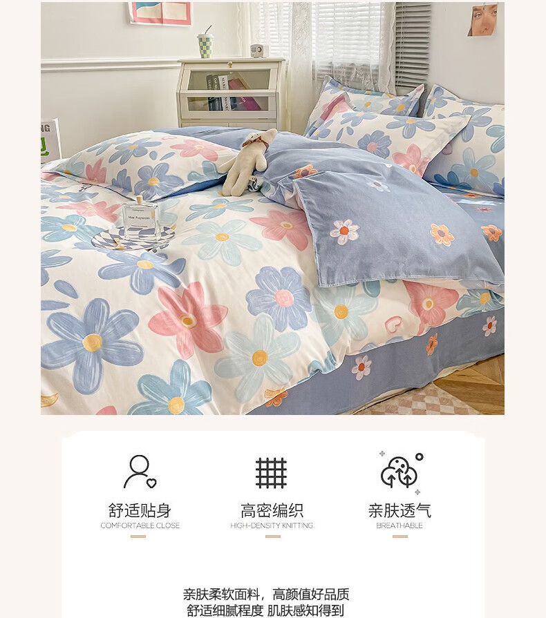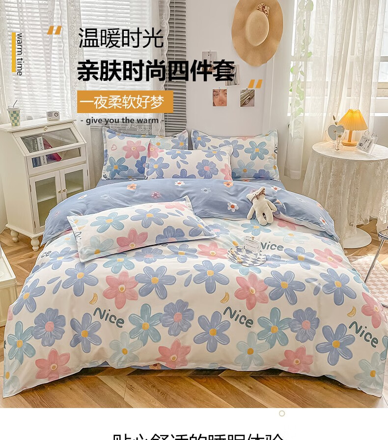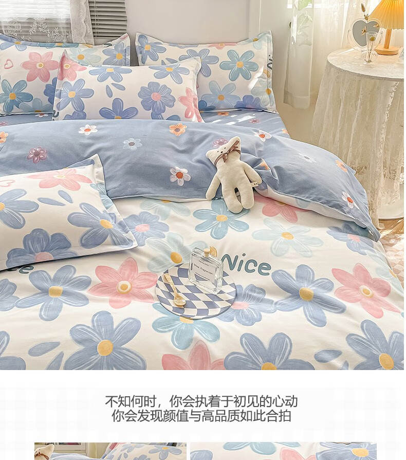 多兰诗(Duolanshi)春秋加厚磨毛四件套 ins四件套花卉田园风格床单被套四件套 蔷薇花 2.0米 床单款 被套200*230 四件套