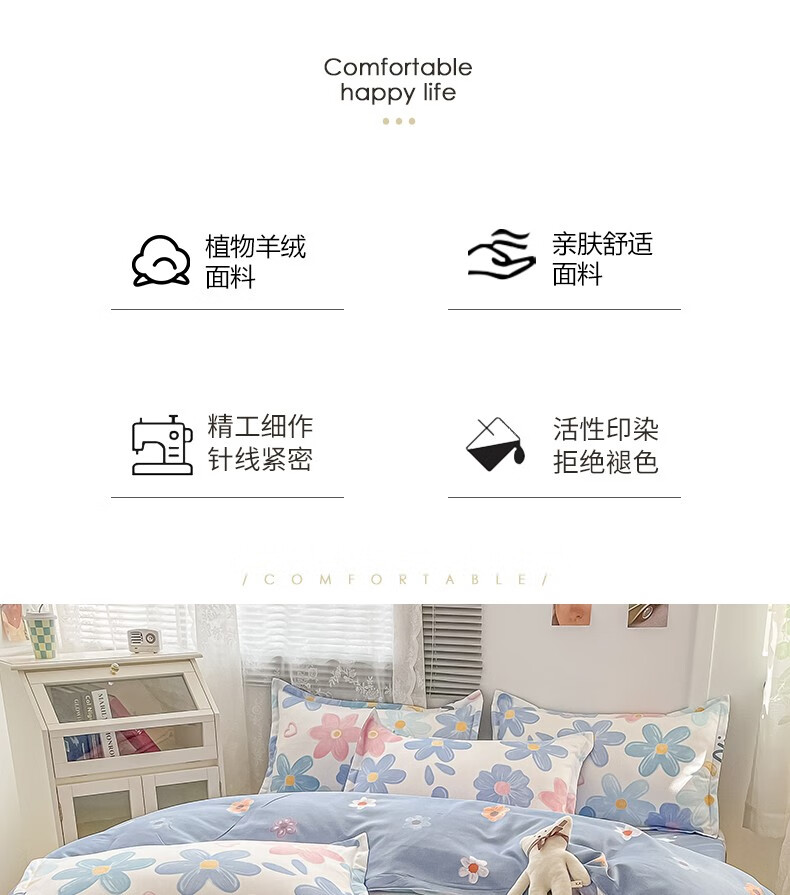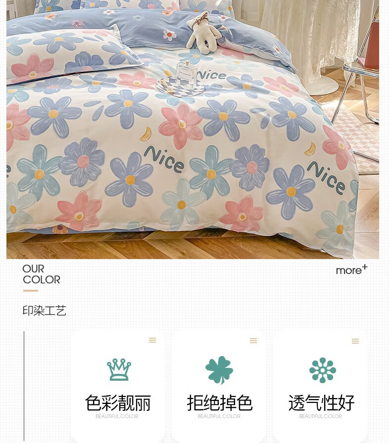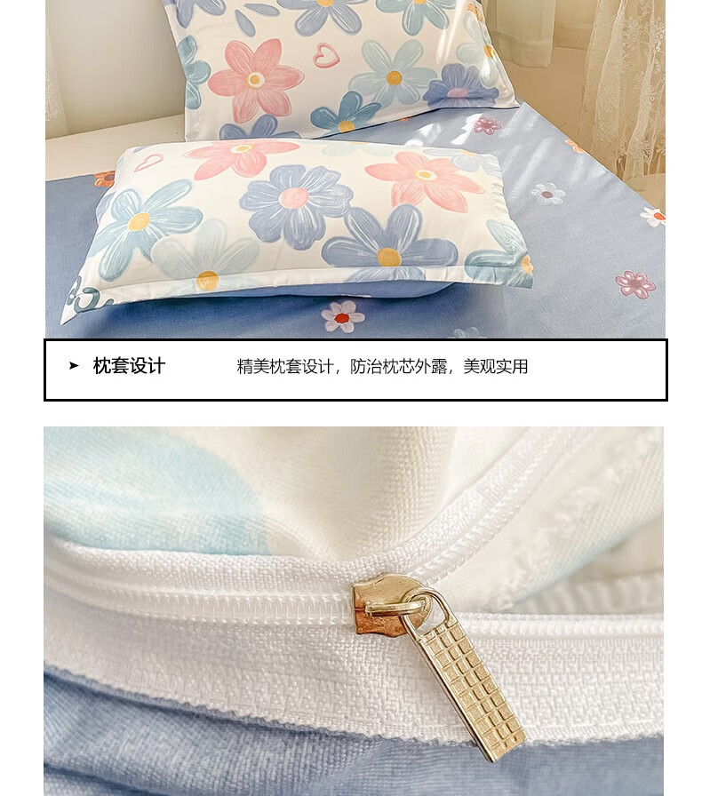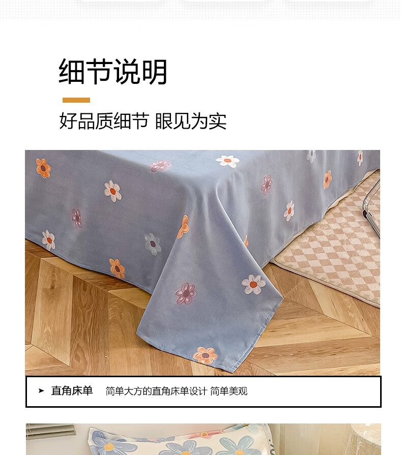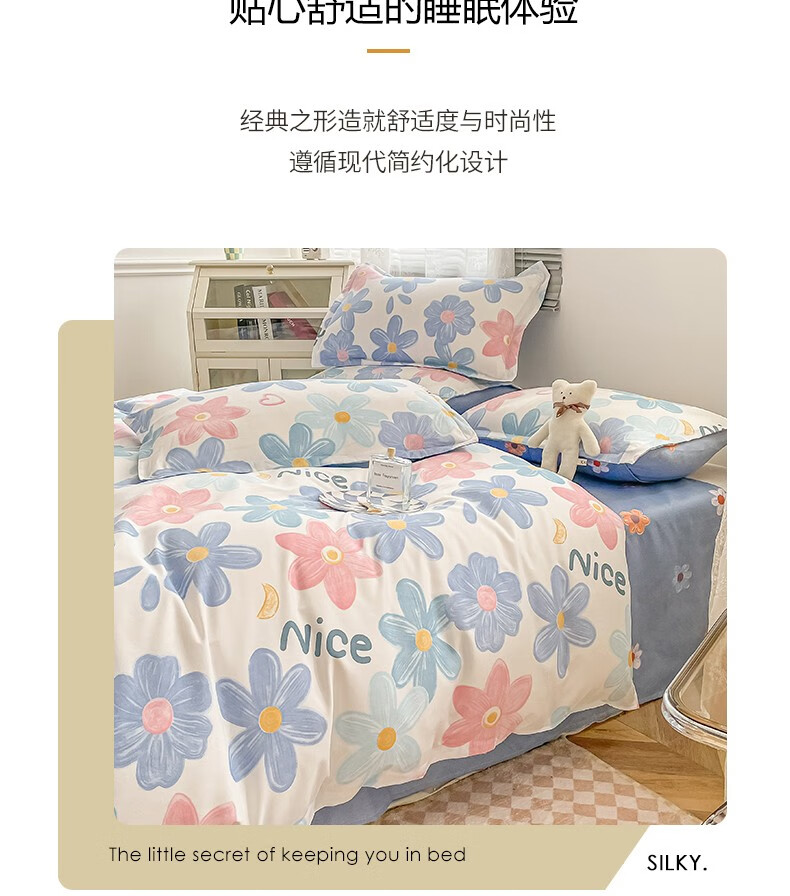 多兰诗(Duolanshi)春秋加厚磨毛四件套 ins四件套花卉田园风格床单被套四件套 蔷薇花 2.0米 床单款 被套200*230 四件套