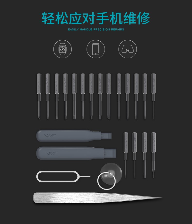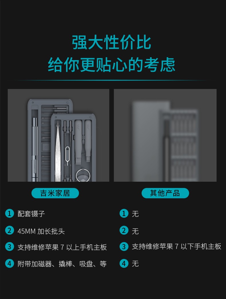 吉米家居精密螺丝刀套装S2磁吸批头多功能笔记本手机拆机工具JM-GNT26 拆机工具套装26件套