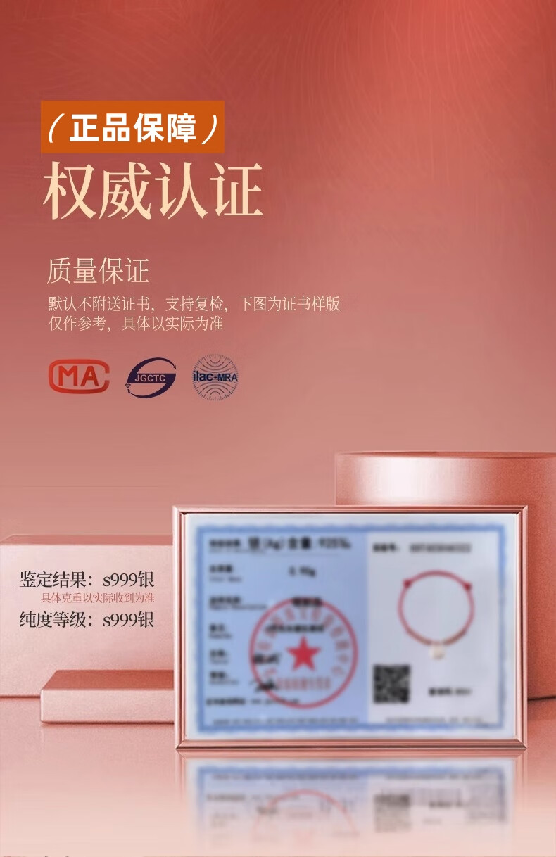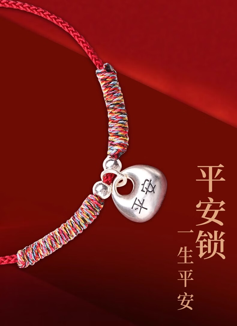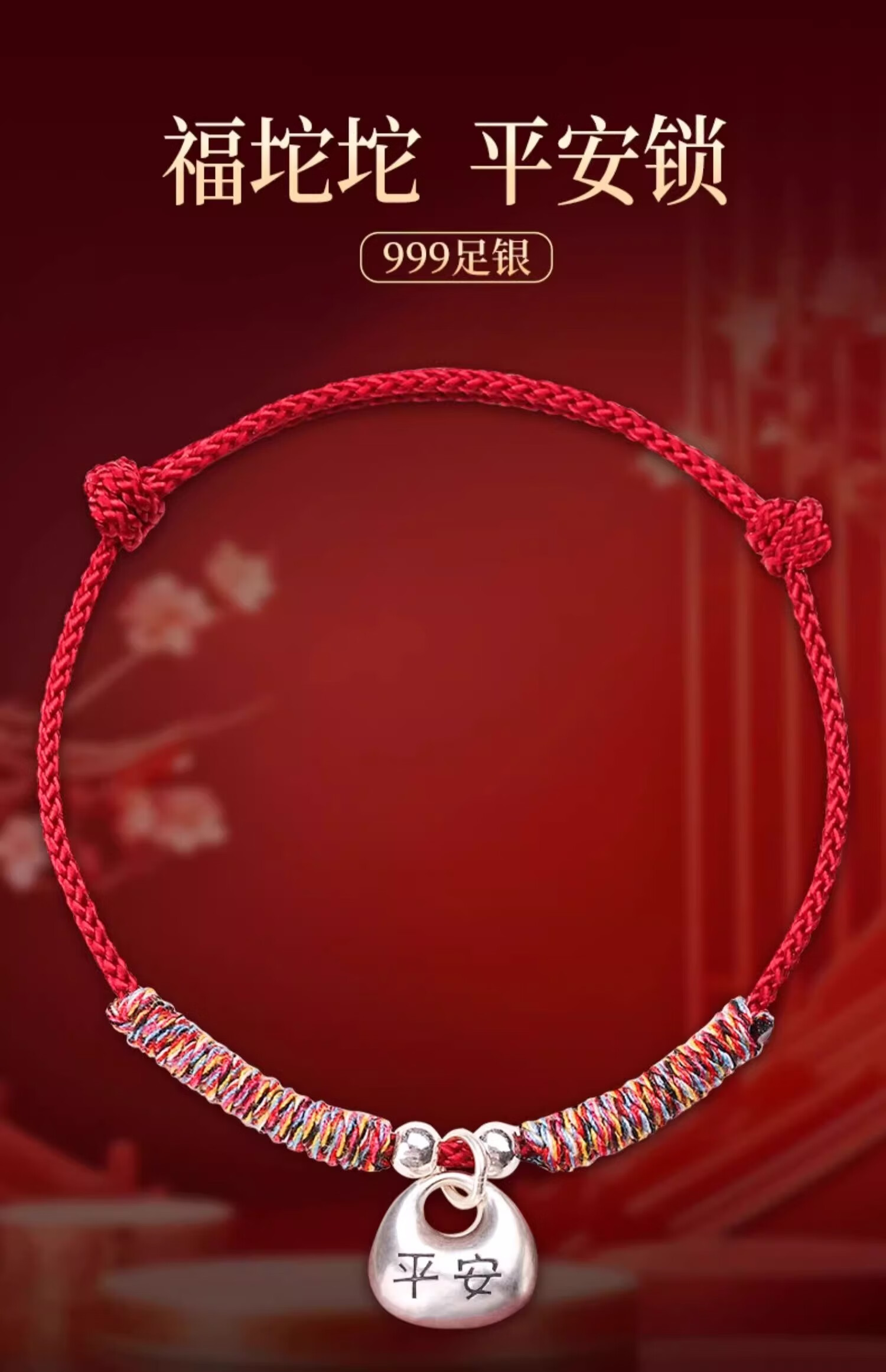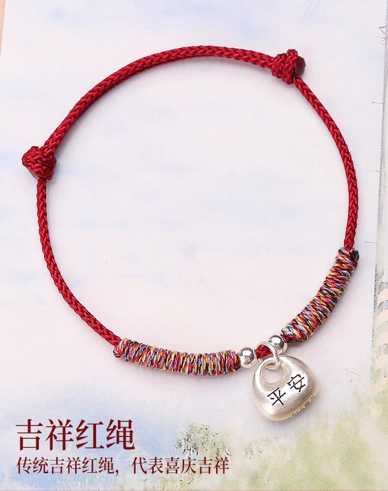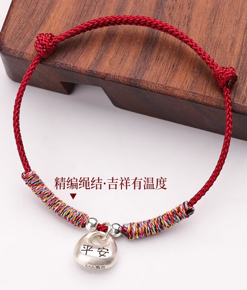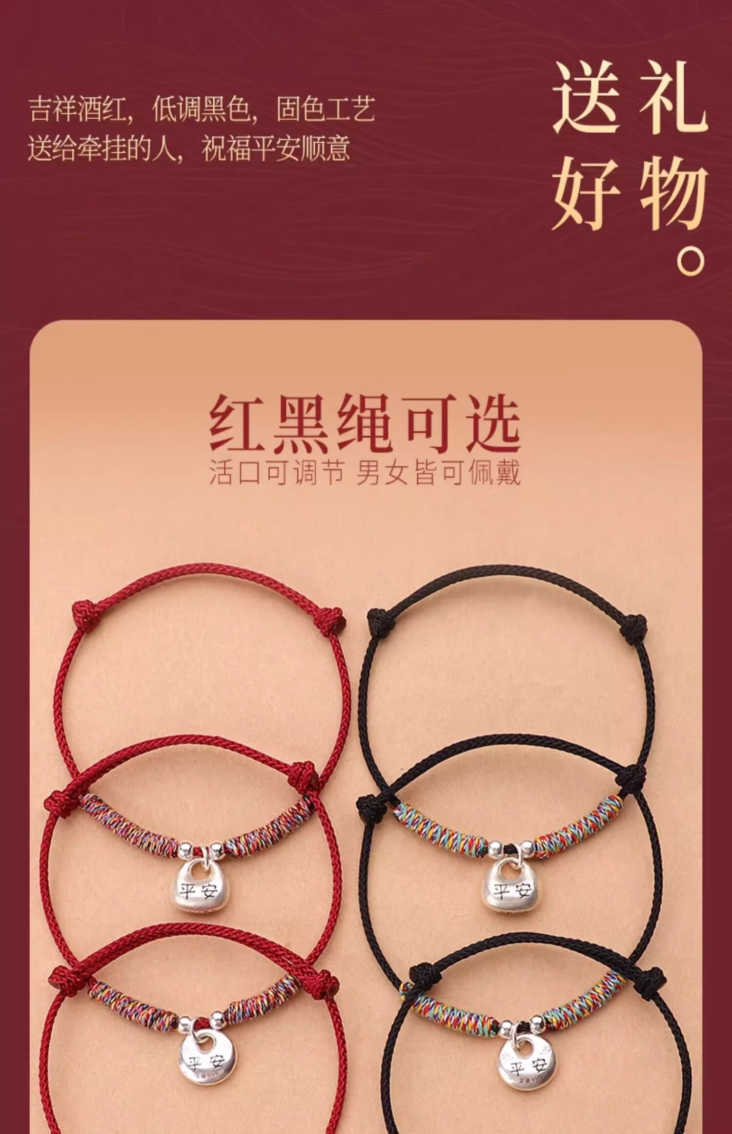 银坨坨实心足银999平安小胖福袋红绳本命年手绳银手链送女友礼物 实心银坨手绳-酒红色