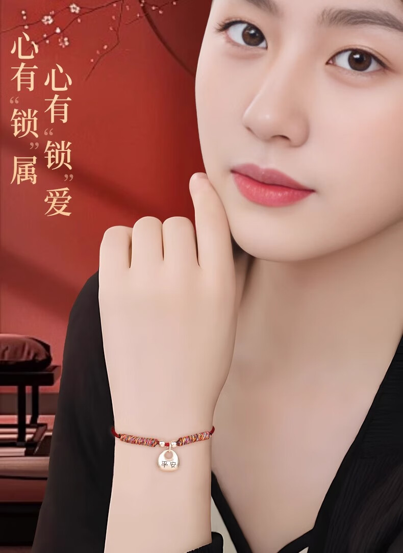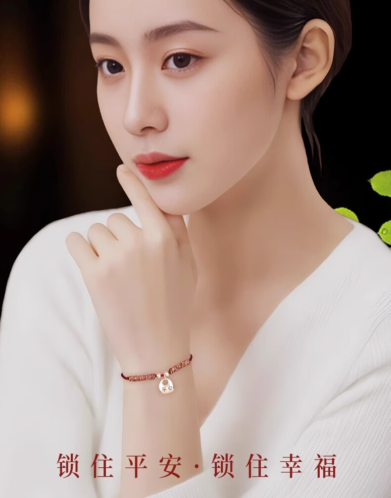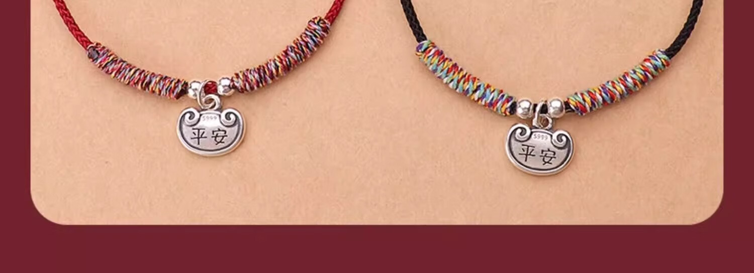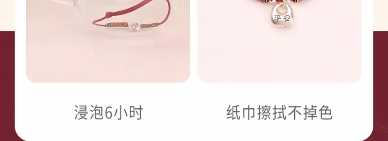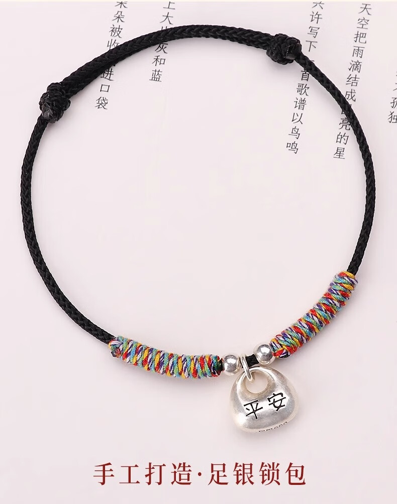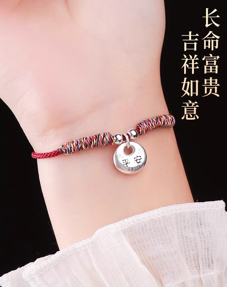 银坨坨实心足银999平安小胖福袋红绳本命年手绳银手链送女友礼物 实心银坨手绳-酒红色