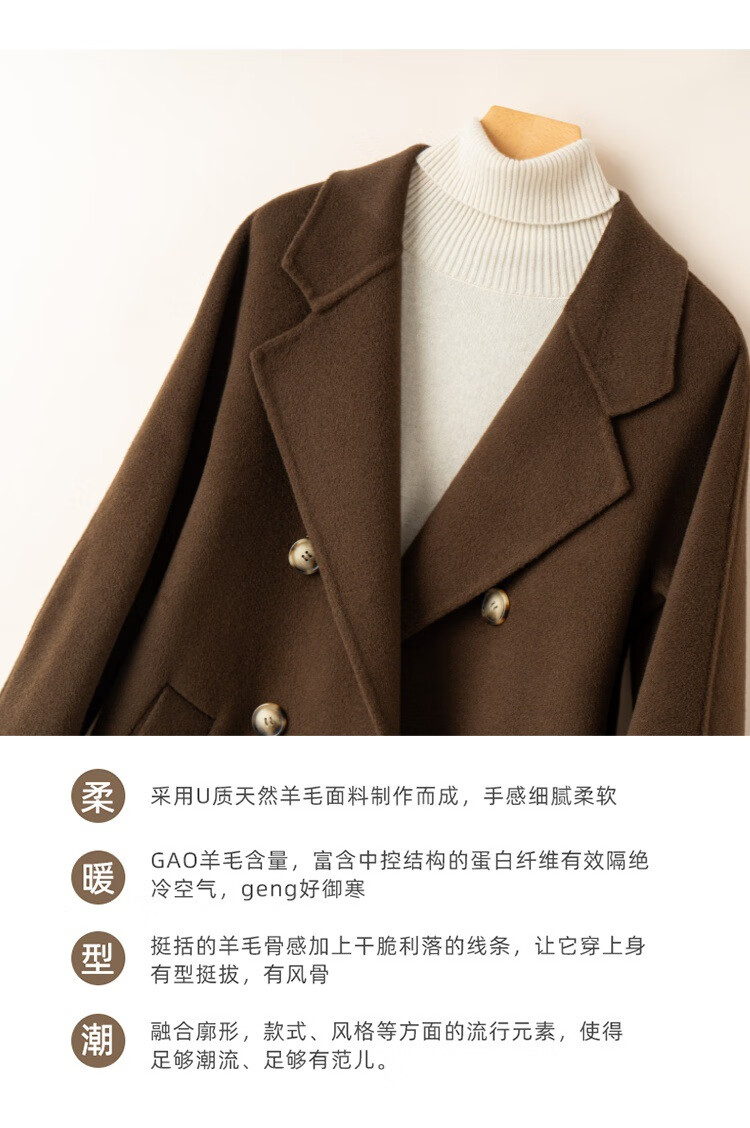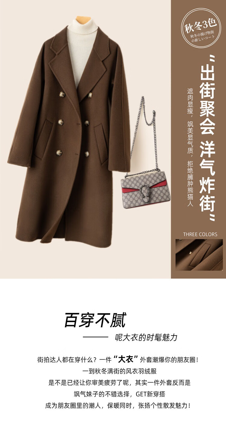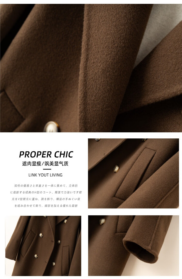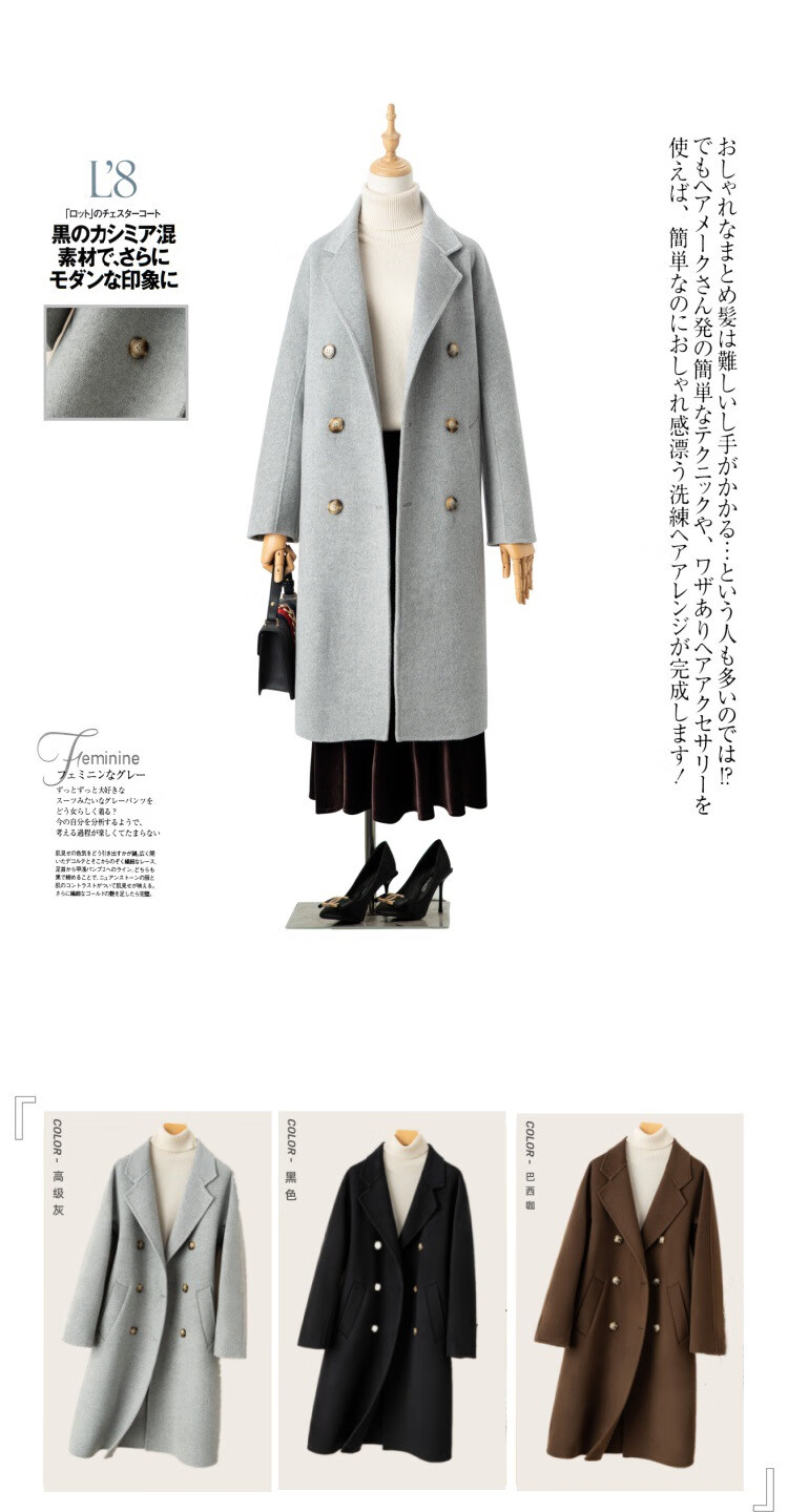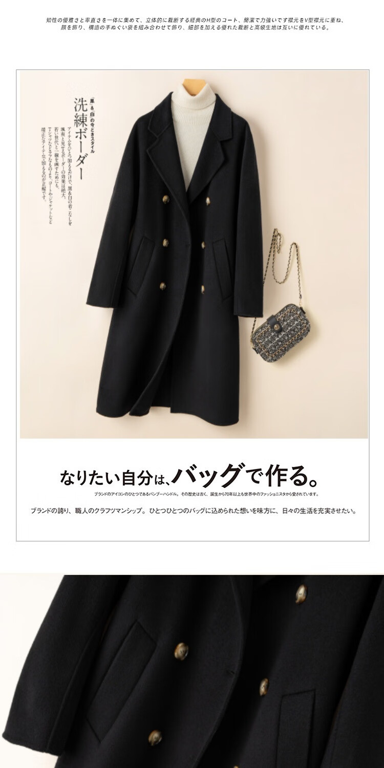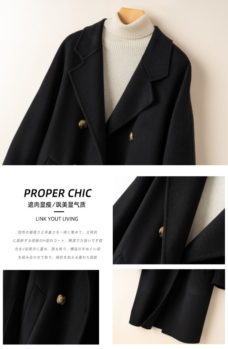 秋冬新款双面羊毛大衣女中长款慵懒风宽松过膝双面羊毛呢外套 黑色【219】 XL