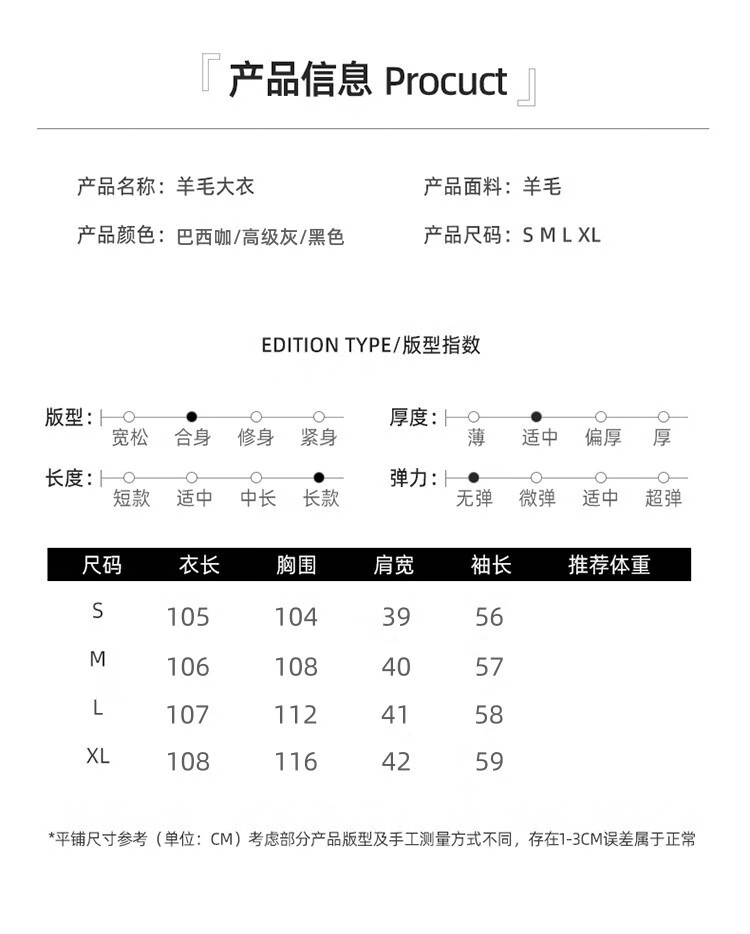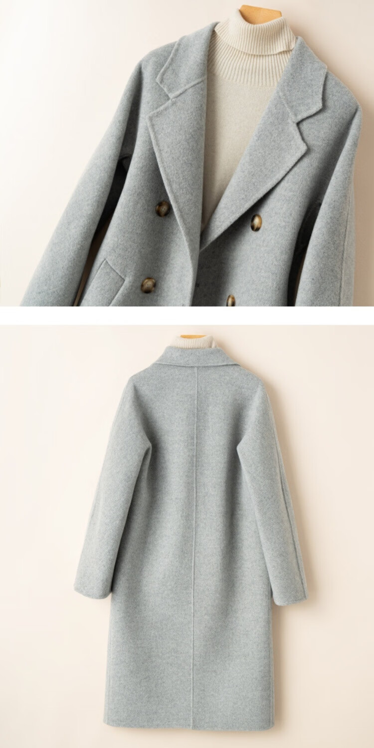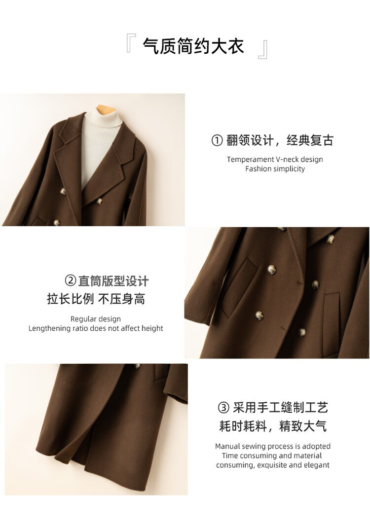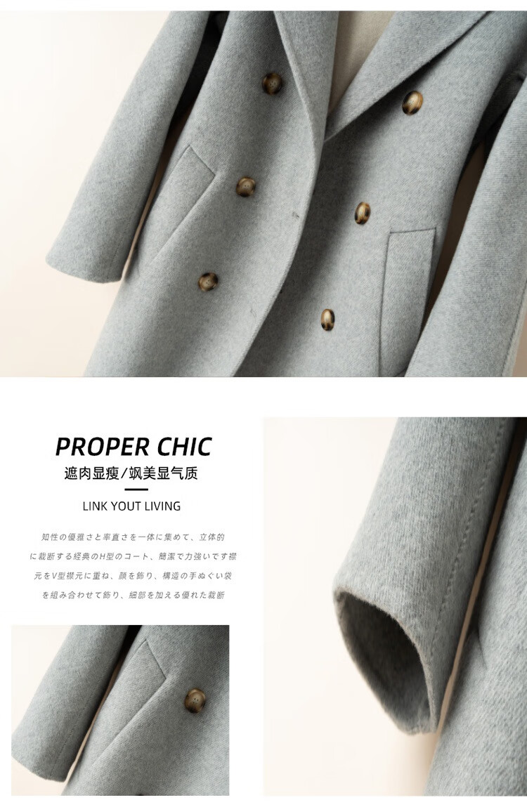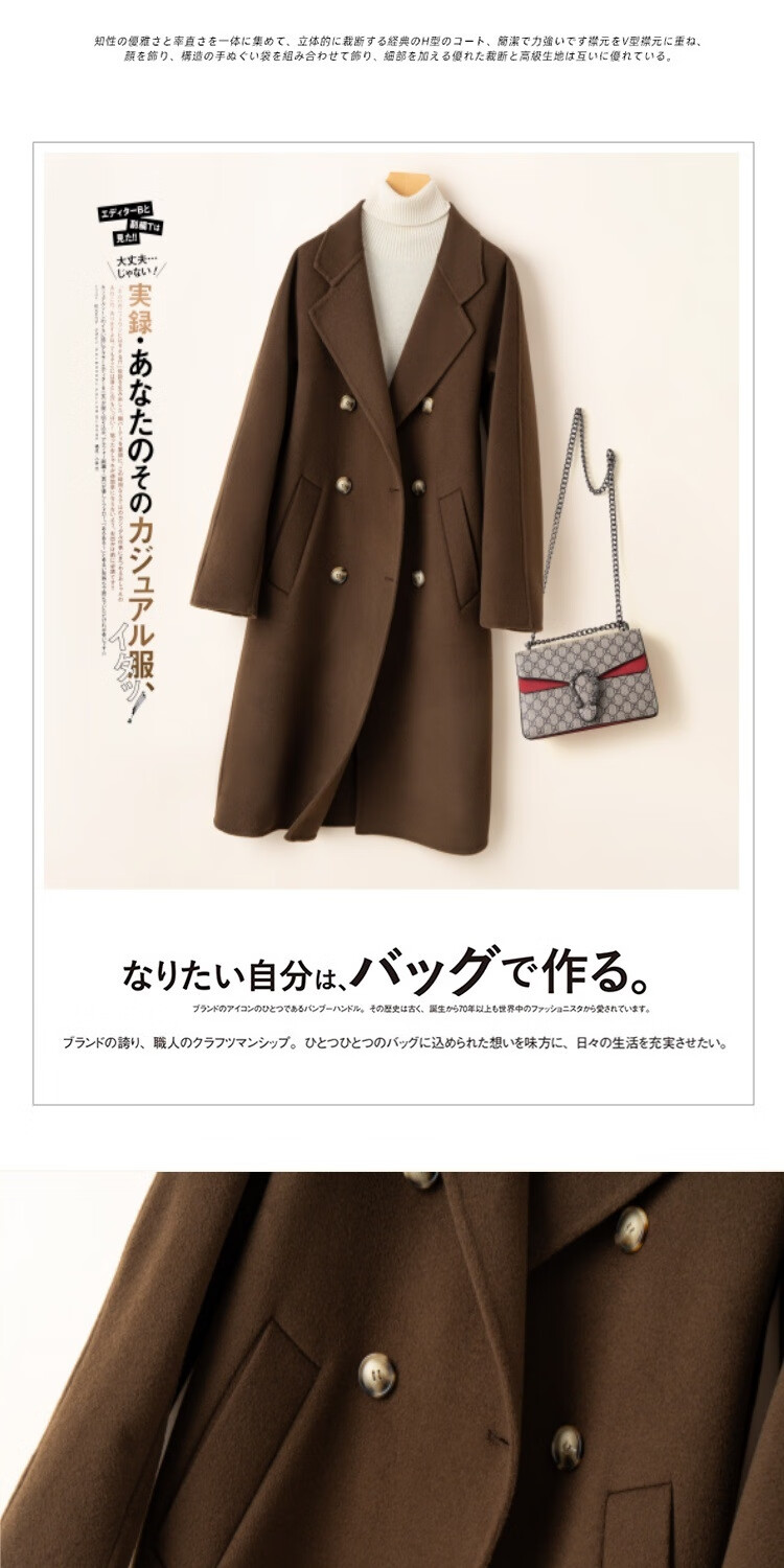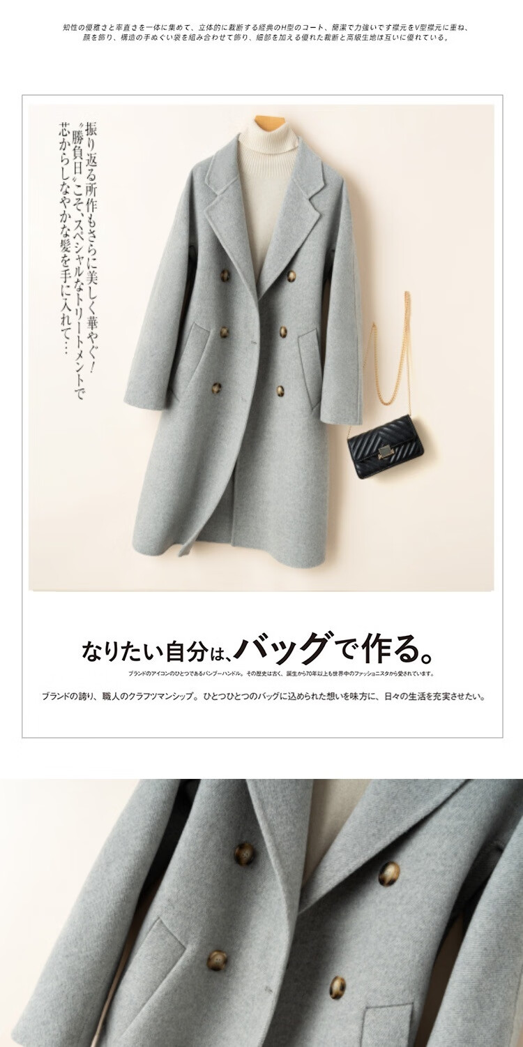 秋冬新款双面羊毛大衣女中长款慵懒风宽松过膝双面羊毛呢外套 黑色【219】 XL