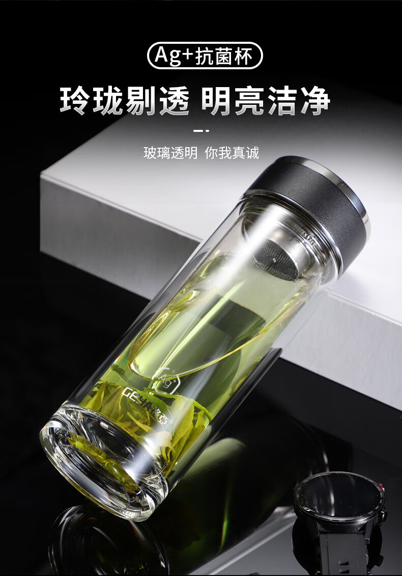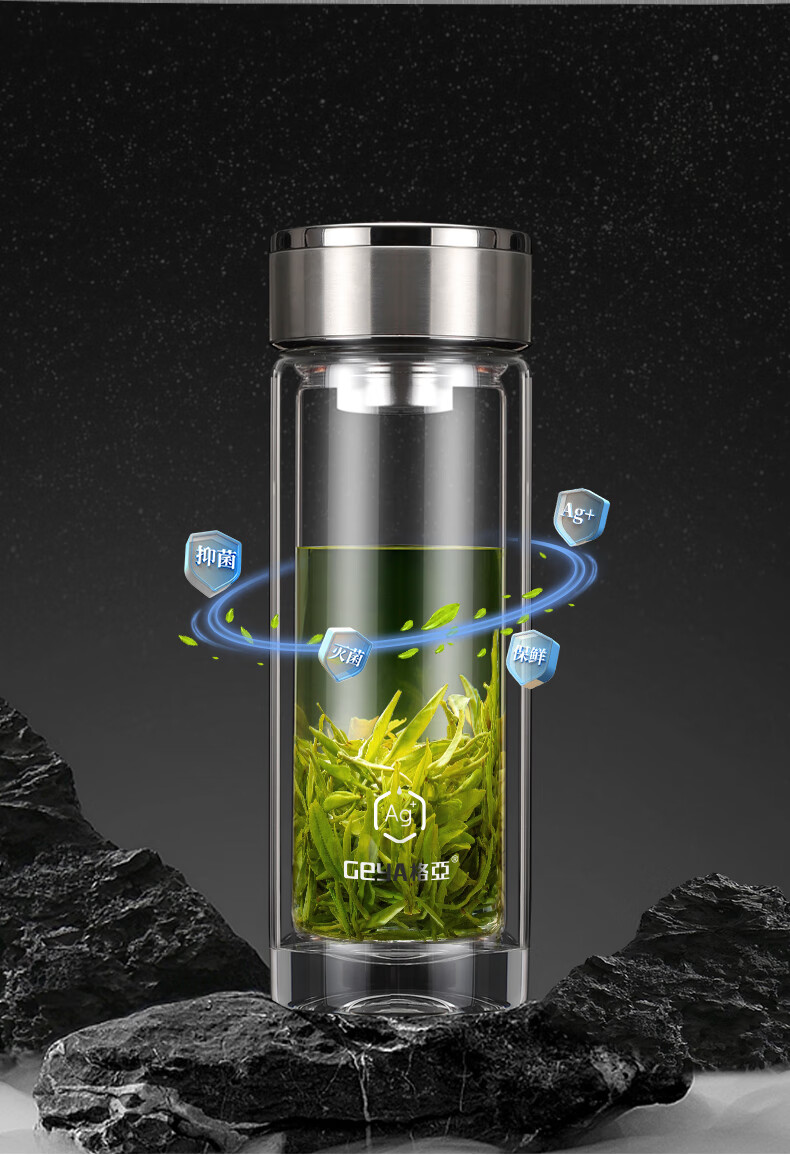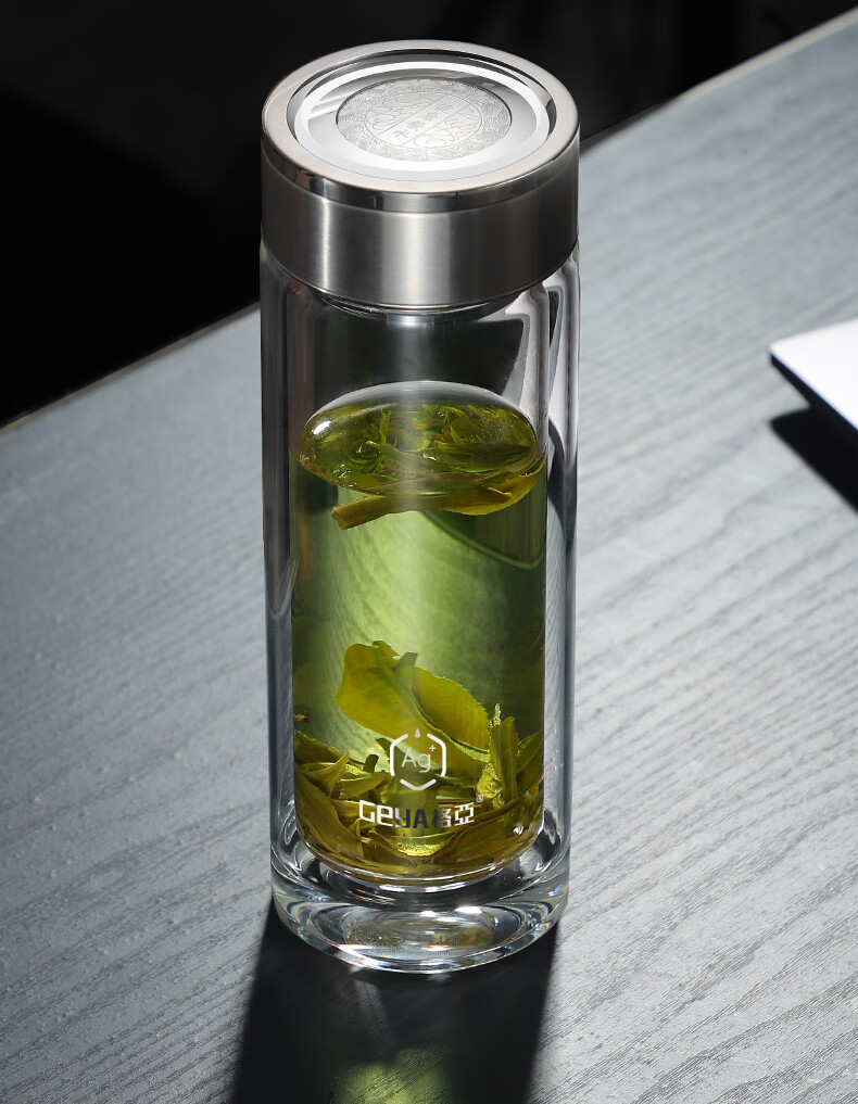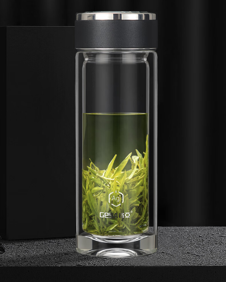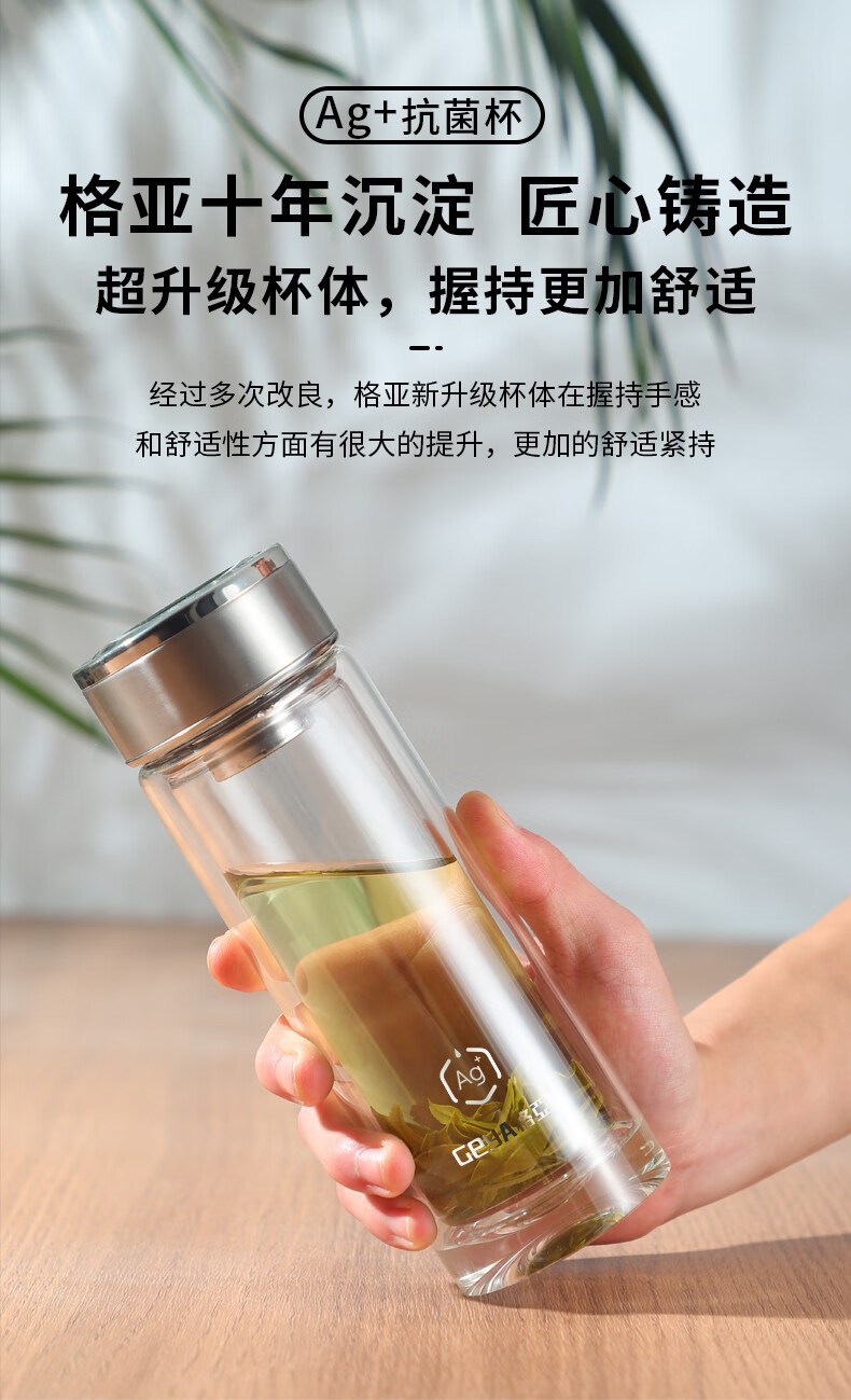 格亚(GEYA)Ag+银离子抗菌玻璃杯高档双层玻璃茶杯养生杯泡茶玻璃水杯子礼盒 银色380ml