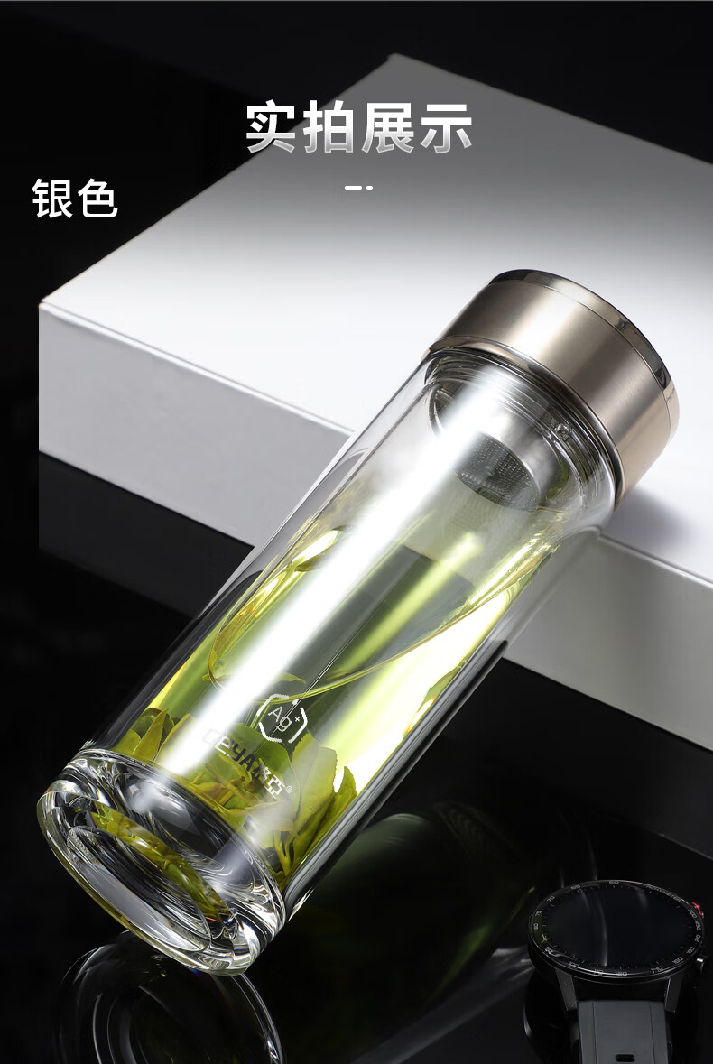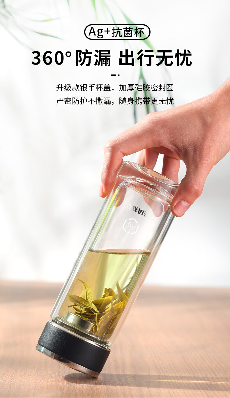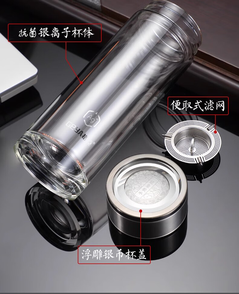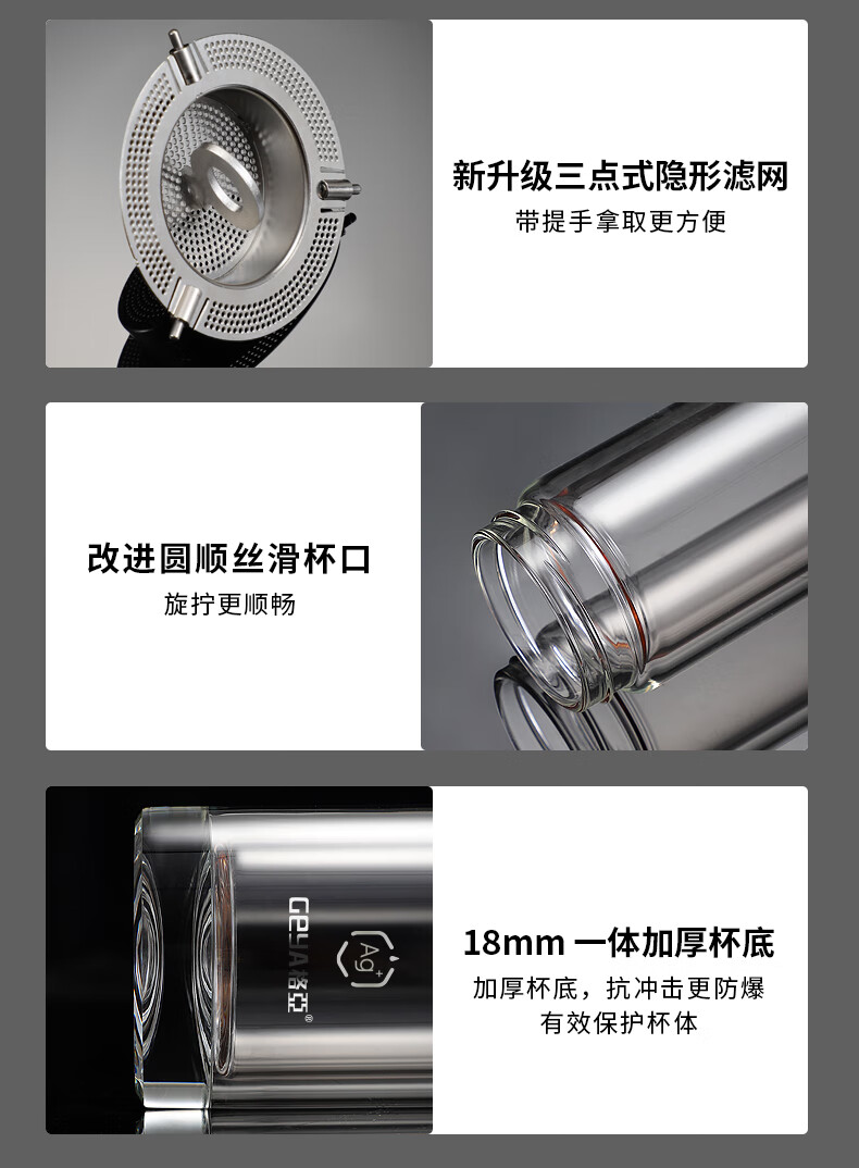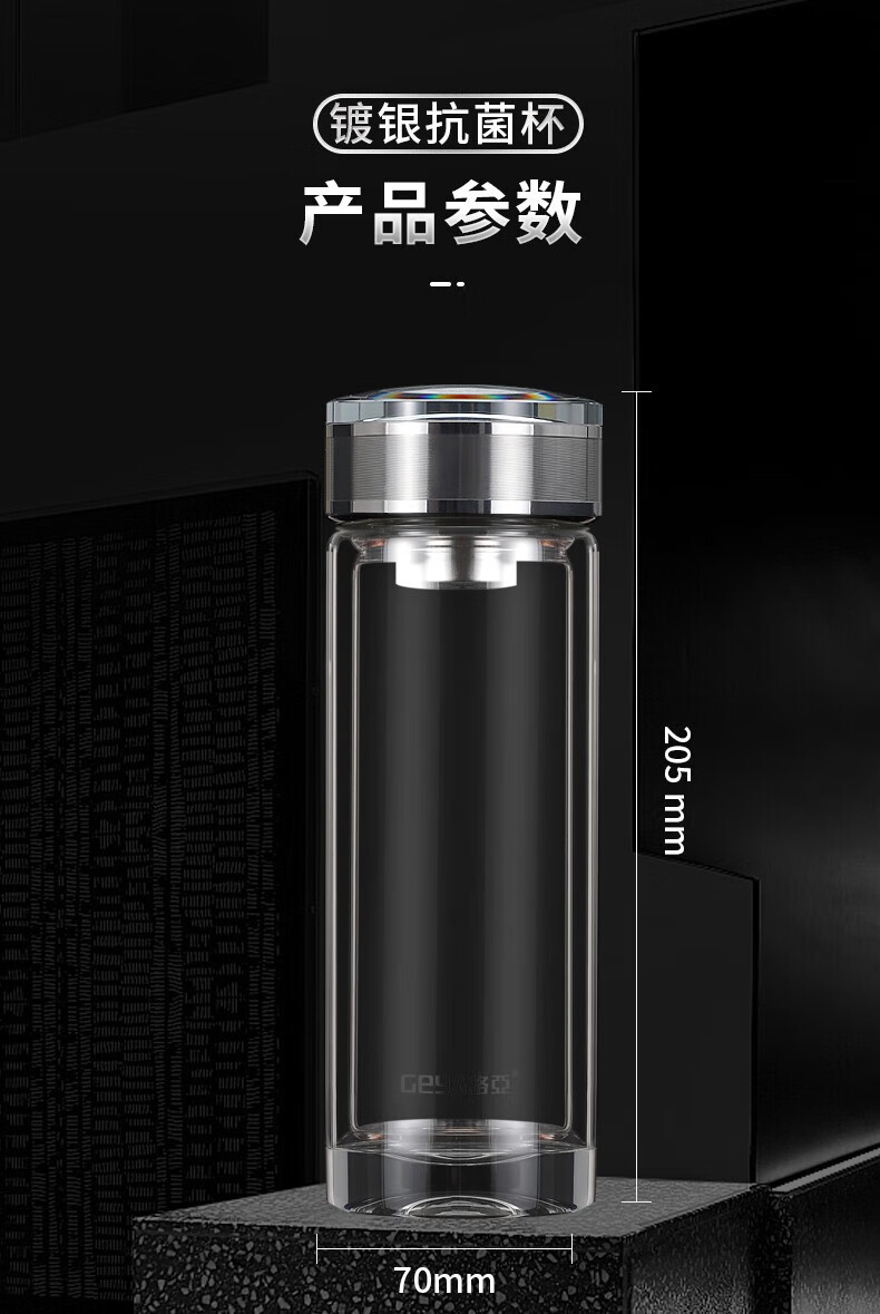 格亚(GEYA)Ag+银离子抗菌玻璃杯高档双层玻璃茶杯养生杯泡茶玻璃水杯子礼盒 银色380ml