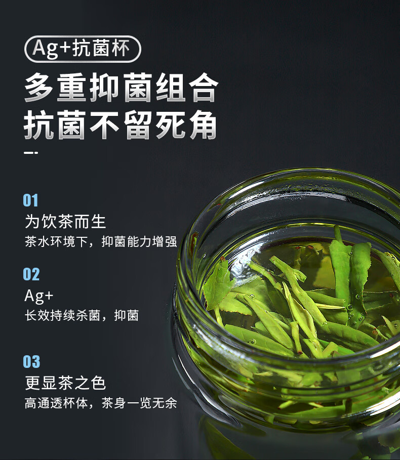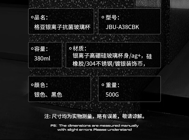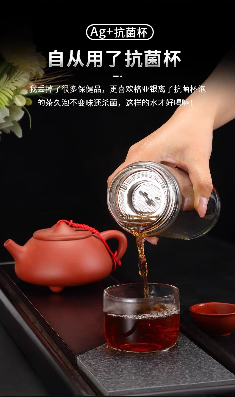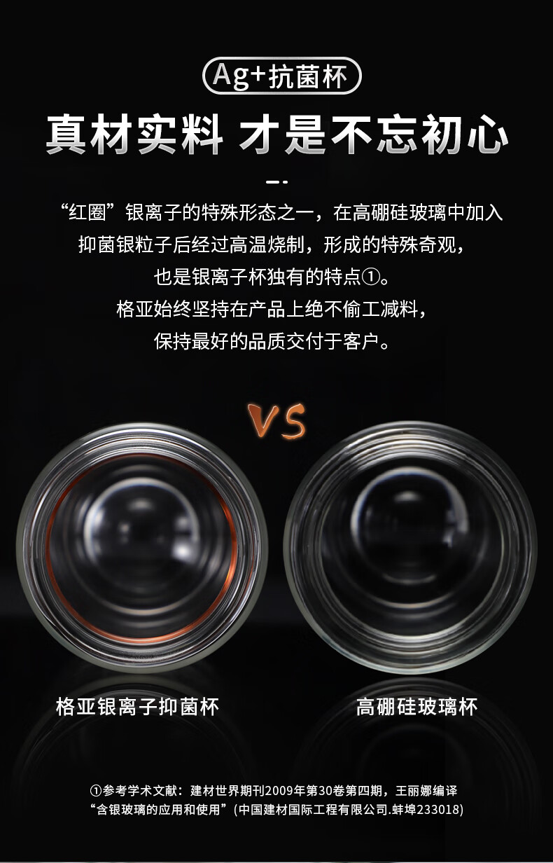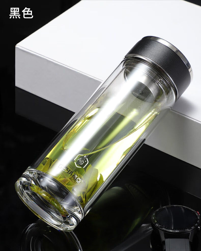 格亚(GEYA)Ag+银离子抗菌玻璃杯高档双层玻璃茶杯养生杯泡茶玻璃水杯子礼盒 银色380ml