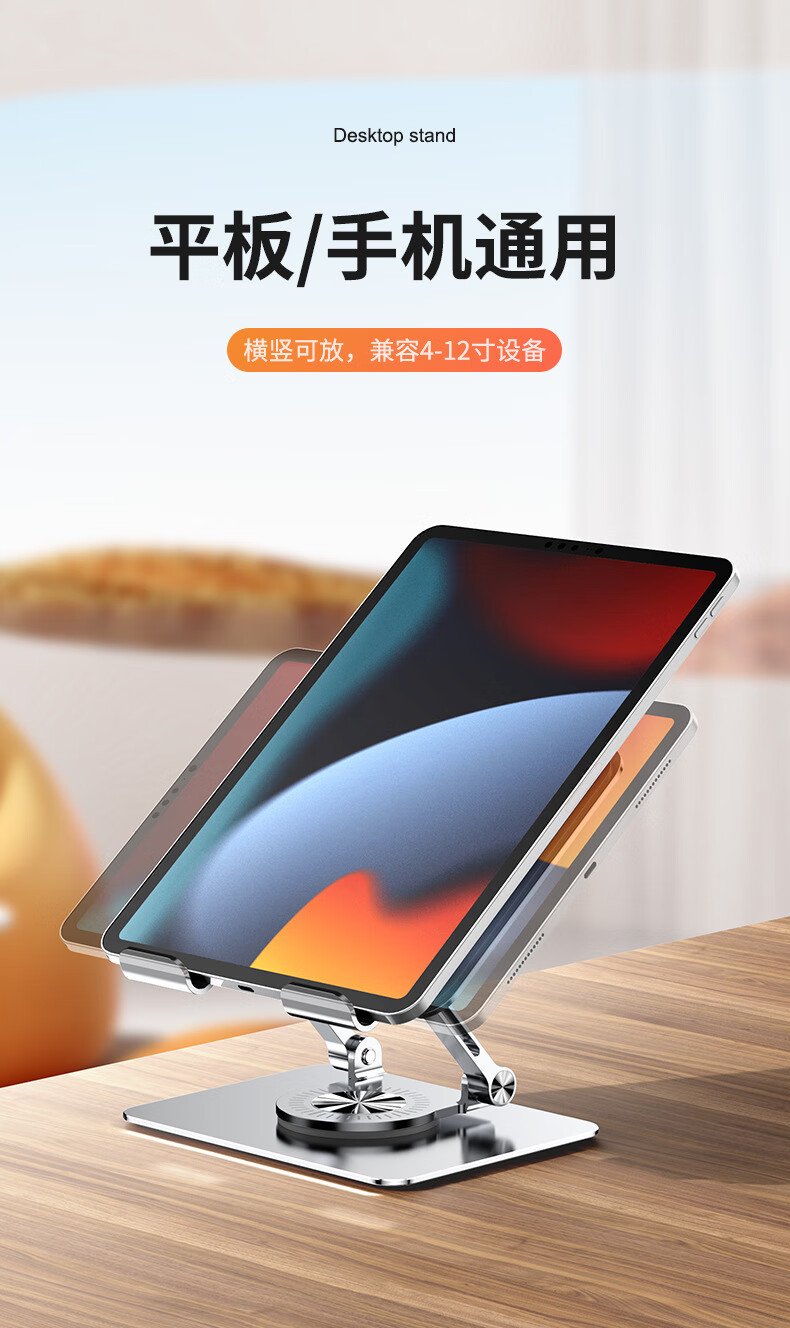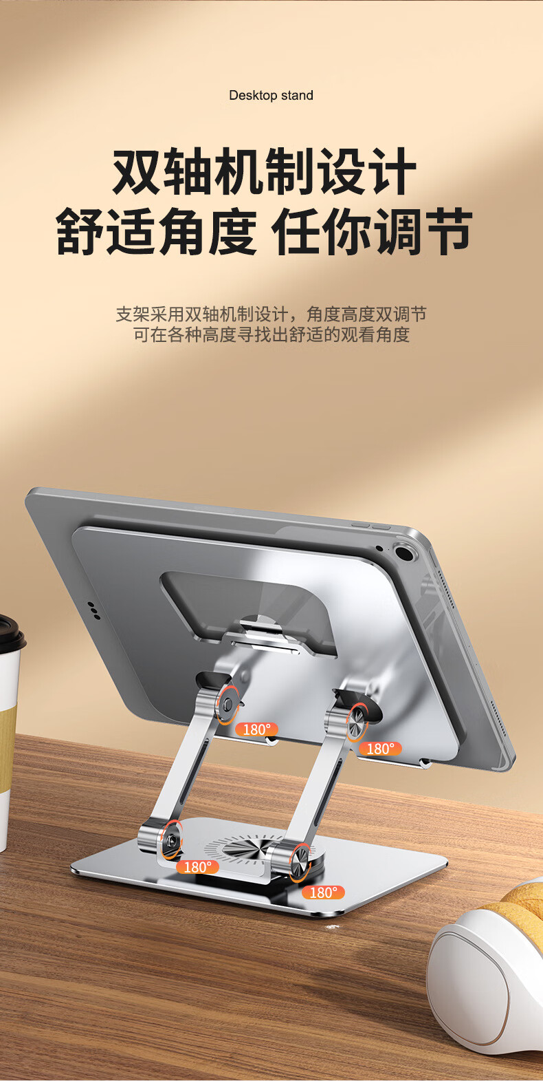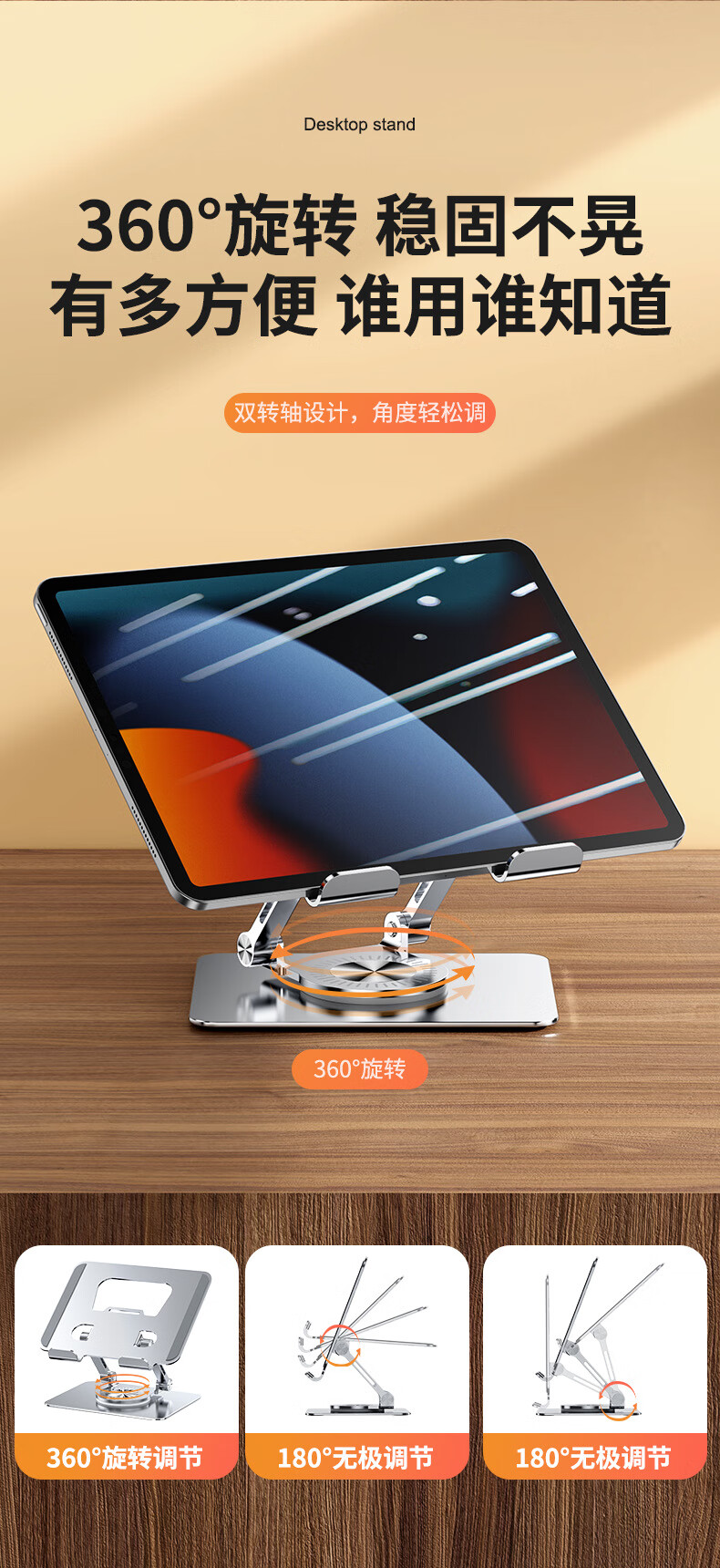 【优选好物】平板支架便携镂空铝合金360度可旋转懒人专用桌面ipa 灰色【不可旋转+合金钢材质】