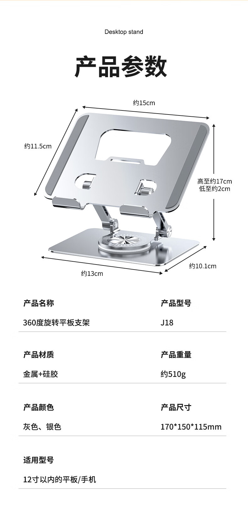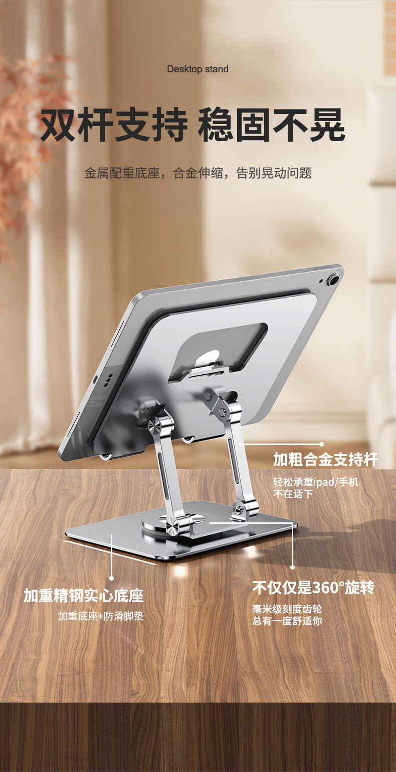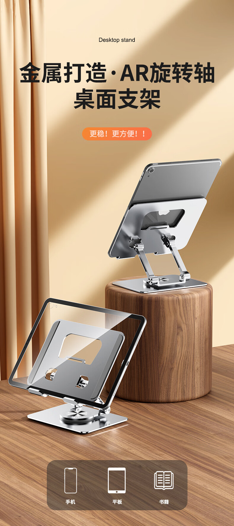【优选好物】平板支架便携镂空铝合金360度可旋转懒人专用桌面ipa 灰色【不可旋转+合金钢材质】