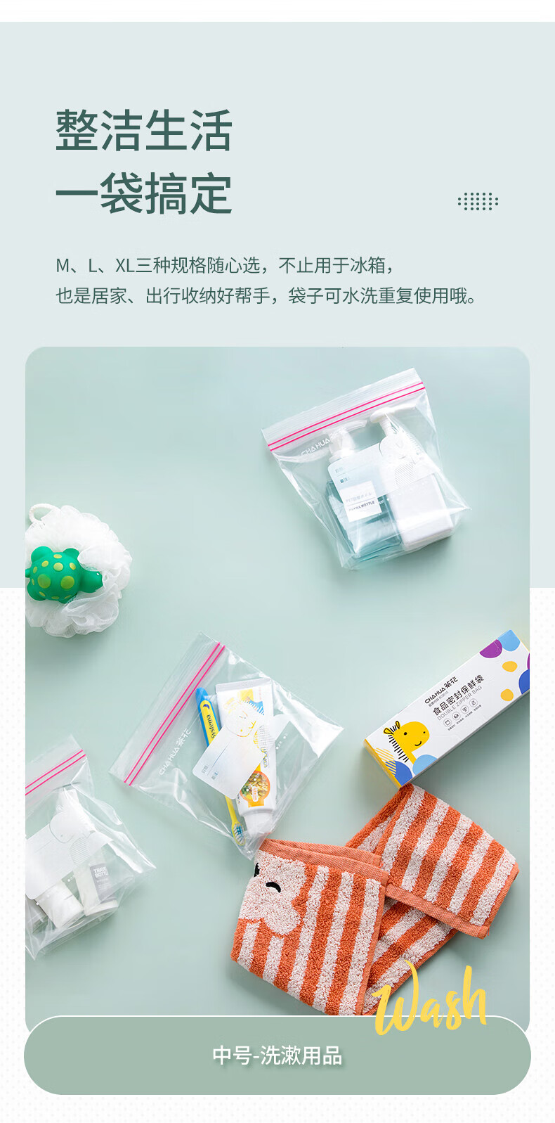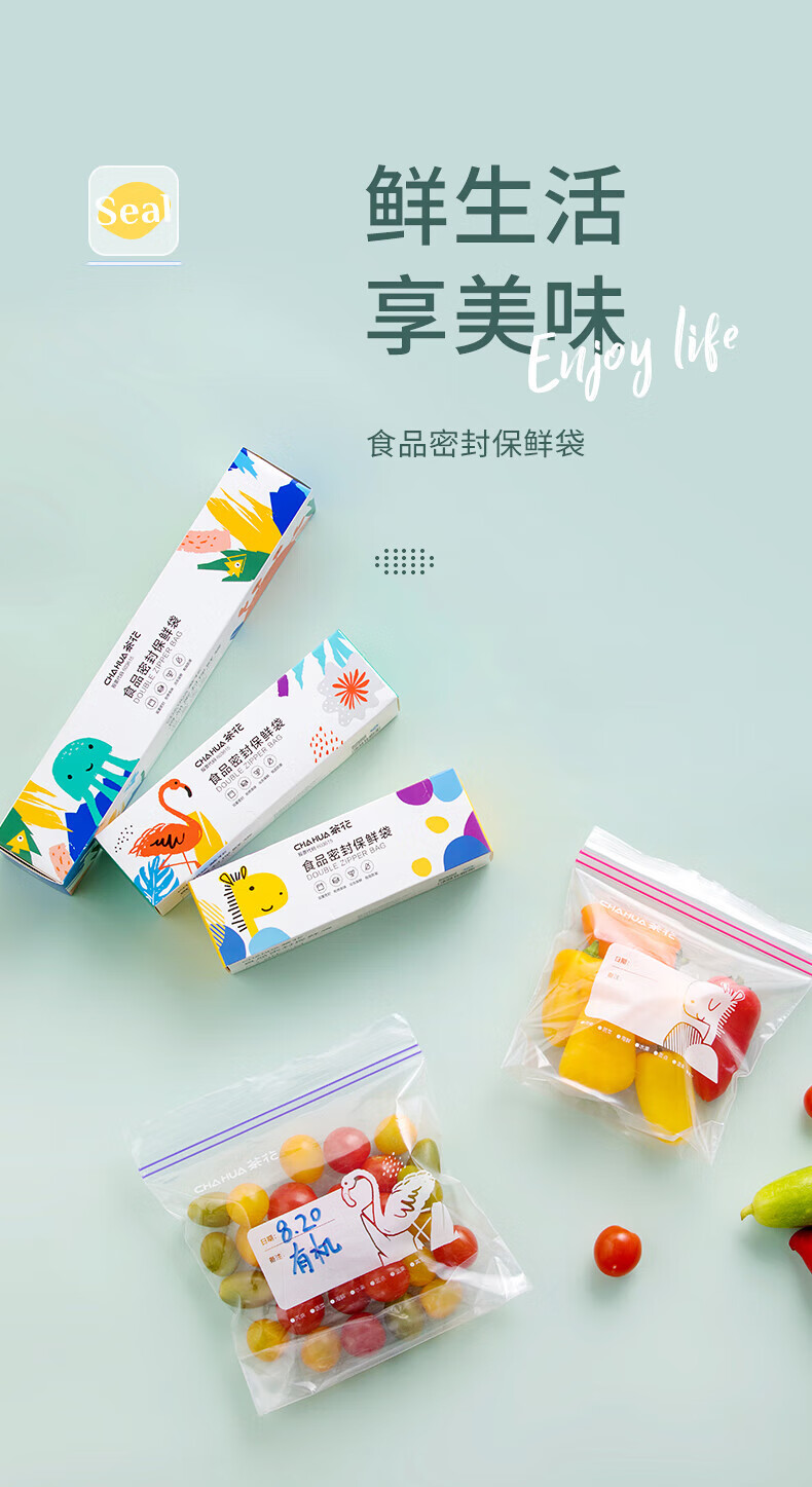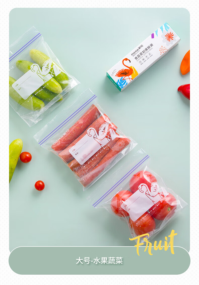 CHAHUA食品密封袋收纳分装双筋密实袋冷冻透明保鲜袋16*12.5cm 30只盒装