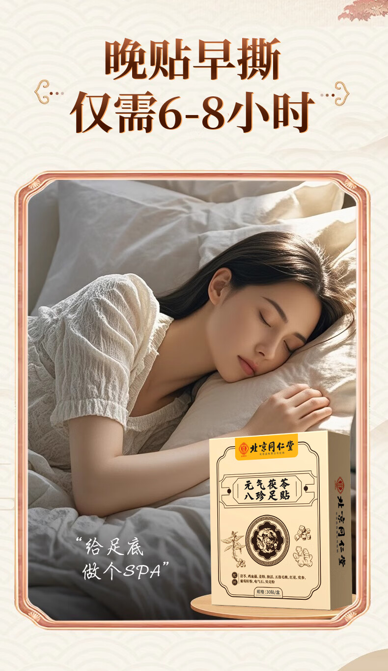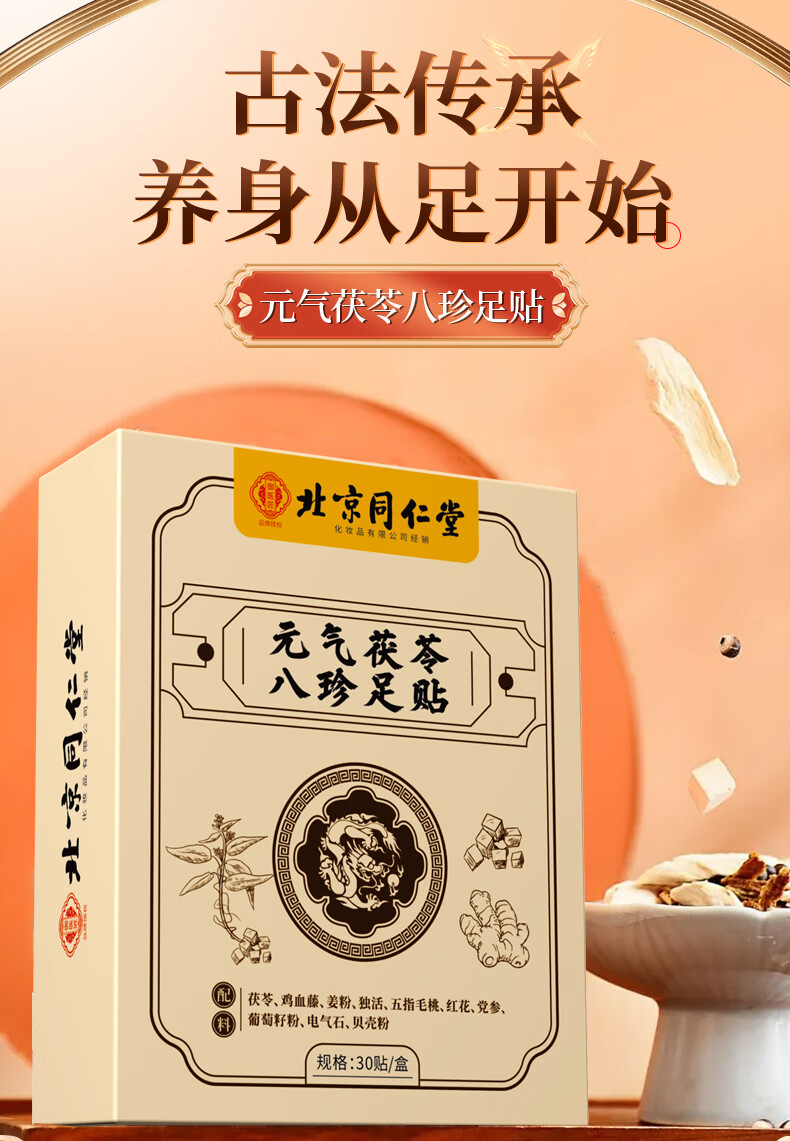 同仁堂元气八珍茯苓足贴老北京穴位湿气贴排体湿寒艾草贴助睡眠贴脚贴 同仁堂元气茯苓八珍足贴30贴*2盒