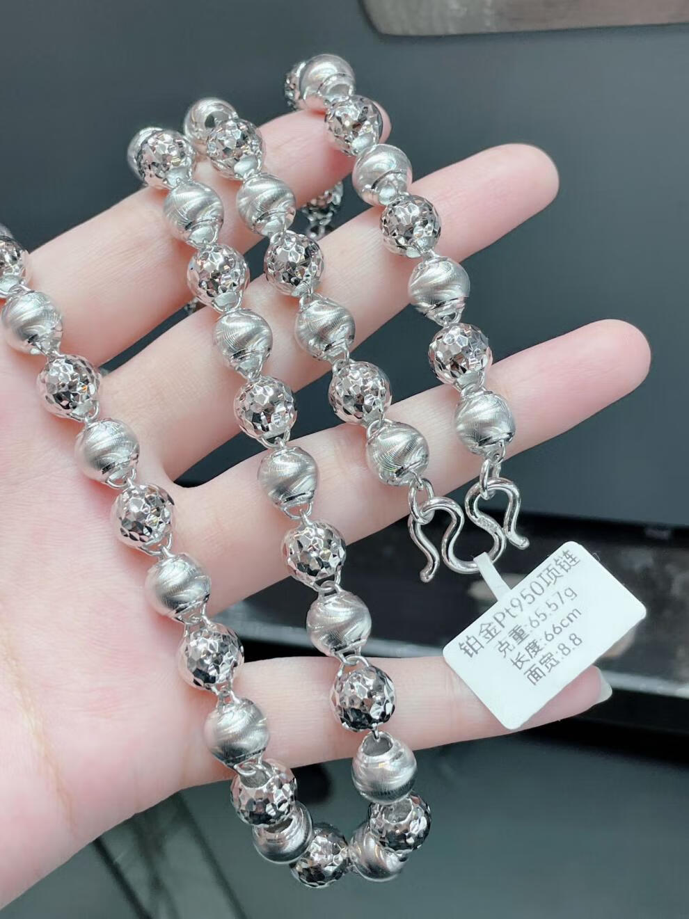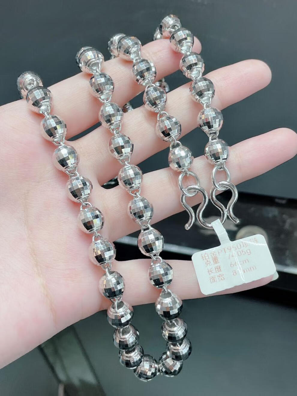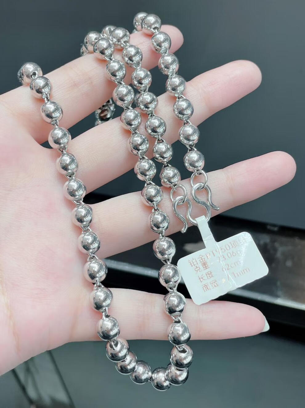 胖东来同款男士项链铂金水贝男pt950白金简约个性光珠 按克卖,定金链接,选款计价改价