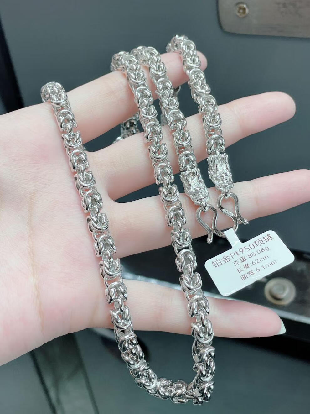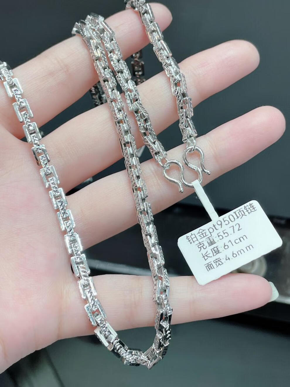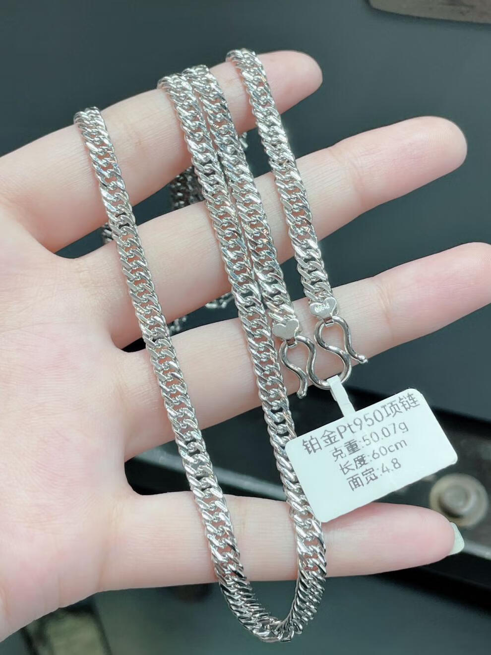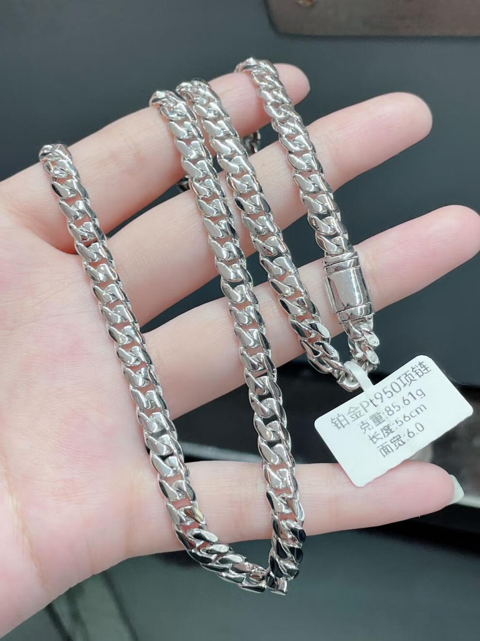 胖东来同款男士项链铂金水贝男pt950白金简约个性光珠 按克卖,定金链接,选款计价改价