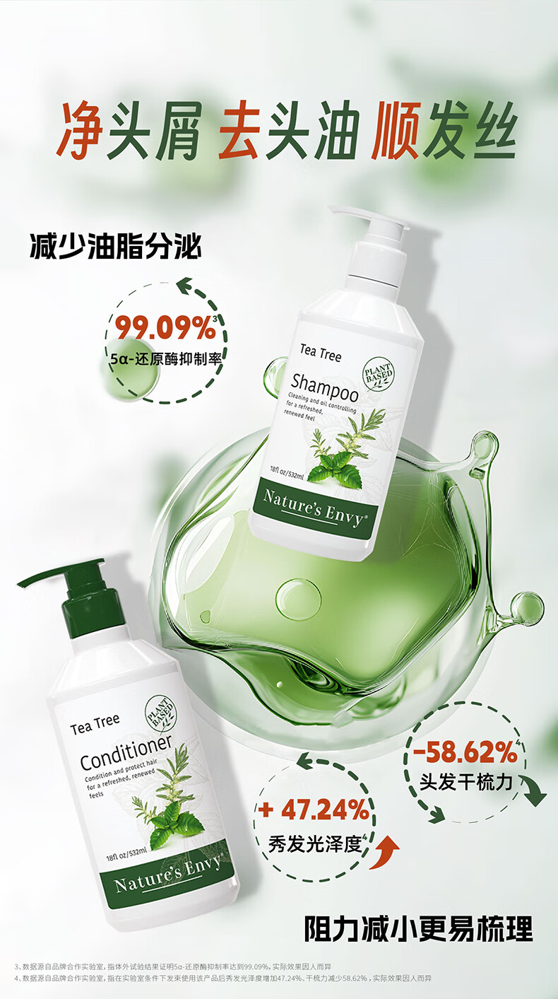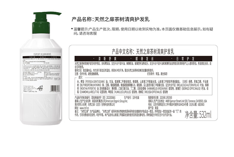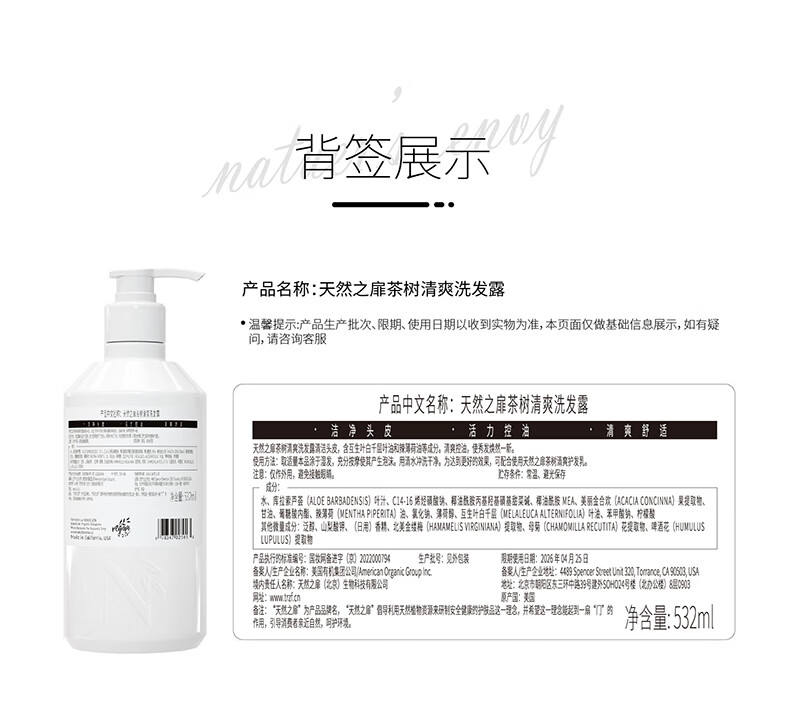 天然之扉 茶树清爽控油去屑薄荷清爽洗发露男女头皮清洁洗头水护发乳532ml 茶树清爽洗发露 532ml