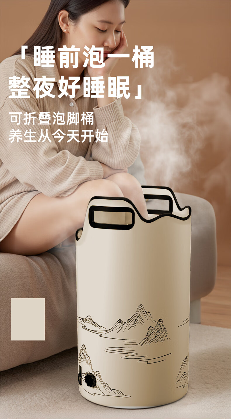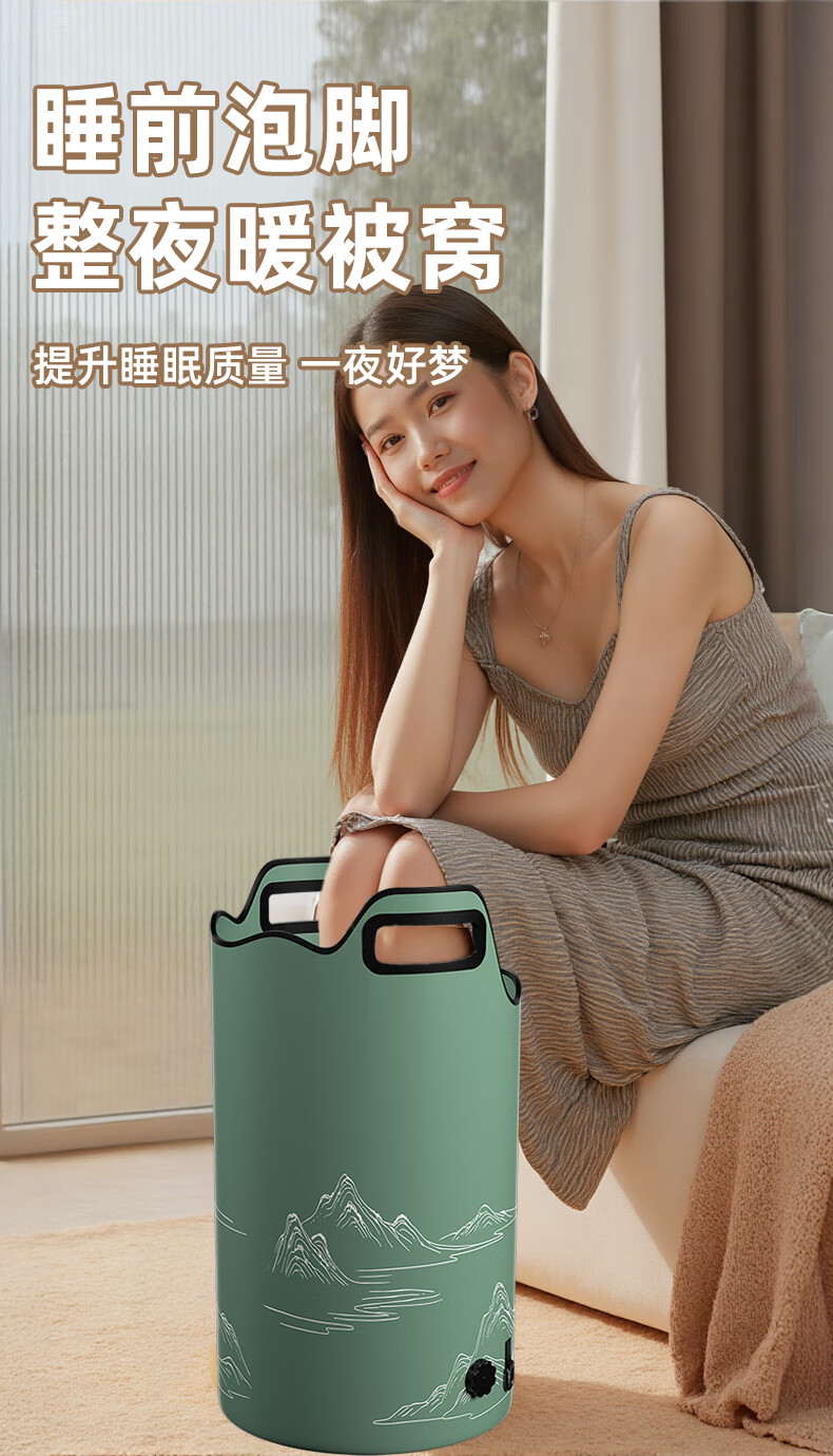 倍呵泡脚桶保温过小腿家用足浴桶便携式可折叠泡脚盆深桶暖脚秋冬养生 【绿色】SAP温感式折叠足浴桶高47c 20L 秋冬足浴泡脚神器