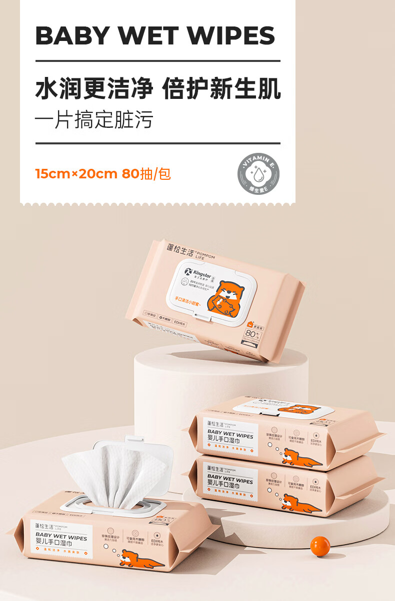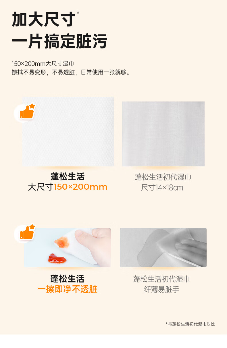蓬松生活EDI纯水一次性湿巾 大包珍珠纹大尺寸 擦手护理产妇湿巾 蓝色经典款 80抽10包