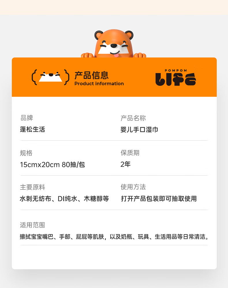 蓬松生活产妇日常护理湿巾家用大包婴儿擦屁屁专用湿纸巾儿童清洁母婴用品 【经典款】蓝色80抽/包*10包