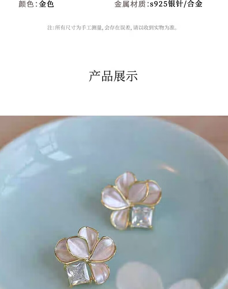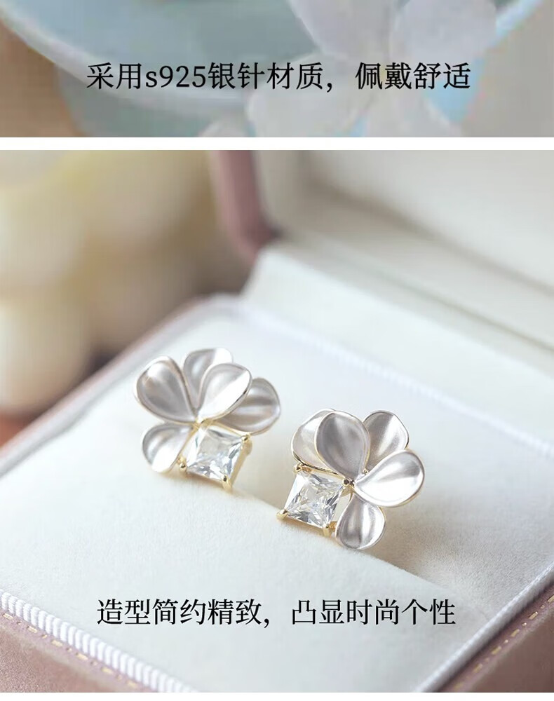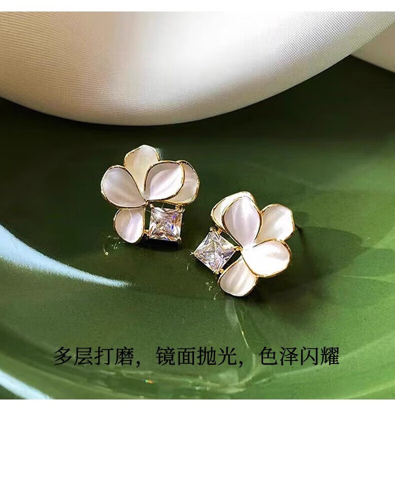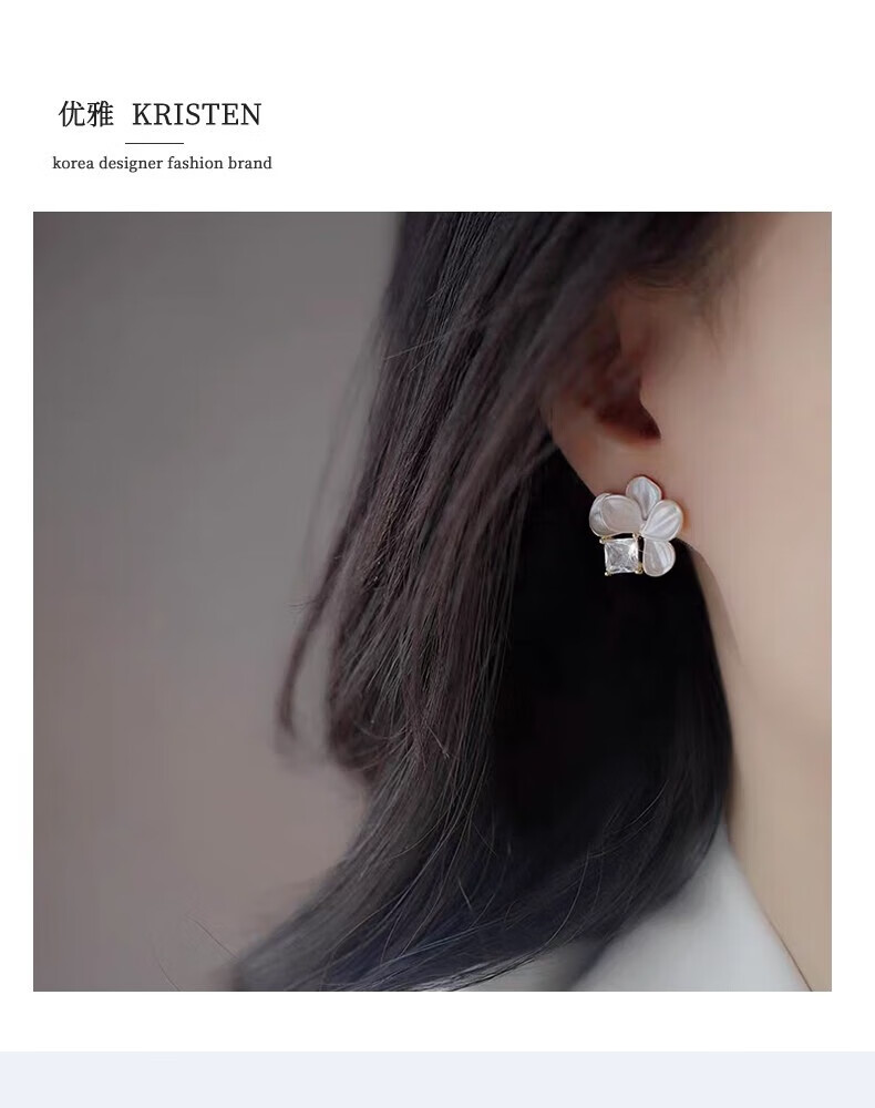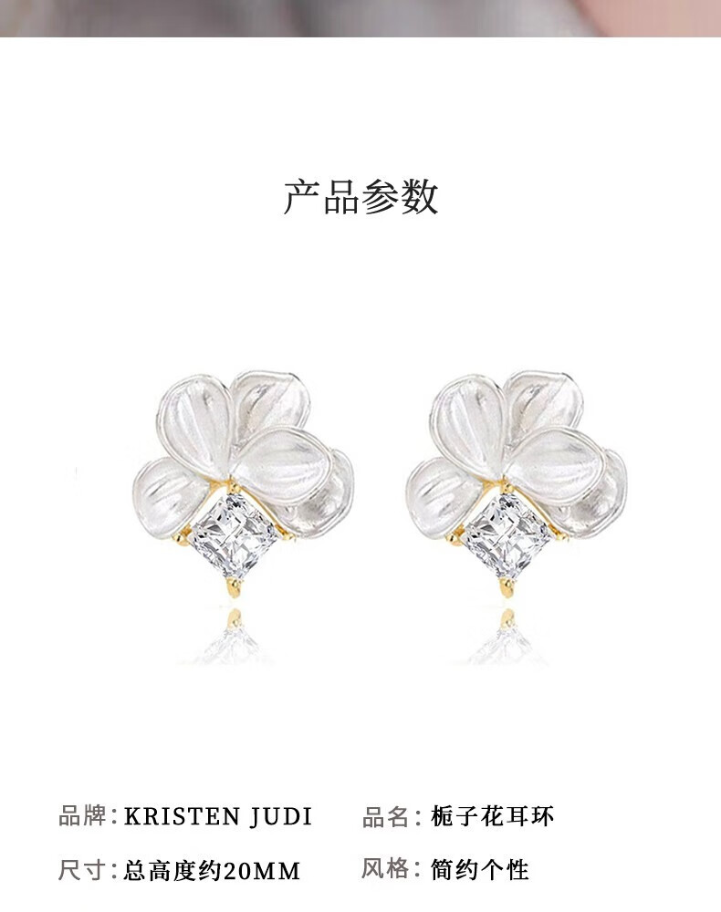 KRISTEN JUDI仙气甜美白色花朵耳环女银针闪耳钉花瓣耳饰度假风无耳洞耳夹礼物 耳针款-女友老婆闺蜜生日礼盒 金色纪念日礼盒包装