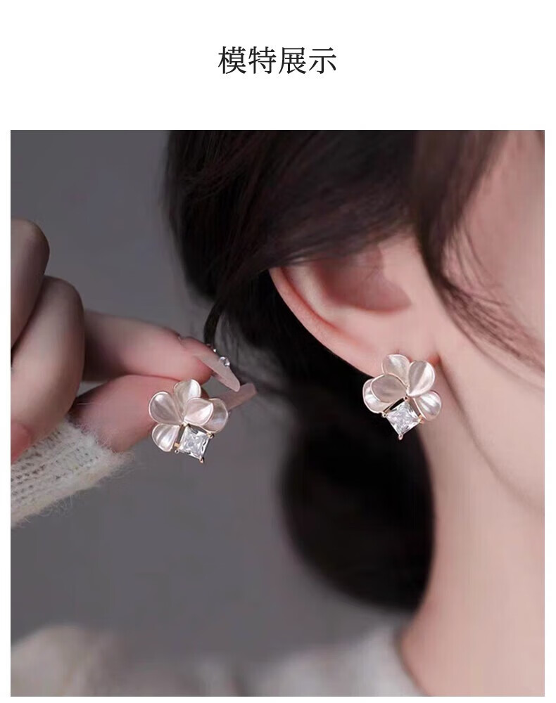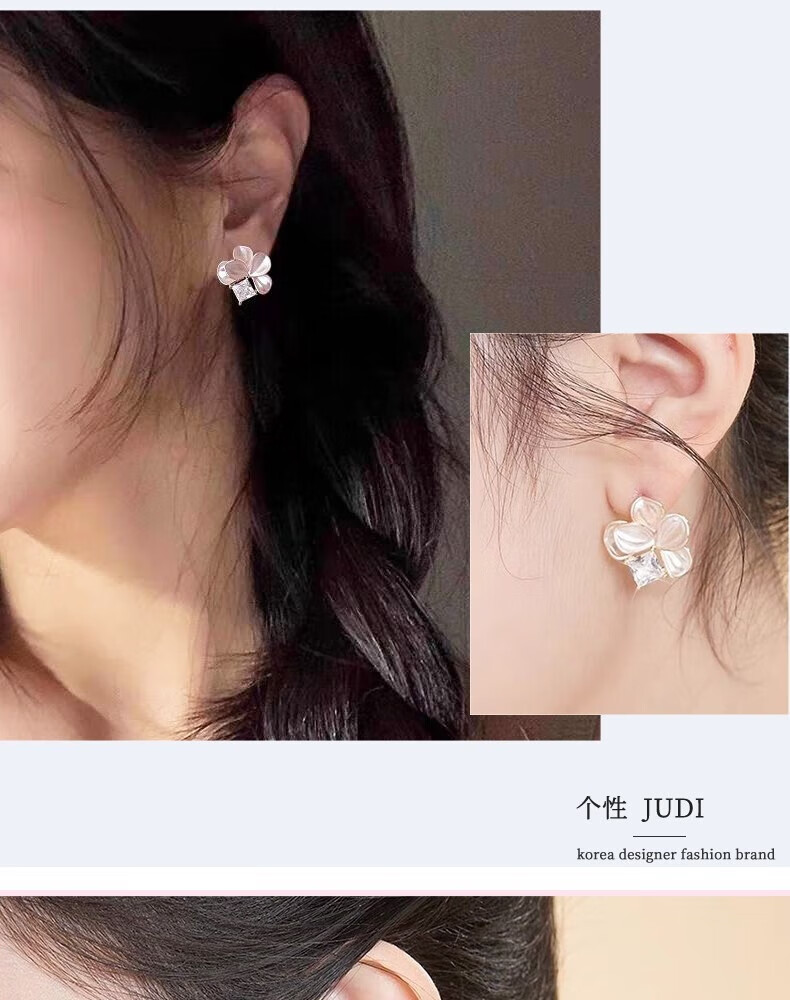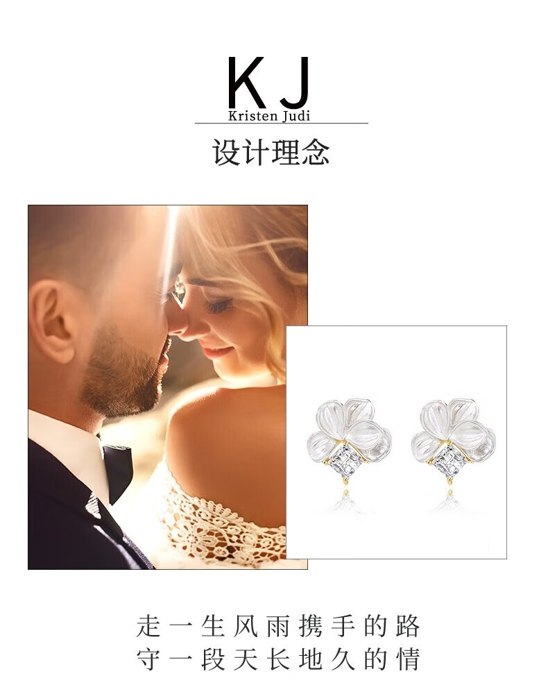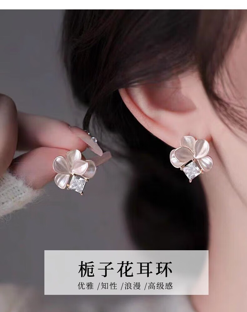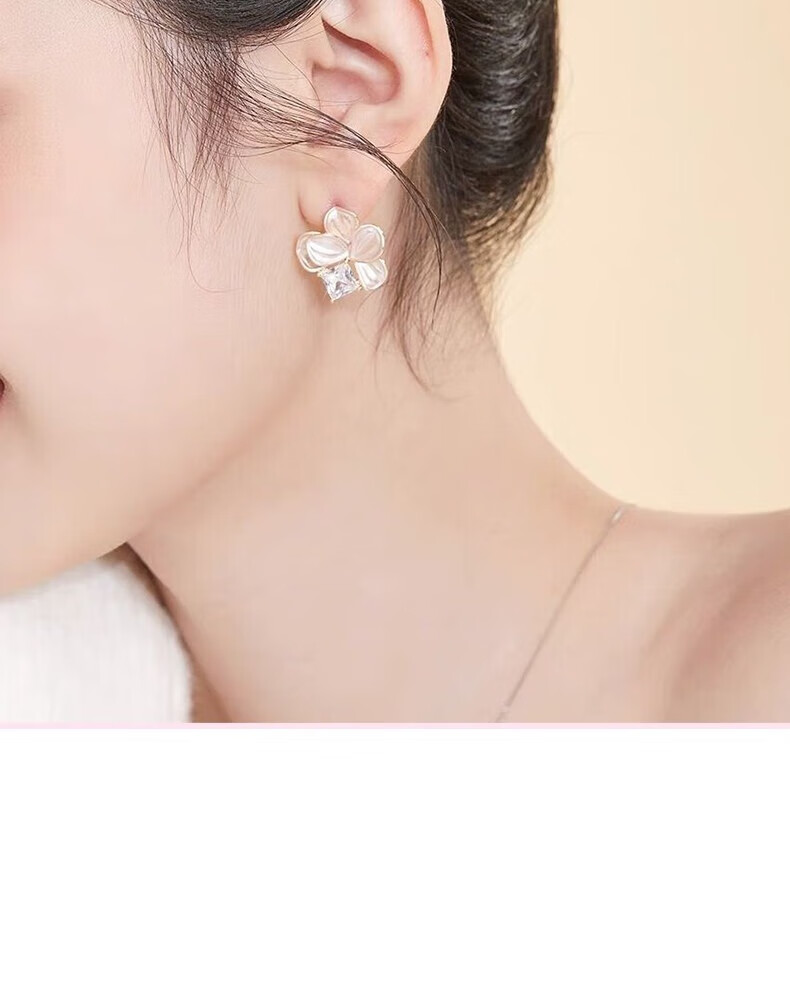 KRISTEN JUDI仙气甜美白色花朵耳环女银针闪耳钉花瓣耳饰度假风无耳洞耳夹礼物 耳针款-女友老婆闺蜜生日礼盒 金色纪念日礼盒包装