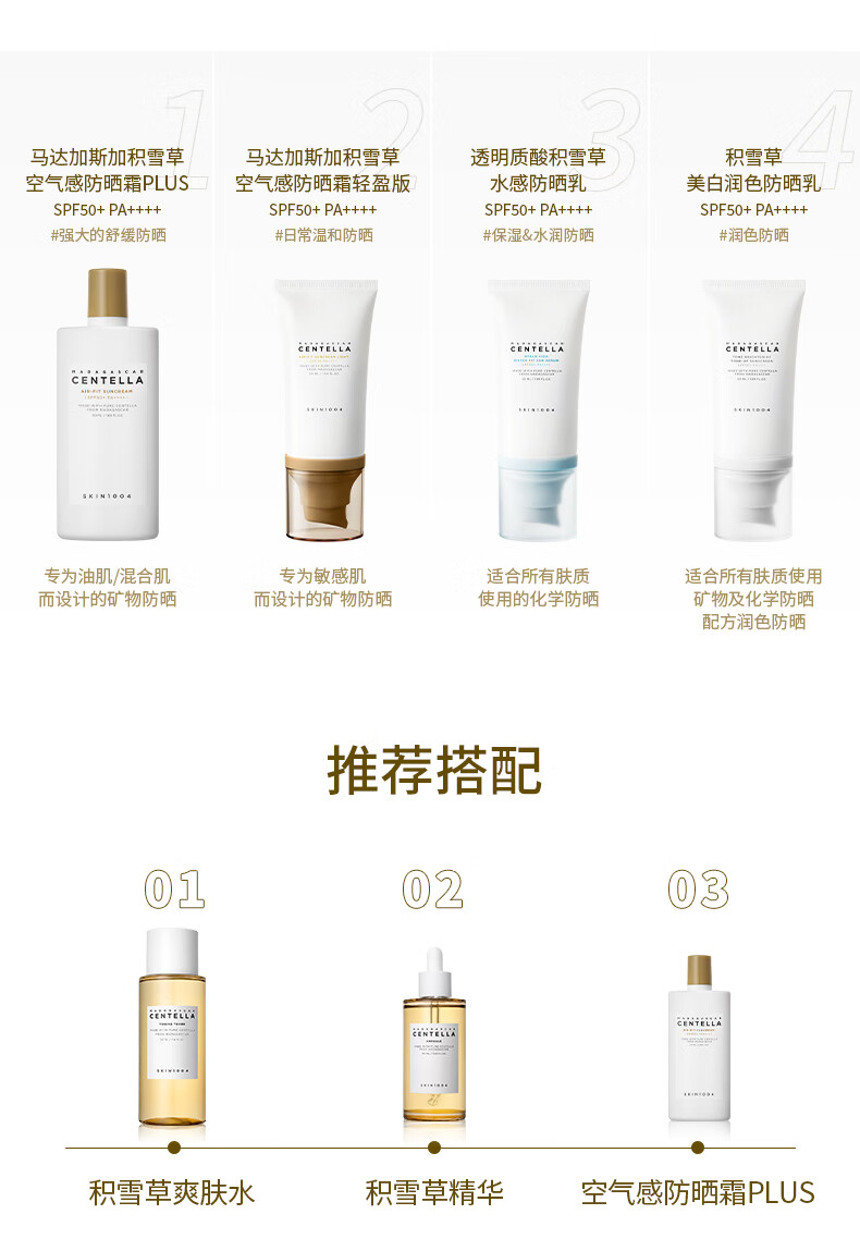 SKIN1004理肤天使 马达加斯加积雪草空气防晒霜plus 50ml