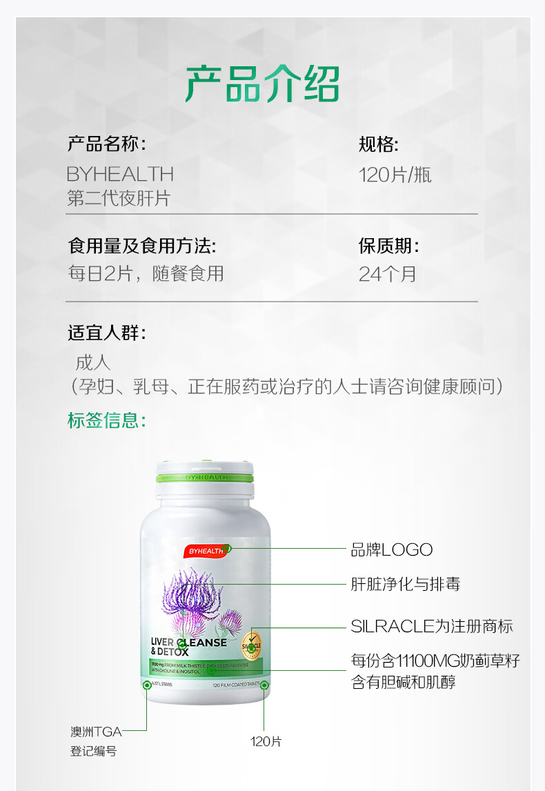 BYHEALTH汤臣倍健护肝片二代水飞蓟奶蓟草养肝净肝解酒肌醇胆碱脂肪肝保健 第2代护肝120粒+夜肝40粒【加量不加价】
