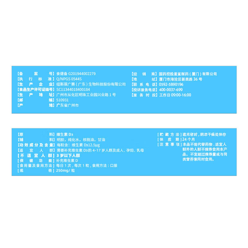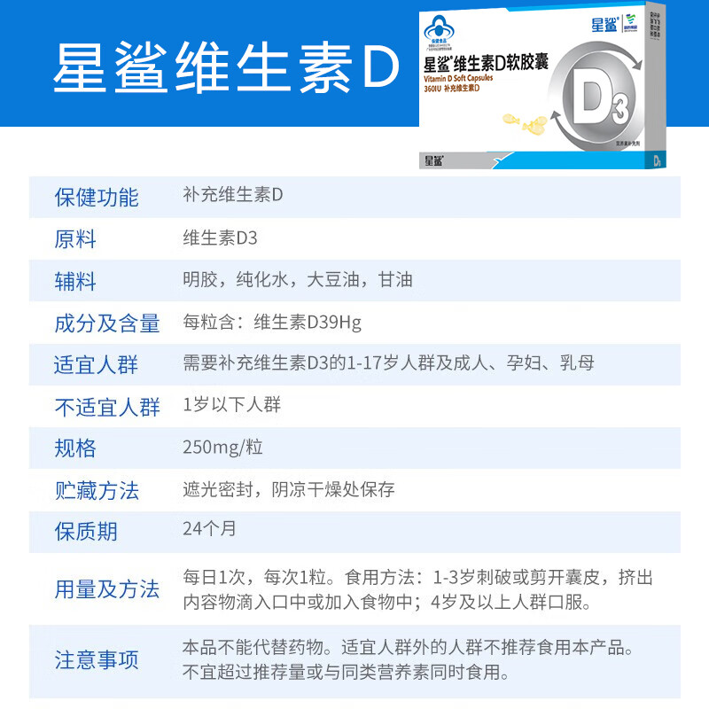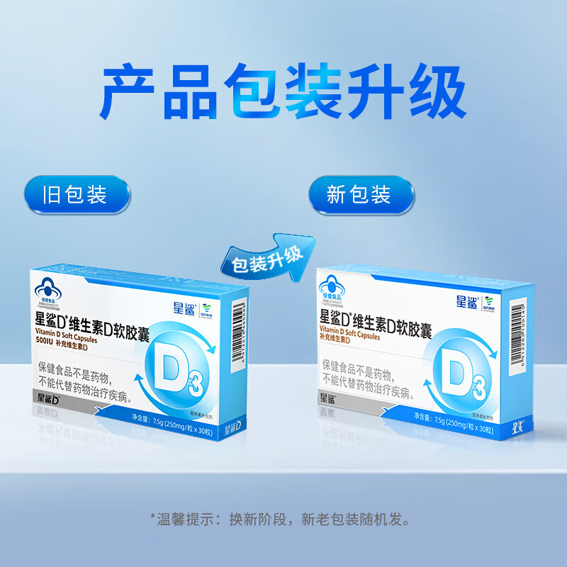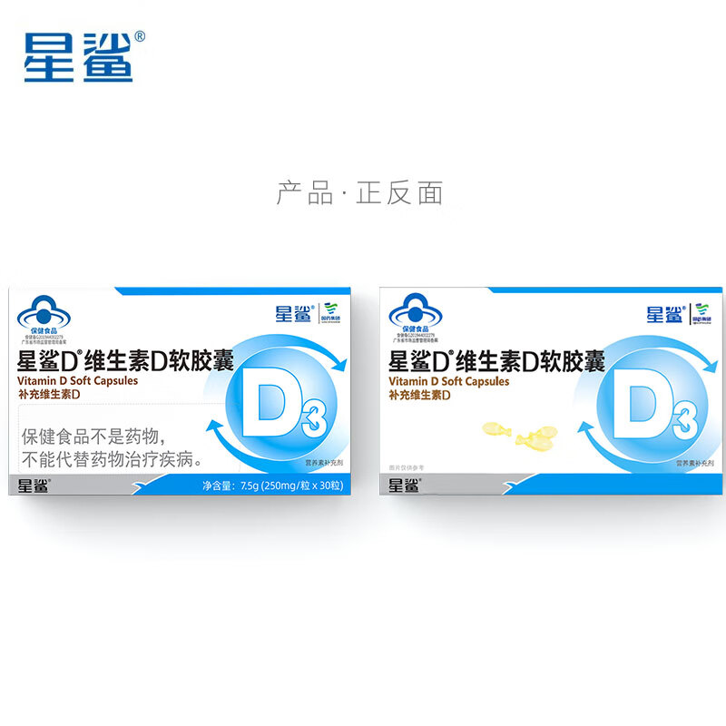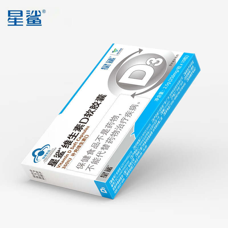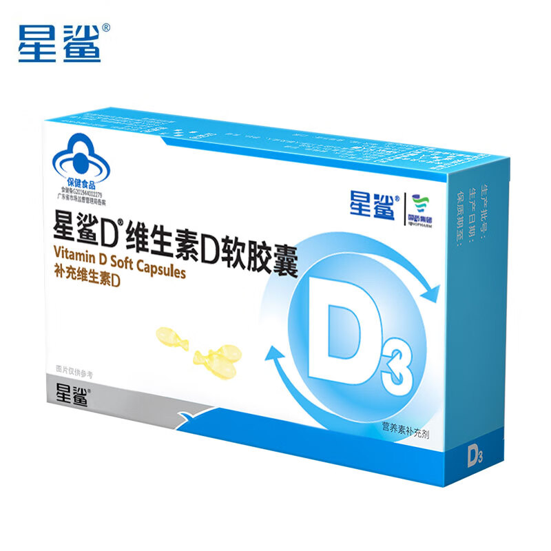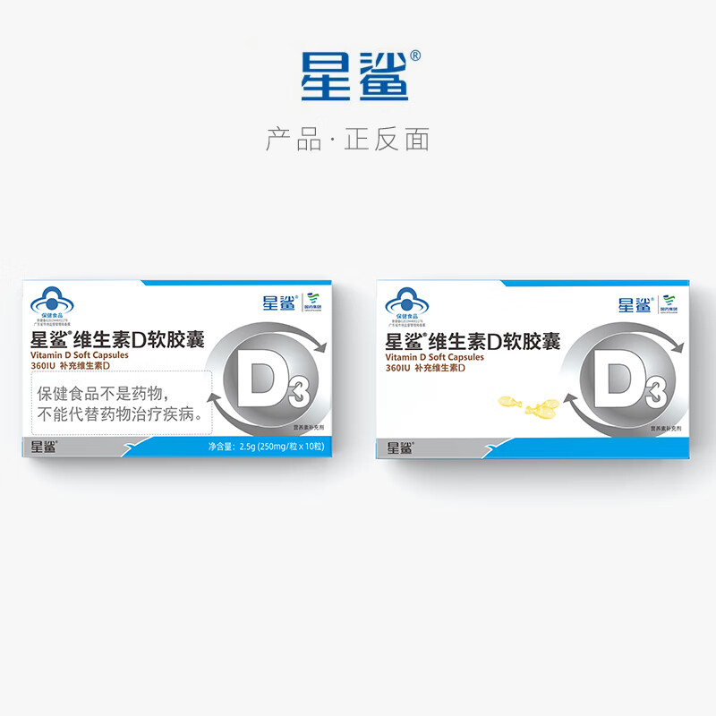 星鲨维生素D3软胶囊d儿童成人补充维生素D 10粒*5盒