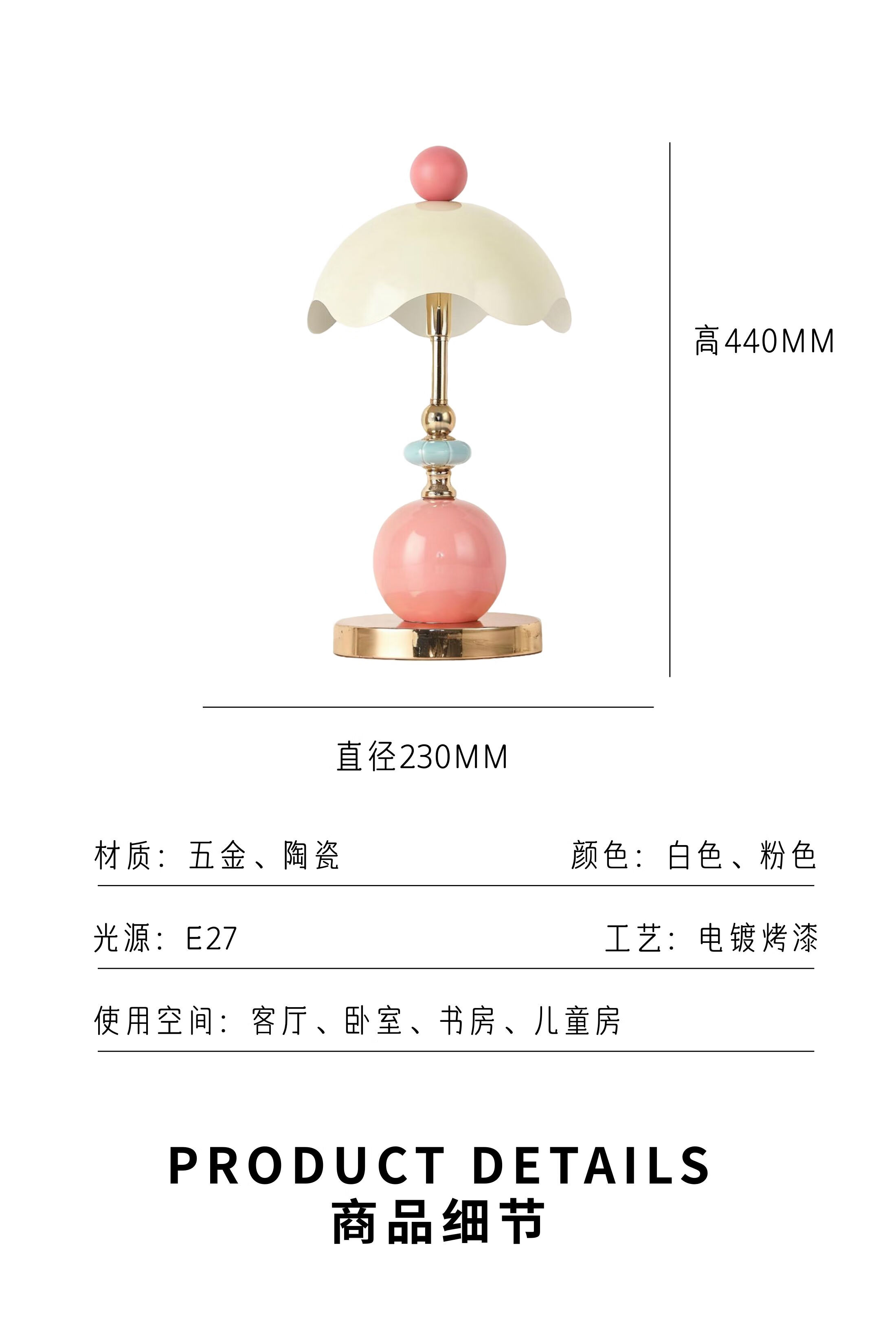 比达迩GEWU 意大利设计师法式蛋壳台灯卧室高级轻奢床头主卧氛围灯礼物 少女粉【三色调光】