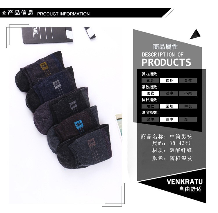 米大爷【优选直发】袜子男士中筒袜四季舒适透气百搭休闲潮流长袜 混色装(颜色随机) 5双 均码 (37-42码)