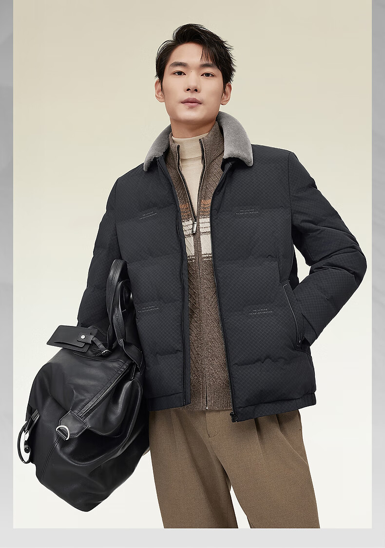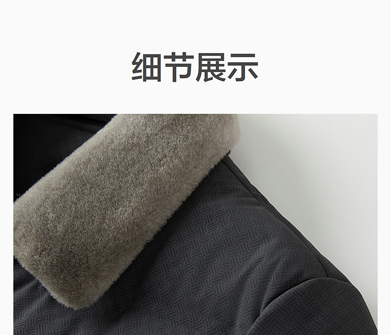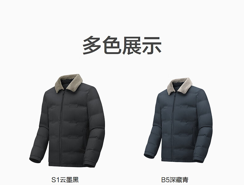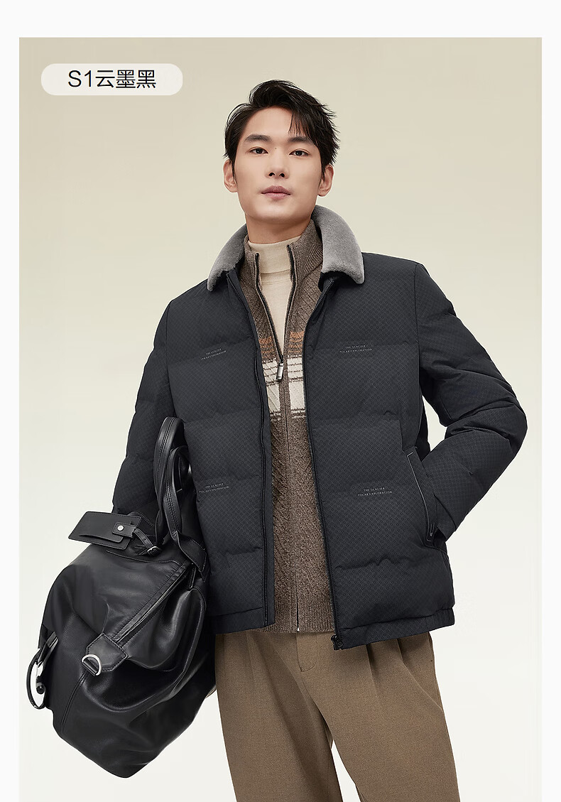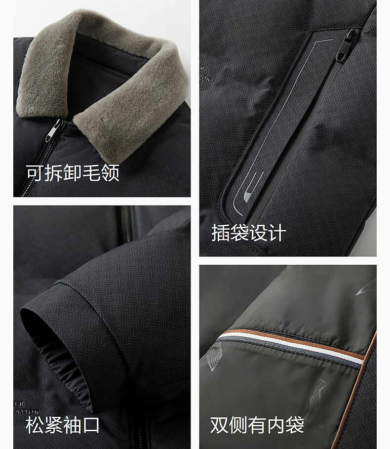 红豆毛领羽绒服25秋冬新款可拆卸翻领肌理款羽绒服男外套男 S1云墨黑 M 170/92A 推荐50-62公斤