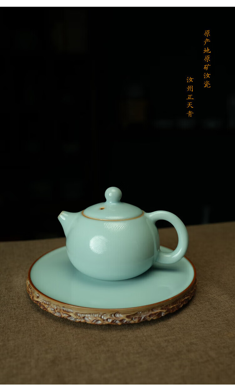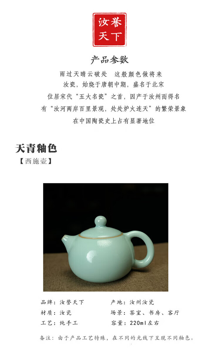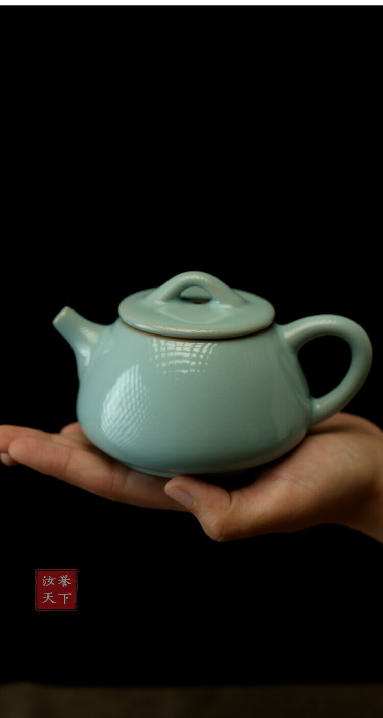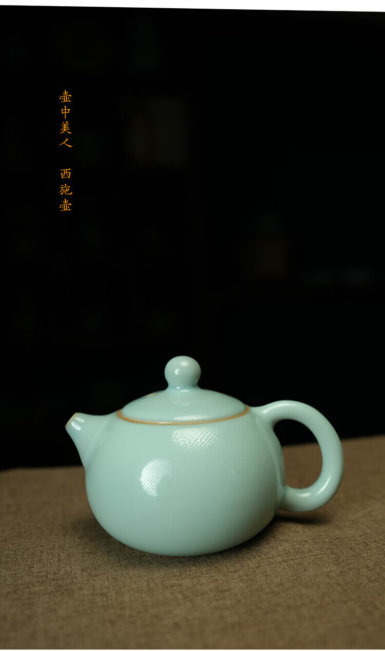 汝誉天下 汝窑茶具茶壶西施壶井栏壶石瓢壶汝瓷手工天青色冰裂纹开片礼盒 西施壶(单壶) 220ml