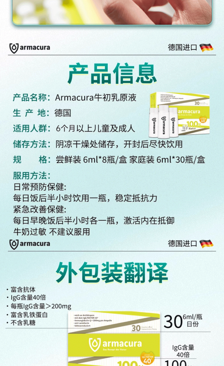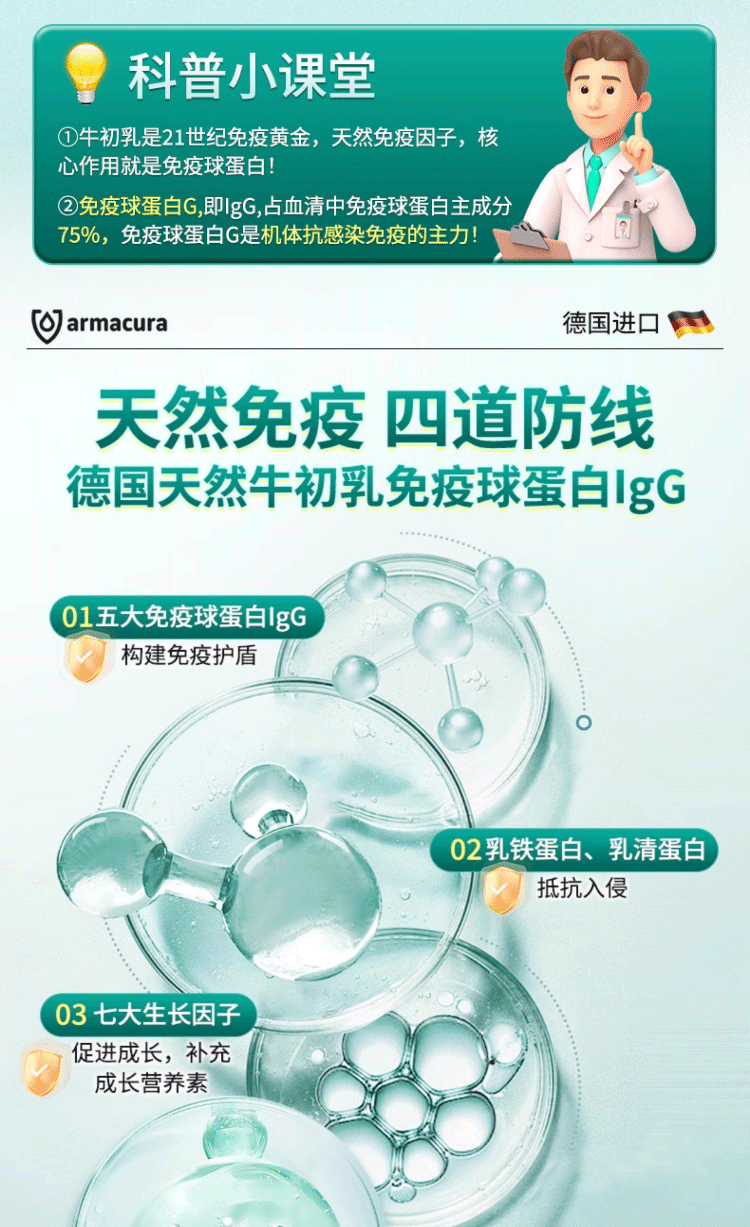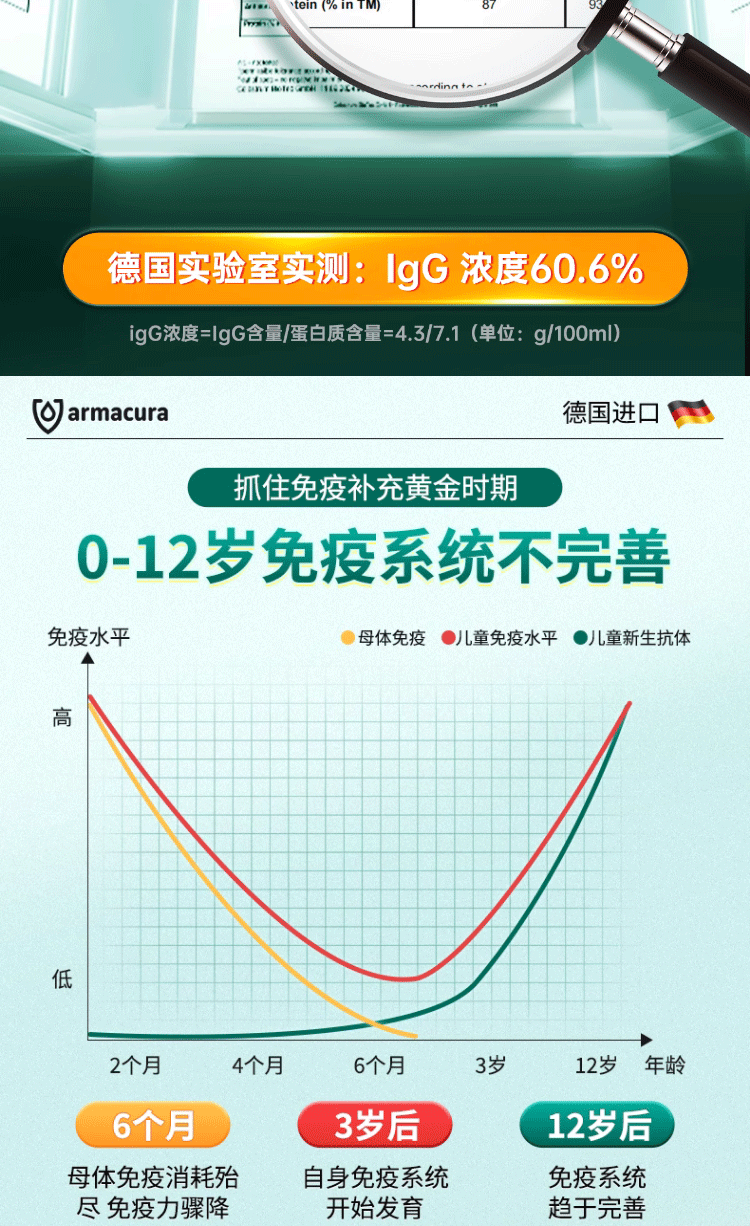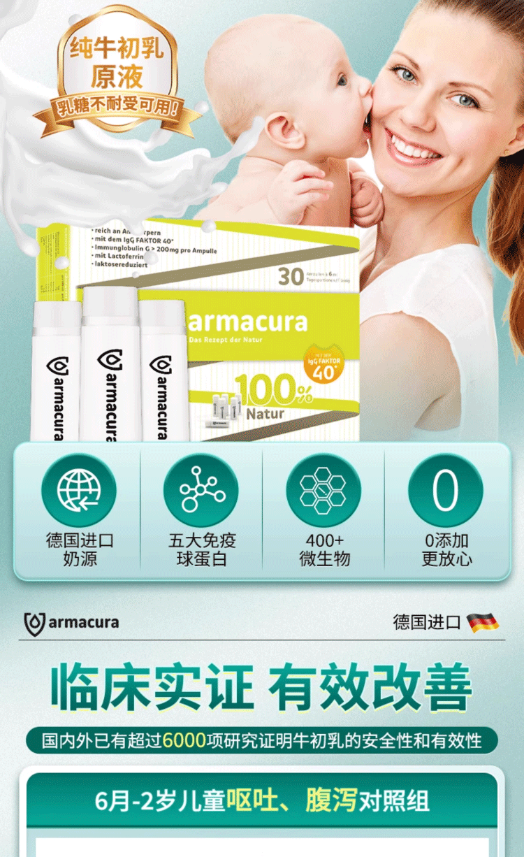 armacura德国进口儿童牛初乳原液免疫蛋白儿童增强免疫力婴幼儿乳铁蛋白