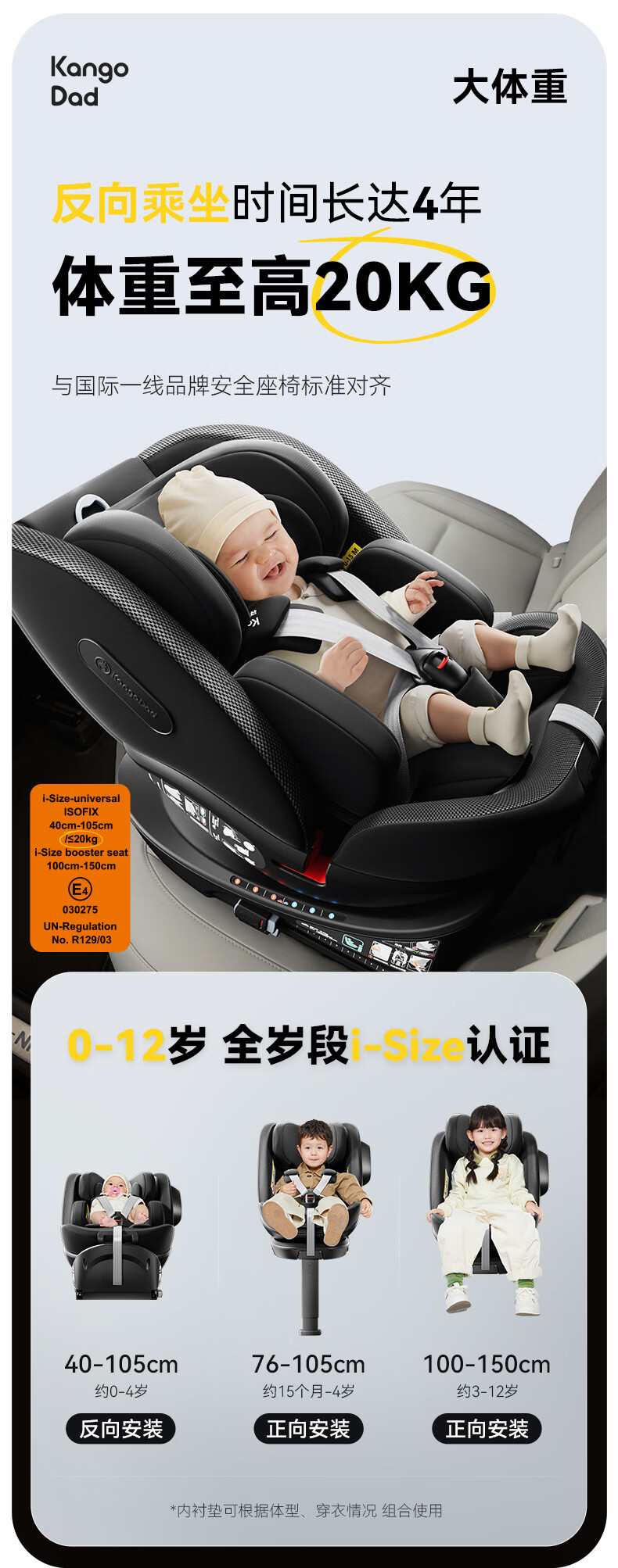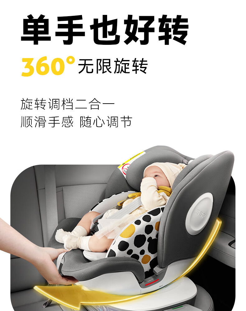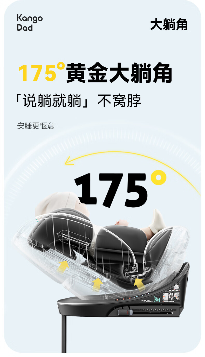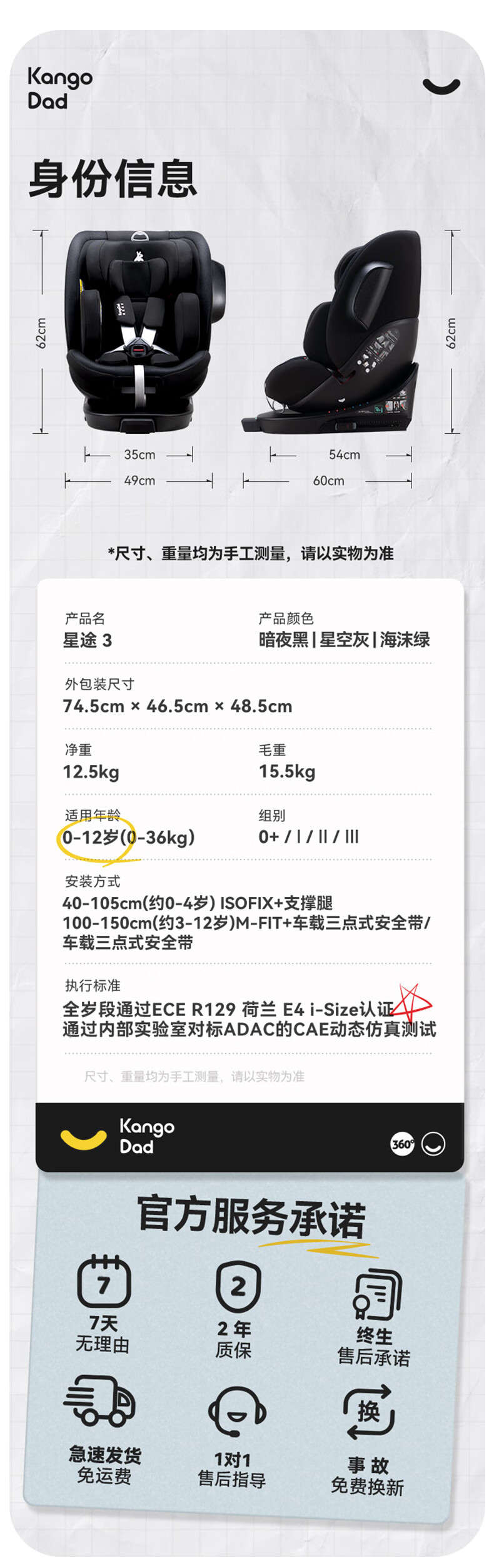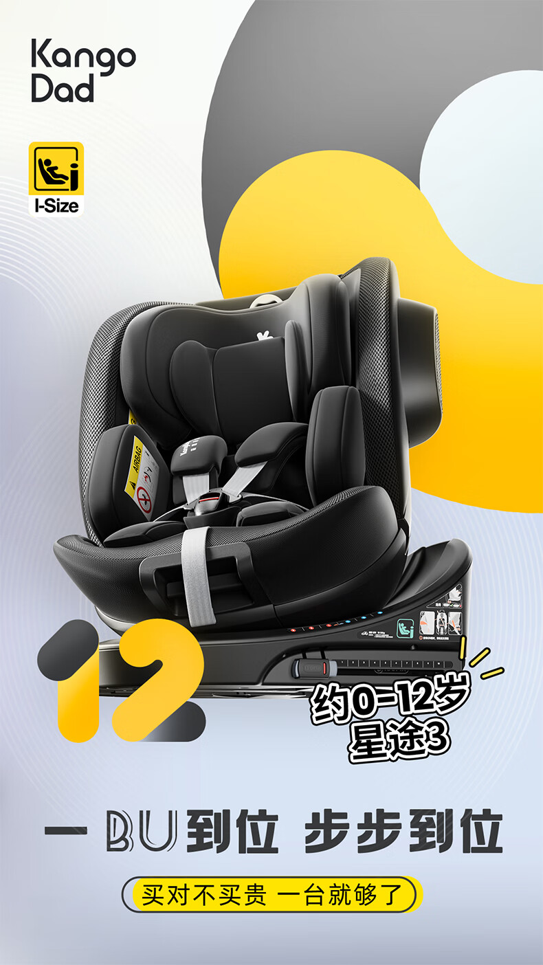 袋鼠爸爸儿童安全座椅0-12岁360度旋转新生儿车载汽车座椅星途pro星途3 星途3暗夜黑