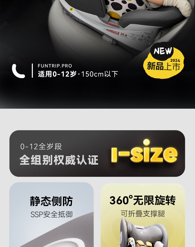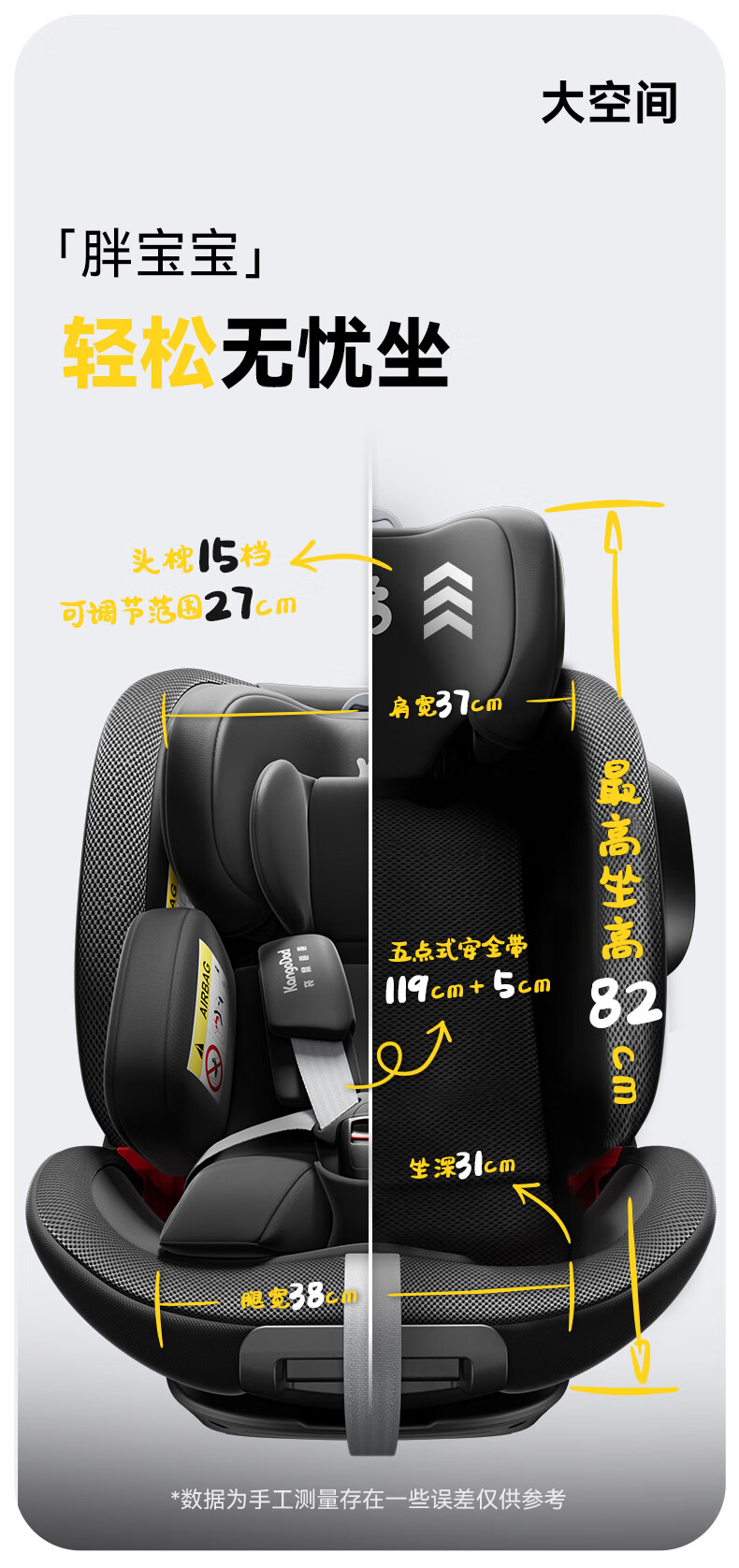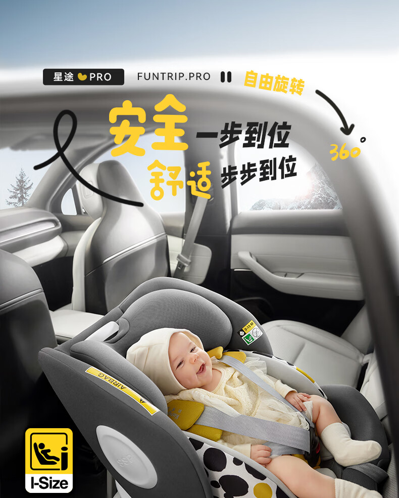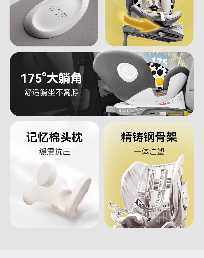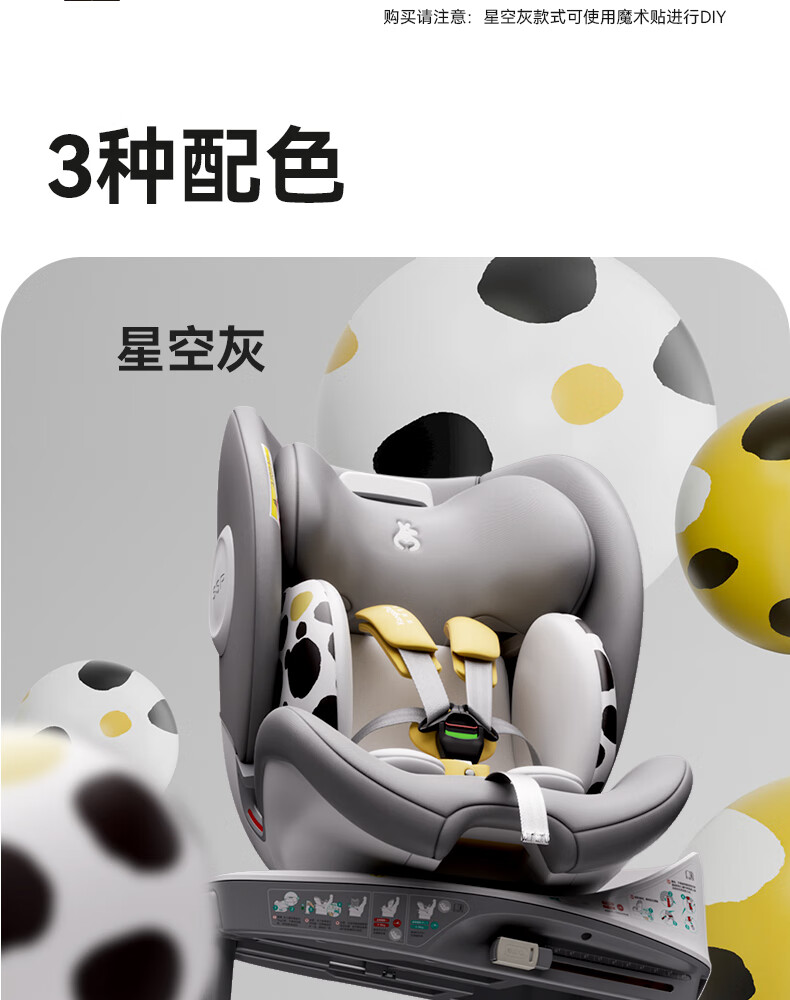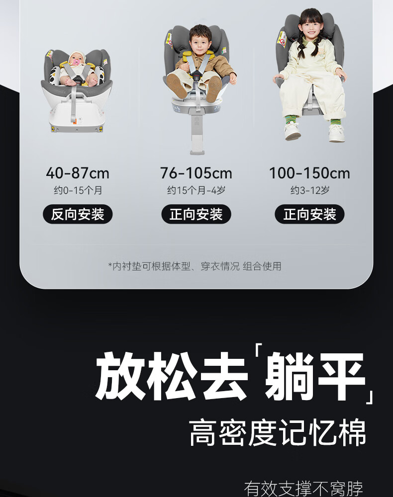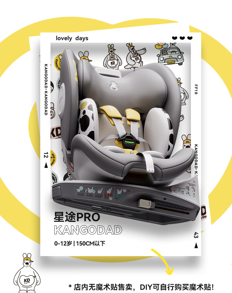 袋鼠爸爸儿童安全座椅0-12岁360度旋转新生儿车载汽车座椅星途pro星途3 星途3暗夜黑