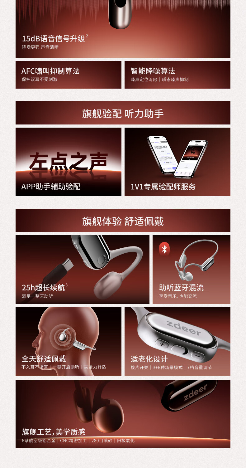 左点zdeer骨传导助听器中老年人中重度耳聋耳背专用降噪 重磅首发|全新4代骨传导