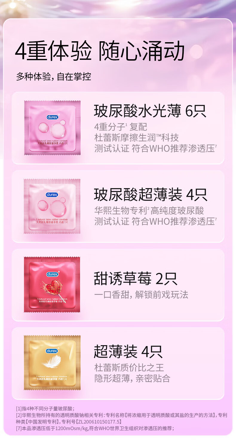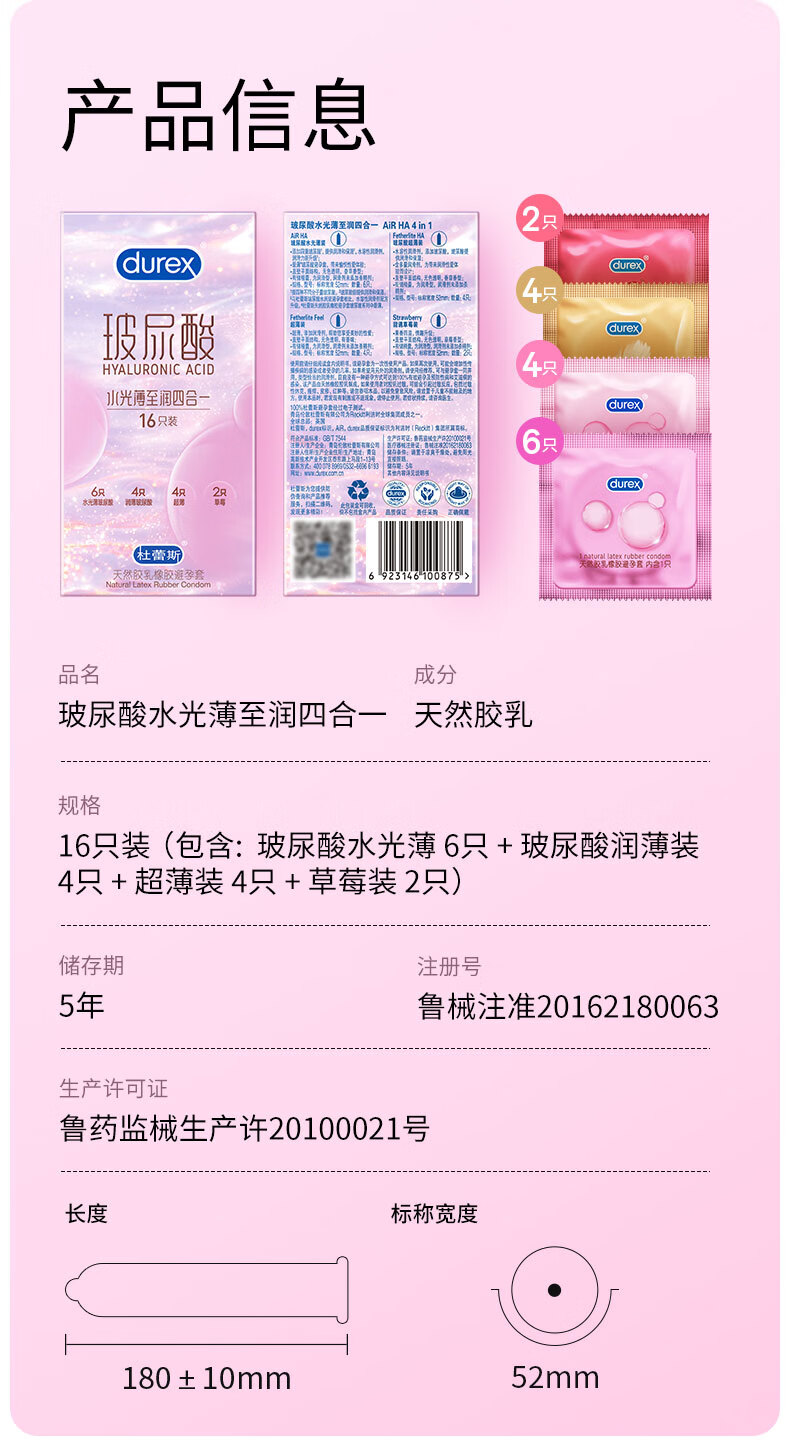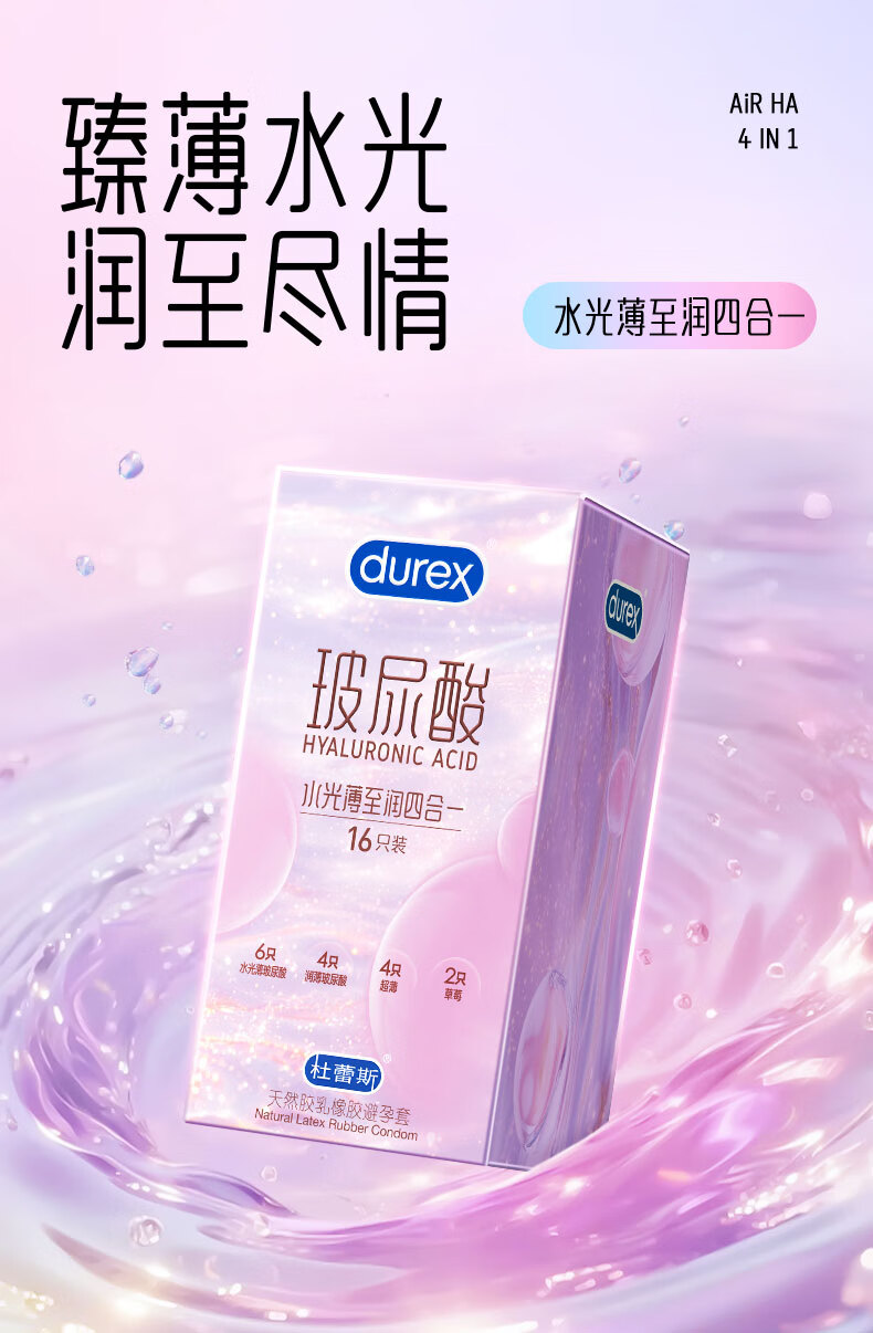 杜蕾斯(durex)玻尿酸避孕套水光薄至润四合一安全套小水库润滑水多男女情趣用品 超薄玻尿酸【18只】超薄玻尿酸18